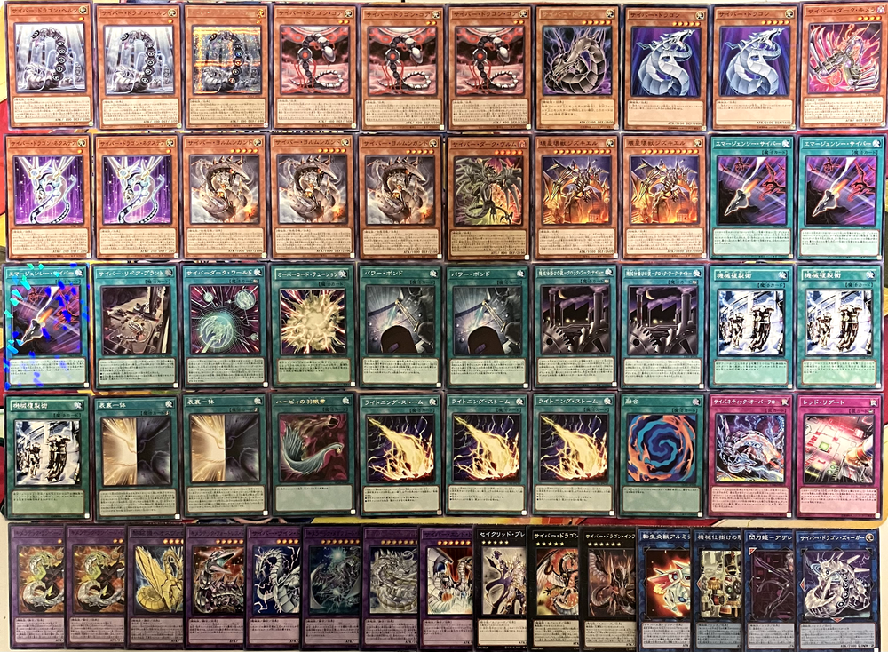 Cyber Dragon Deck. All are in Japanese. Not for sale in bulk For play Thank you for viewing this product. Please take a moment to read through the following information. Condition We have tried to use the items that do not have extremely bad scratches or folds, but we have marked them as “moderately played” for playing purposes. Please understand that the condition of the cards may vary due to the large number of cards. Please refrain from buying if you are nervous about the condition of the cards. About the packaging To prevent folding, we will put multiple cards in a transparent sleeve. We will put a bundle of sleeves in a zipper bag for waterproofing. About rarity Please note that the rarity may not be consistent among cards with multiple copies. If you want to know the rarity of the card, please ask us before you buy. No.1484