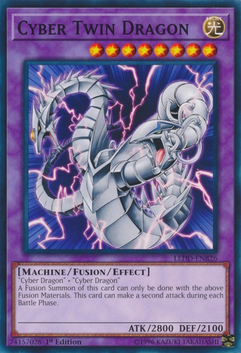 PICTURE IN LISTING IS ONLY FOR EXAMPLE ,it is a stock picture. Item condition is listed as "Used" because Ebay requires UPC codes for any item that is listed as "New", and trading cards do not have UPC Codes, so they must be listed as "Used". Card condition is listed in the listing title and in the item description. Rarity and edition of the card are described in the listing title and description. From this listing you will receive 1 card(s) for each purchase Description Set : Legendary Dragon Decks Name : Cyber Twin Dragon Number : LEDD-ENB26 Rarity : Common Condition : Near Mint Language : English We get your package in the mail quickly, please rate our service based on how quickly we gave your package to the post office. Not on how long it took the post office to deliver it. As we all know we cannot control that. If you have concerns about our shipping service, please send us a message and we will gladly talk to you about it and explain it. Domestic Buyers: Domestic orders within the United States are shipped for one flat rate, no cost for additional cards purchased on the same invoice. International Buyers: International orders are shipped First Class Mail International with and an additional item fee of $0.50. Orders over $50.00 USD require additional postage fees because of shipping method changes. SPECIAL REQUIREMENTS For International Orders Any International order greater than $100.00 USD will require shipment by : USPS Global Express Mail This is a flat rate service and you may ship cards totaling up to 16 ounces, the weight limit on the package. The following International Countries can request USPS First Class Mail International Package as the shipment method for orders over $50.00 USD as this service provides electronic tracking to these countries. This service is more expensive than the normal USPS First Class Mail International service, but cheaper than USPS Priority Mail International. Australia Gibraltar Netherlands Belgium Great Britain New Zealand Canada Hungary Northern Ireland Croatia Israel Portugal Denmark Latvia Singapore Estonia Lithuania Spain Finland Luxembourg Switzerland France Malaysia Germany Malta Special Handling of International orders : We reserve the right to hold and/or cancel any International order in which it appears the buyer is attempting to circumvent our Global Express shipping requirements by breaking up larger purchases into smaller orders. Orders made within a 30 day window and having previous orders that have not yet been acknowledged as received, via Feedback and Ebay messages will be subject to this condition and may be held until all previous orders have been acknowledged as received. International Buyers – Please Note: Import duties, taxes and charges are not included in the item price or shipping charges. These charges are the buyer's responsibility. Please check with your country's customs office to determine what these additional costs will be prior to bidding/buying. SHIPPING: Every attempt is made to send your item out within 1 business day of receipt of payment. Check our feedback! Pre-sell items are shipped within 1 business day of us getting merchandise in hand. Default Shipping Methods: Domestic Orders: Shipped First Class Mail Cards will be shipped with a Hard Sleeve and/or a Soft Sleeve for protection in accordance with eBay's standard envelope policy. International Orders: Shipped First Class Mail International Cards will be shipped with a Hard Sleeve and/or a Soft Sleeve for protection in accordance with eBay's standard envelope policy. We use all new and clean products to package your cards. If you have any questions, please do not hesitate to ask!