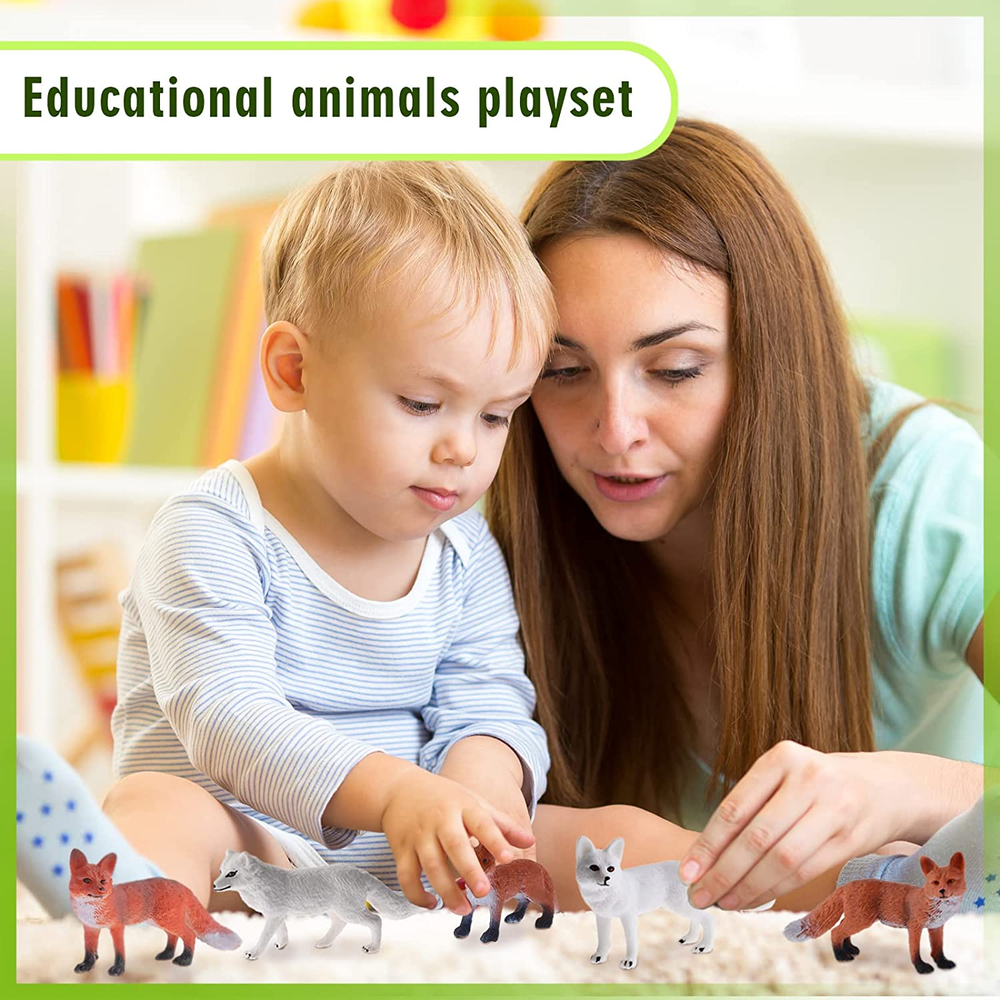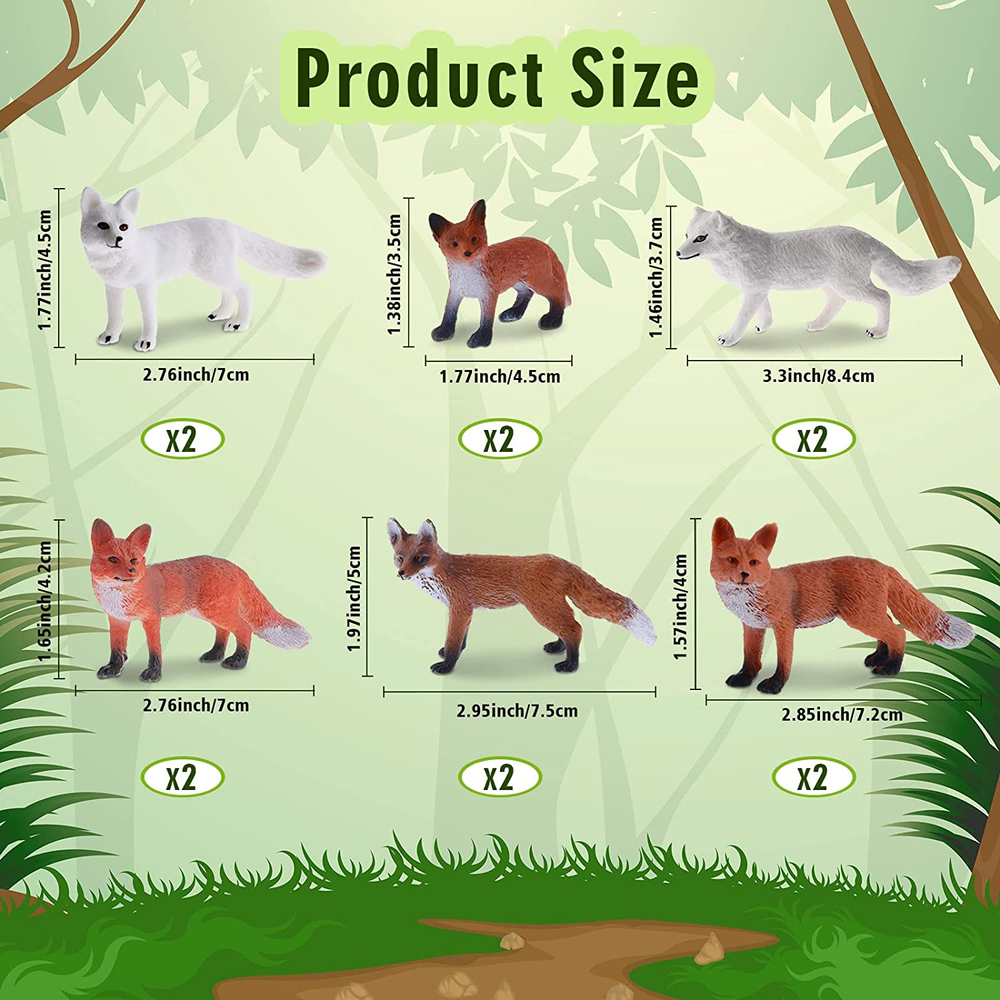 12 Pieces Fox Toy Figures Set Realistic Arctic Fox Red Foxes Animal Figures Jungle Animal Fox Playset Cake Topper Party Favors Educational Toy Christmas Birthday Supplies Product Details Package Dimensions: 3.66 x 3.62 x 2.83 inches Item Weight: 7 ounces Manufacturer recommended age: 6 months and up Manufacturer: Aoriher Brand: Aoriher Theme: Animal Material: PVC Educational Objective: Play, Game Fox Animal Figurines Toy Set: you will receive 12 pieces of fox figurines of different forms, there are arctic foxes, red foxes and baby foxes, from 1.4 to 4.9 inches in length and height, diverse styles and proper size for you to play; And you can also share with your friends Safe and Reliable Material: the foxes animals figures are made of quality PVC material, lightweight and soft, odorless and innocuous, not easy to break or deform, and they adopt safe pigment and hand coloring, not easy to fade, which can serve you for a long time Vivid and Realistic Appearance: this set of foxes animal figurines toy is exquisite, carefully hand painted and sculpted, and they are deeply recreated to their true prototypes in real life, and their skin texture and hair are lifelike that makes them look like real animals; Their movements and expressions are also very vivid, full of innocence, adorable and eye catching Instructive Function: little ones will enjoy hours of imaginative play with these realistic looking foxes figurines; Parents can tell the little ones stories about the information of the foxes or the happy life of the foxes figurines family, and play games with them, which will improve the relationship between them and cultivate little ones' creativity while enjoying the family's time Versatile Uses: our foxes animals figures playset are nice gifts for ones you love on Thanksgiving, Christmas, New Year, wedding and other festival days; They are worth to be collected and decorated your bookcase, desk and room; Also it would be a good idea to use them as the cake toppers and make a woodland animal themed cake for your little ones Features: Spice up your party: It will be a nice choice for you to pick these fox animal toys, they are interesting and adorable, you can use them to design a party this is full of funny, lovely and magical things, enhancing the party's atmosphere. Extensive application: This package includes 12 pieces of fox animal toy figurines in total, the quantity is enough and can be applied to decorate cakes on many occasions, such as birthday parties, festive celebrations, animal theme parties, Christmas, Halloween and other celebrations. Specifications: Material: PVC plastic Color: as the pictures shown Quantity: 12 pieces Package includes: 12 x Fox figurines Notes: Manual measurement, please allow slight errors on size. The color may exist a slight difference due to different screen displays.