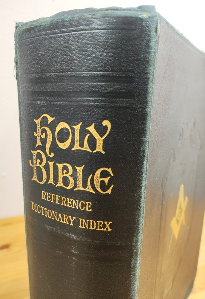 Vintage 1937 Holman Masonic Bible, cosmetic imperfections, worn and aged, in very good condition, large and heavy, 12" x 10" x 2.5", leatherbound, Gold lettering. FREE SHIPPING, SEE PICTURES