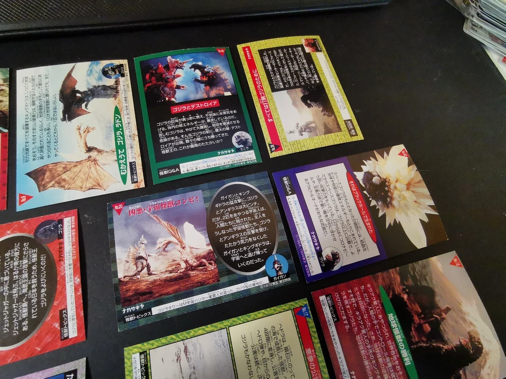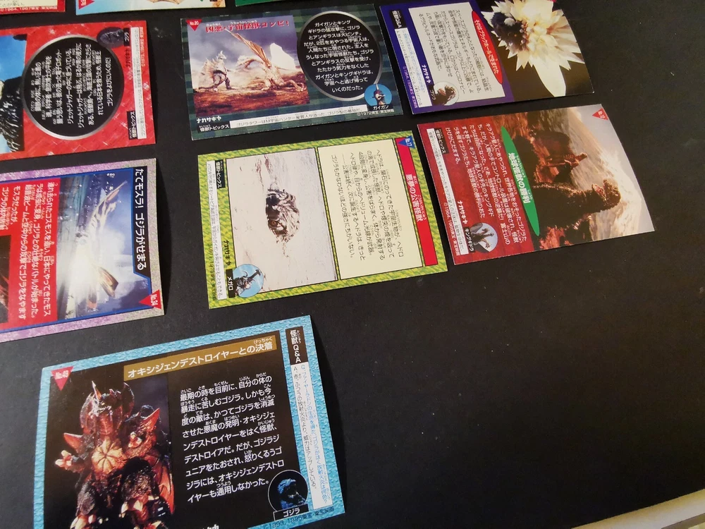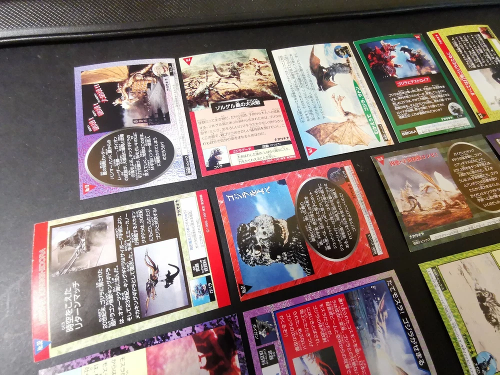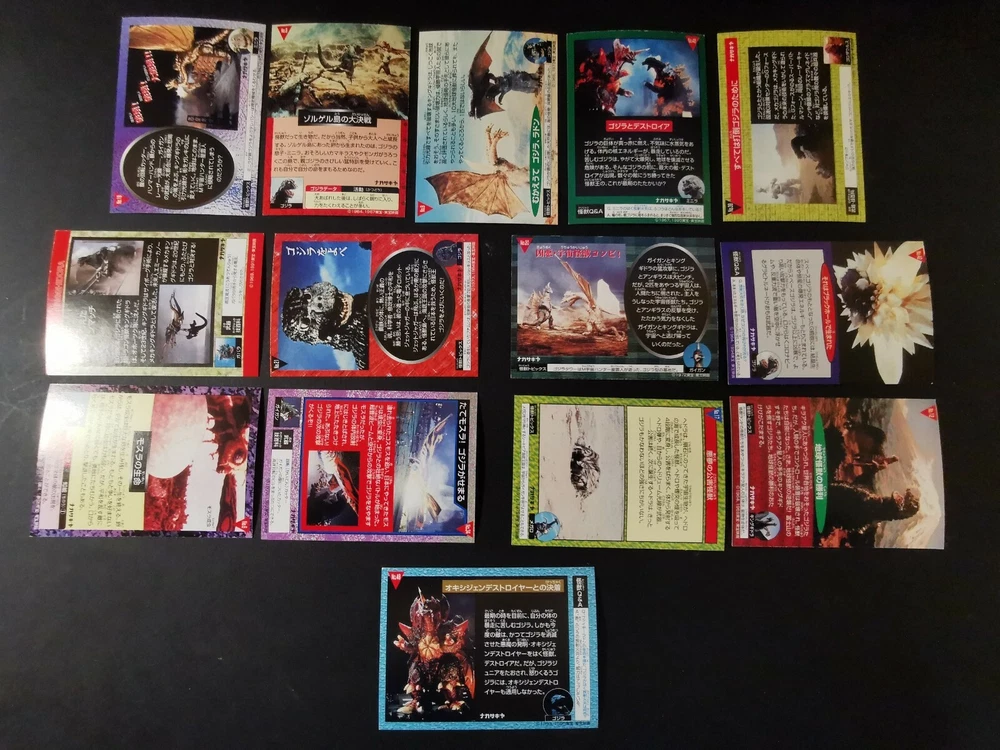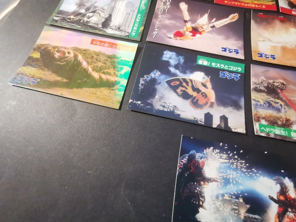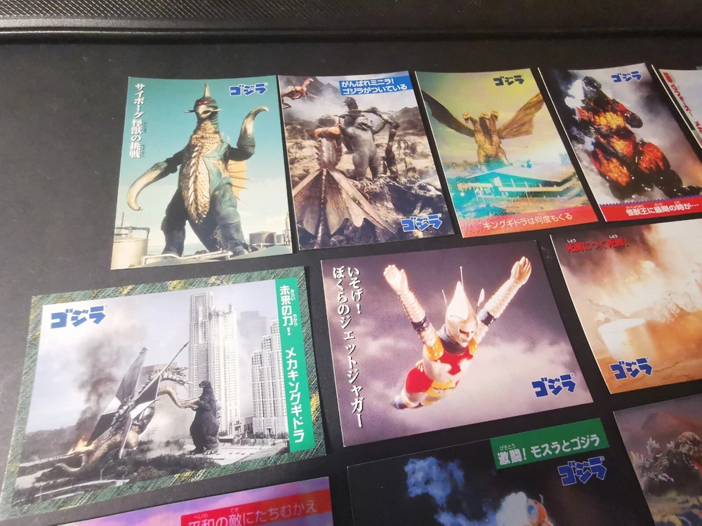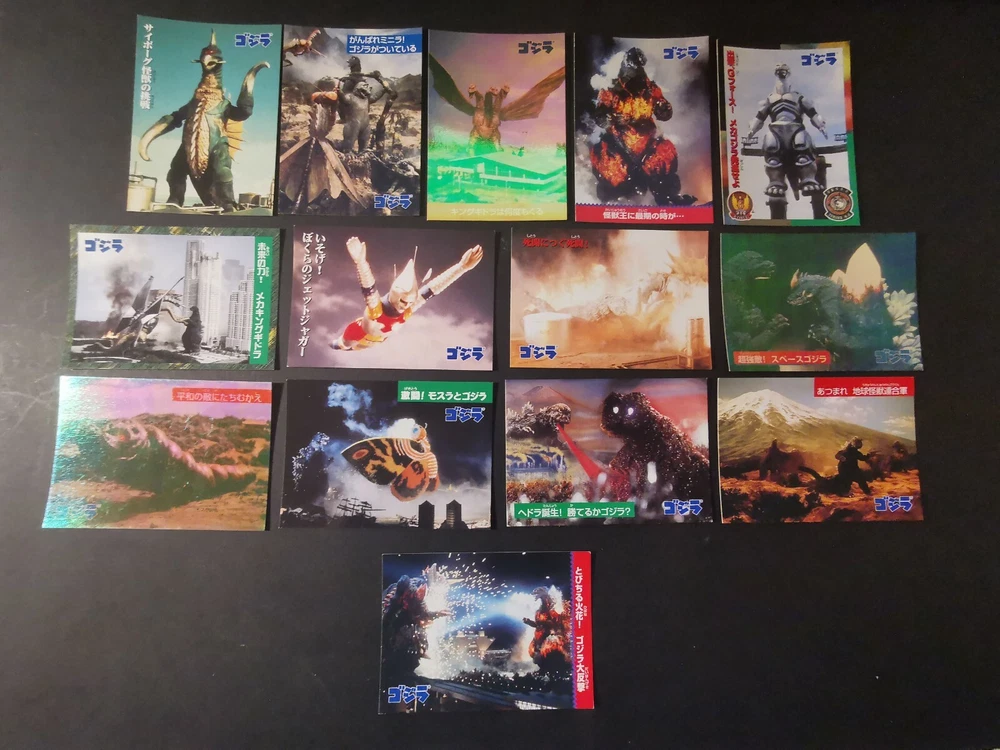 3 FOIL CARDS (No. 6,9,42) 11 NORMAL CARDS (No.8,12,17,19,20,21,32,34,38,48,49) UNGCC United nation godzilla countermeasur center. Tukuba h.q Mecha kingghidora...