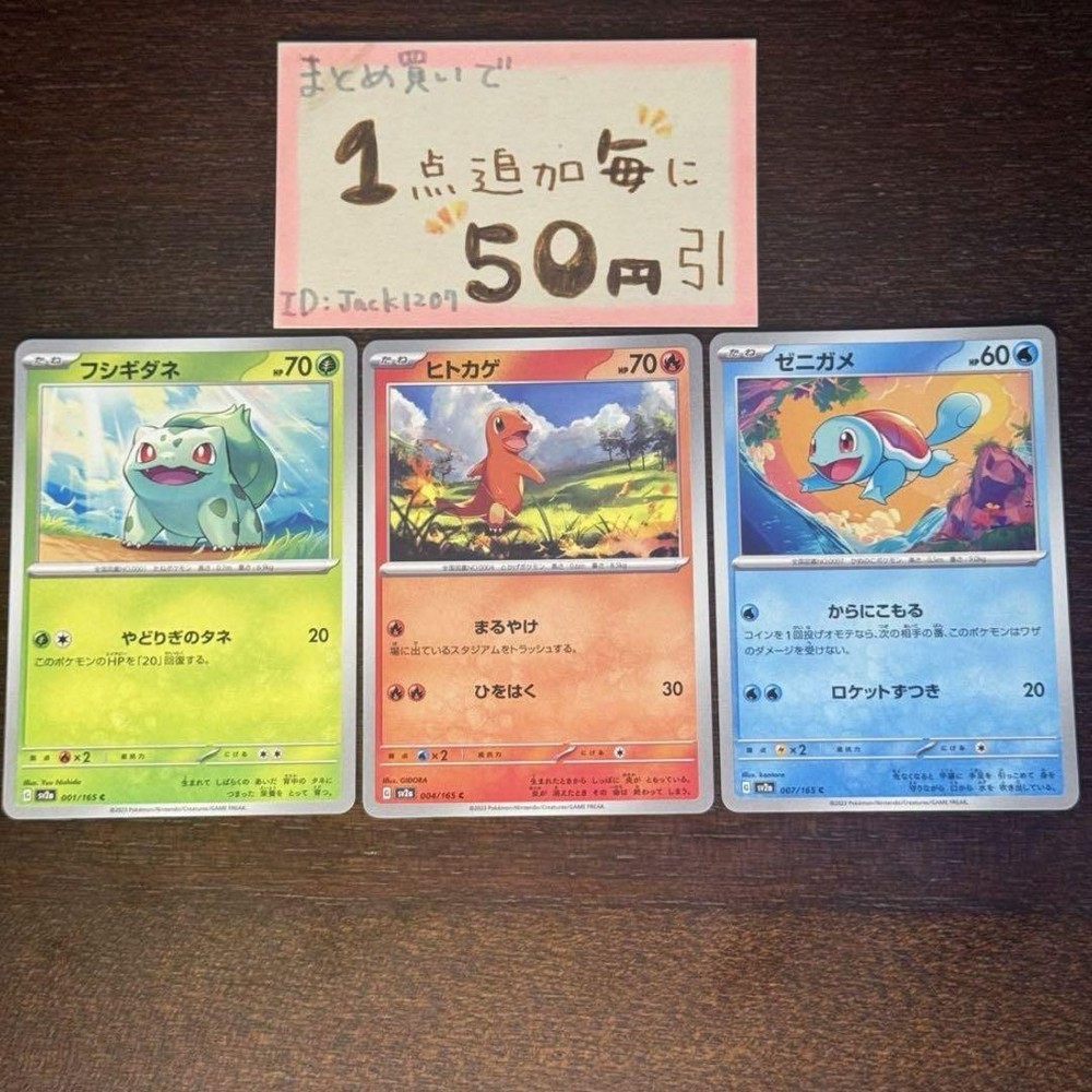 enjoy shopping! Product We handle genuine Japanese products. Please check photo and feel free to contact us for more details. Discount】】 ① Add one item to a group purchase and receive a 50 yen discount! 50 yen discount for each additional item purchased in bulk! Free upgrade to anonymous shipping for bulk purchases of 24 pieces or more! (Normally +150 yen) Now on display at ⬇︎ ##jakkek's POKEKA1207 Card Contents FUSHIGIDANE, Seeds of HAYABUSAGI 151 sv2a → 1 card Hitokage Whirlwind, Whirlwind, Fire, Fire, sv2a 151 → 1 card Zenigame - Rocket Rocket Rocket, sv2a 151 → 1 copy Total: 3 These are for personal storage. Please consider them for play to prevent trouble. Shipping Method Sleeve + waterproof plastic bag + folded cardboard + envelope will be shipped from Tokyo by regular mail. We can also ship other than regular mail. Other Price reduction is not available. There are many cards that we do not have on display, so please inquire in the comments. Please contact us for more information. (For search) Deck Parts Pokemon Cards Pokémon Cards Comp Set Comp. Shipping Handling time is based on our shipping policy. We will do our best to ship fast and ship your item very carefully. Estimated arrival date: SAL(Japan Post) : 2-4 weeks epacket : : 2-3 weeks EMS : : 1-3 weeks DHL : 1-2 weeks Yamato: 1-2 weeks Fedex : 1-2 weeks Due to Japanese Post Service delay, estimated arrival time can be delay. Please understand it. Depends on custom in your country also. So if it is late please contact local post office or carrier with tracking number . Contact Please feel free to contact us anytime. We are always happy to help you and happy to find what you are looking for. If you have any trouble with your items please feel free to contact us first, we will do our best Note We guarantee all the displayed items are authentic The cost of return is based on our return policy. Import duties, taxes and charges are not included in the item price or shipping charges. These charges are the buyers responsibility. Please check with your countries customs office for additional costs first enjoy shopping on ebay