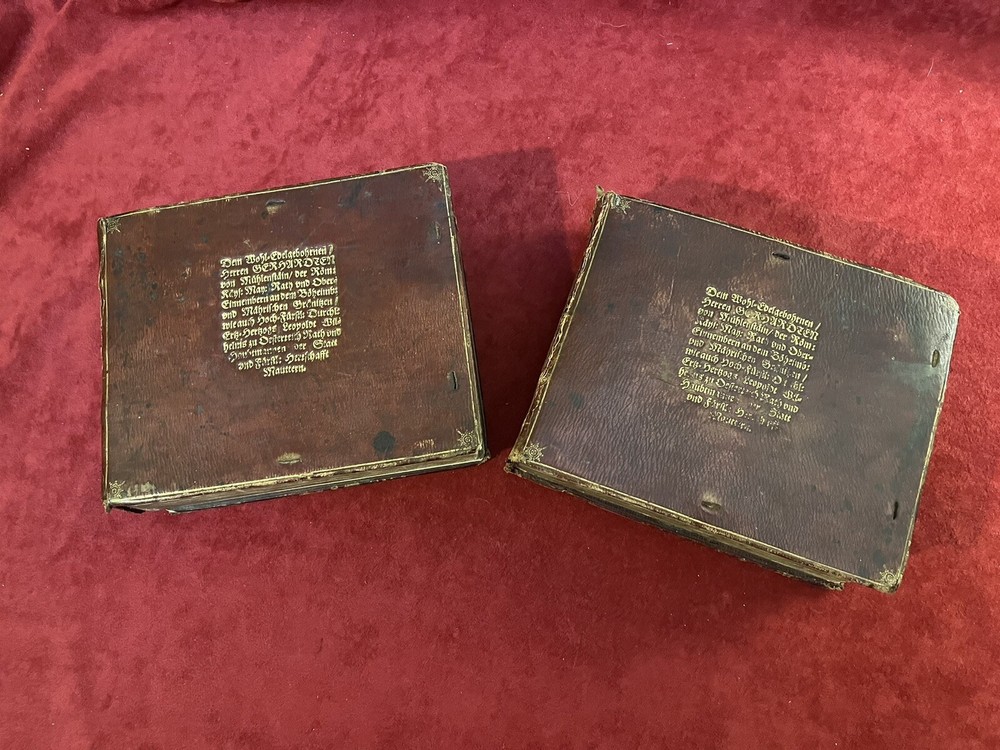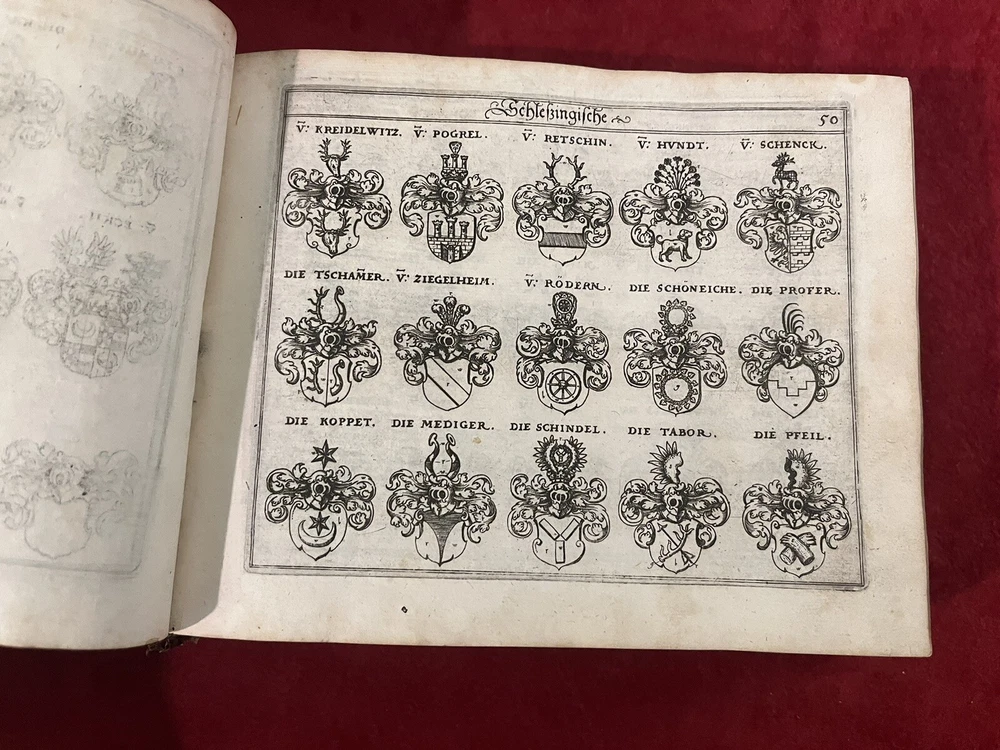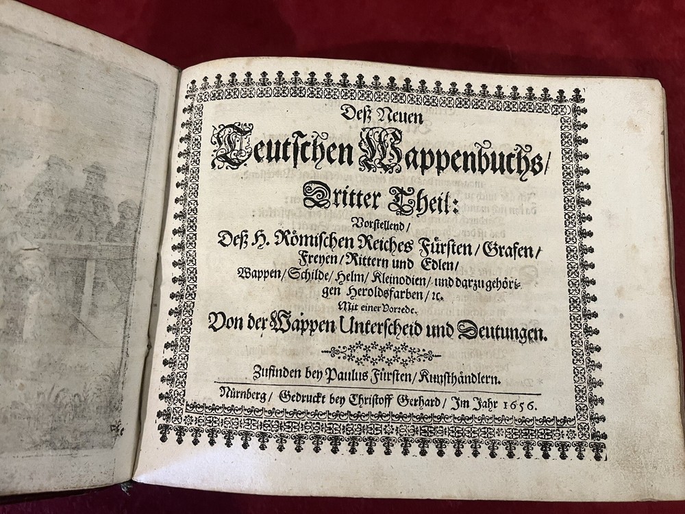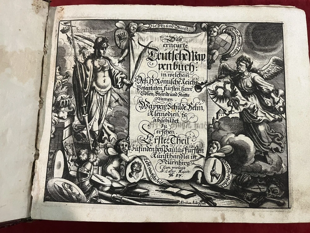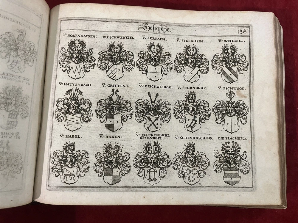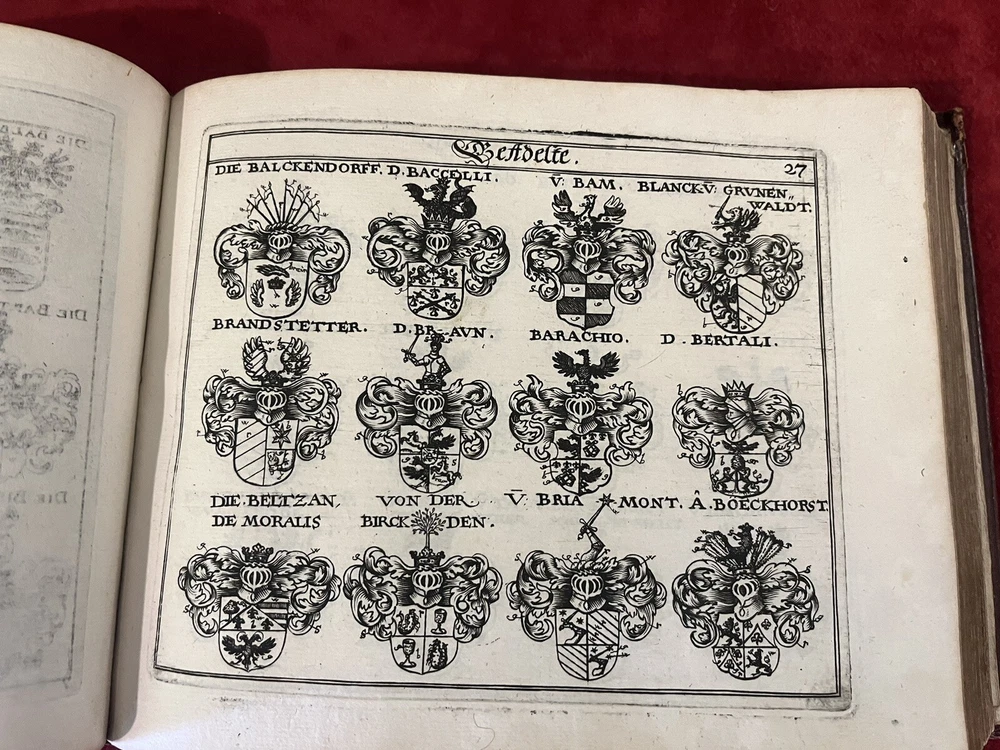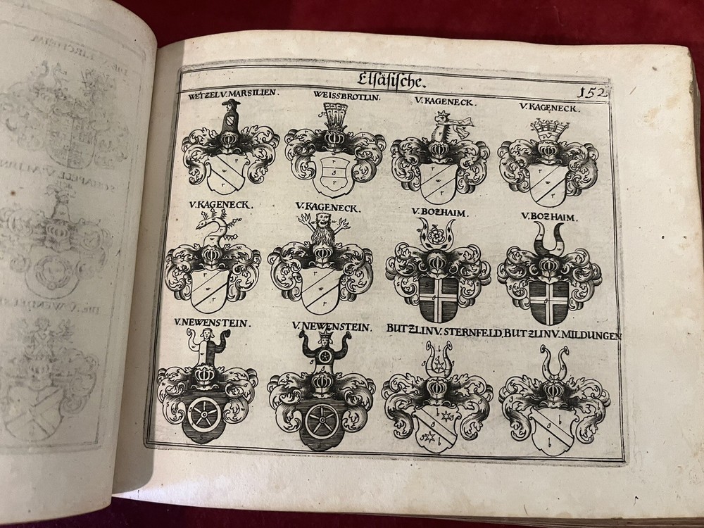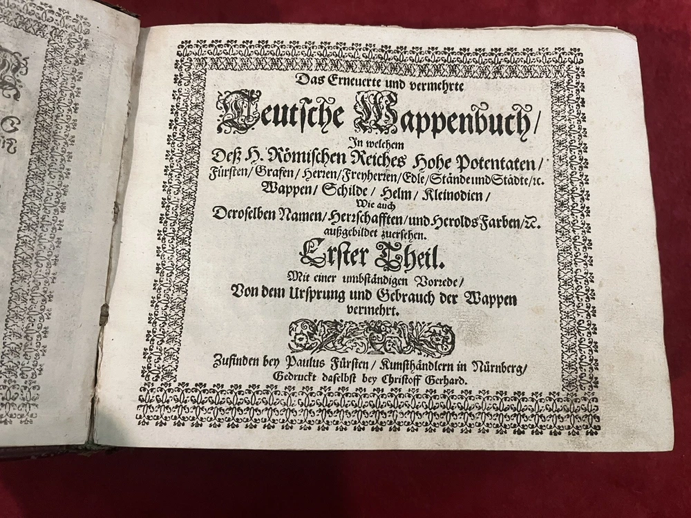This antique book is a true gem for collectors and enthusiasts of royalty and biography. The leather-bound 1st edition, 1656 & 1657 German Nobles/Royalty Family Crests is a must-have for anyone interested in the history of German nobility. The books feature intricate details of family crests and is written in the German language, making it a valuable addition to any collection. Each book is hundreds of pages of family crests and genealogy. They both have gold leaf on the gilded paper edges for a great display of these 17th century gems. If you are interested in just one book, please message me with an offer. The books’ special attributes include its 1st edition status and the fact that it is bound in leather. This adds to its antique charm and makes it a unique item for display or reference. The book is categorized under "Books & Magazines" and "Antiquarian & Collectible" and is sure to be a prized possession for anyone interested in royalty and biography.