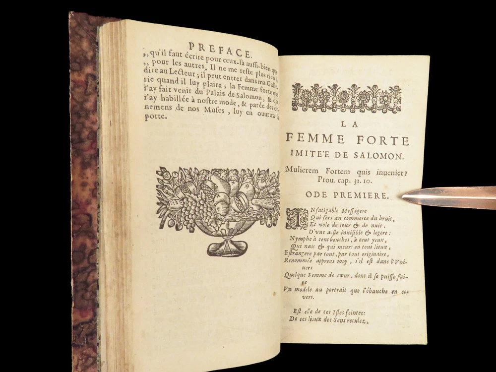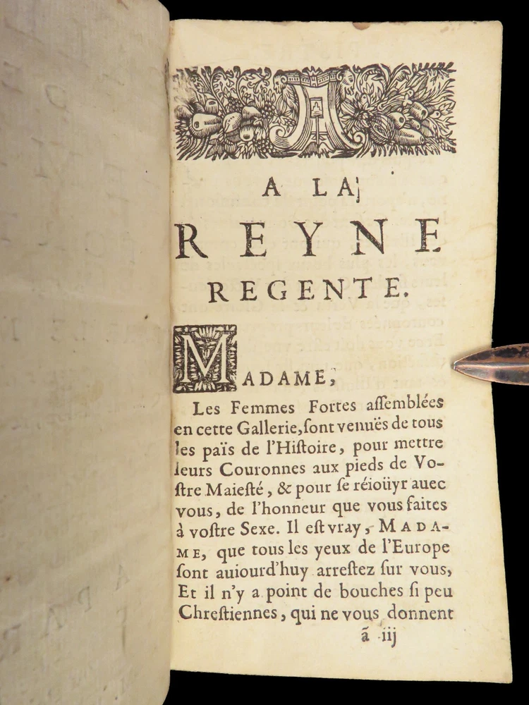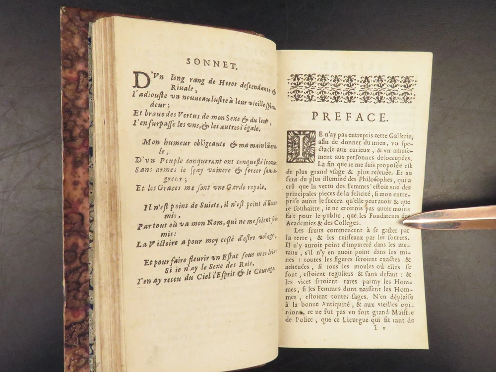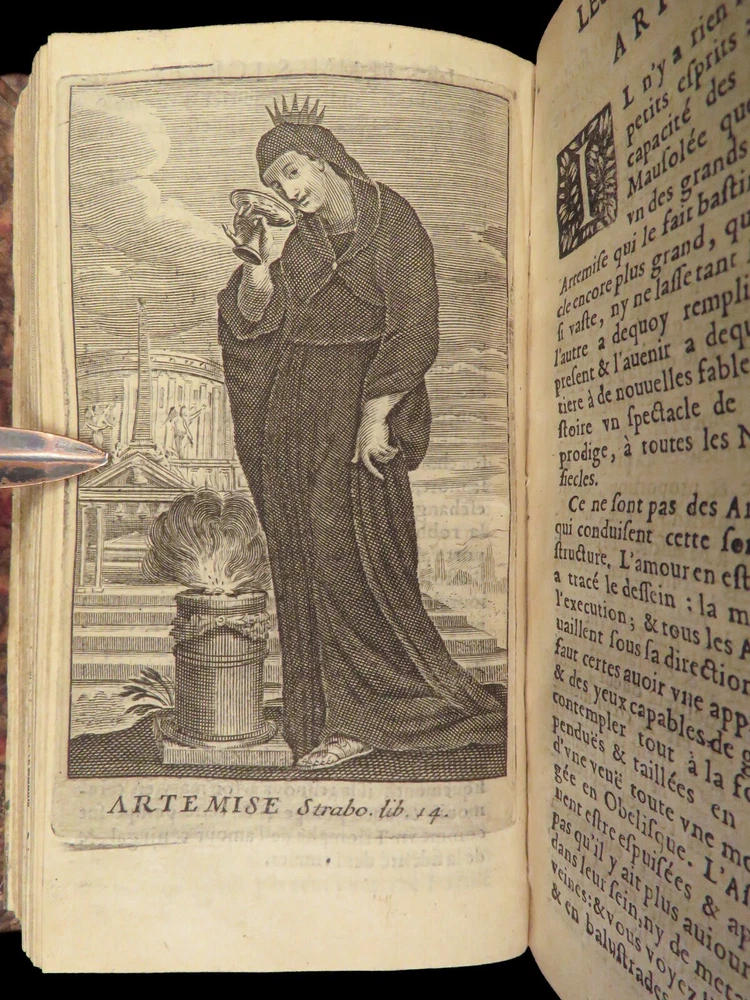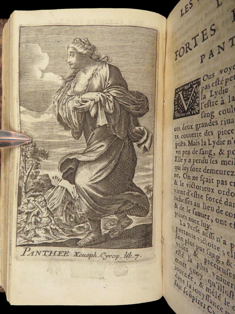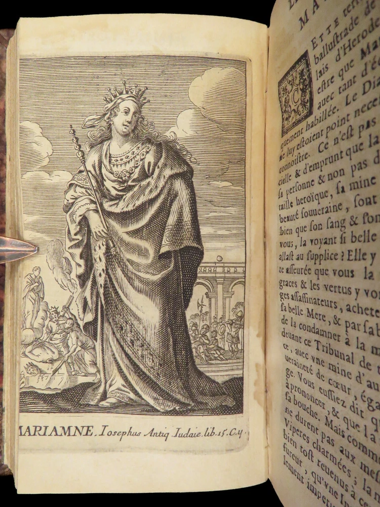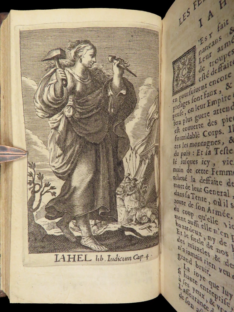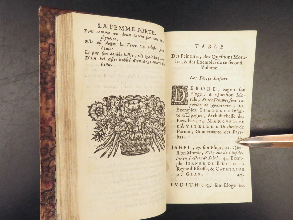 1663 Famous WOMEN Moyne Gallery Joan of Arc Marie Stuart Salome Artemis RARE Pierre le Moyne’s ‘ Le Gallerie des Femmes Fortes ’ is a fascinating 17 th -century biographical account of important historical women. Moyne discusses the role of these women and their influence on their and future cultures. Women covered in this work include: · Zenobia, queen of Palmyrene · Artemis, Greek goddess · Salome, daughter of Herod II · Mariamne the Hasmonean · Margaret of Austria · Theodelinda, Queen of Lombards · Marie Stuart · Joan of Arc · Isabella I of Castille Note that this 1663 edition includes 20 full-page engraved illustrations of each woman. Item number: #27716 Price: $750 MOYNE, Pierre le Le gallerie des femmes fortes Paris: Par la Compagnie des Libraires du Palais, 1663. Details : · Collation: Complete with all pages; 2 parts in 1 o Part I – [110], 309, [3] o Part II – [2], 251, [13] o 20 engraved plates · Language: French · Binding: Leather; tight and secure · Size : ~5.75in X 3.25in (14.5cm x 8.5cm) Our Guarantee: Very Fast. Very Safe. Free Shipping Worldwide. Customer satisfaction is our priority! Notify us with 7 days of receiving, and we will offer a full refund without reservation! 27716