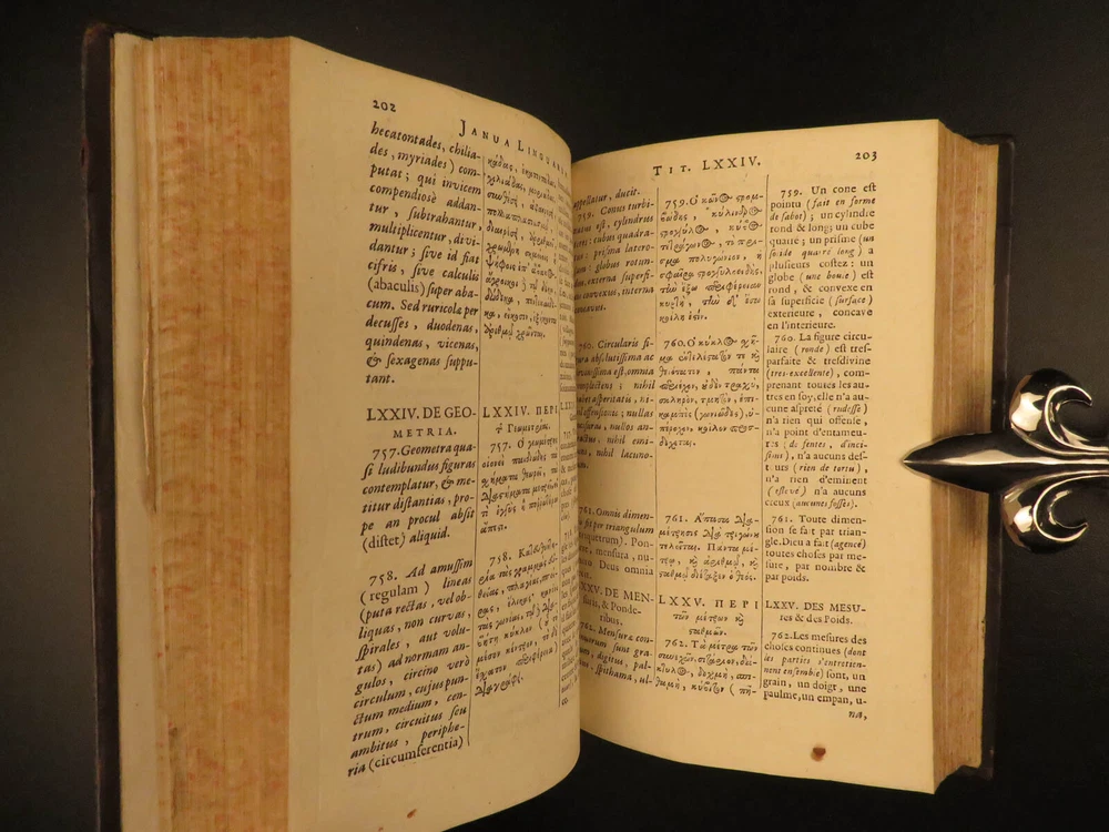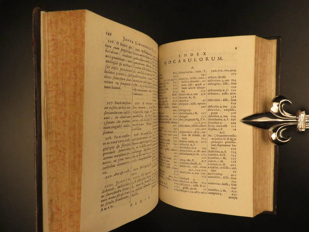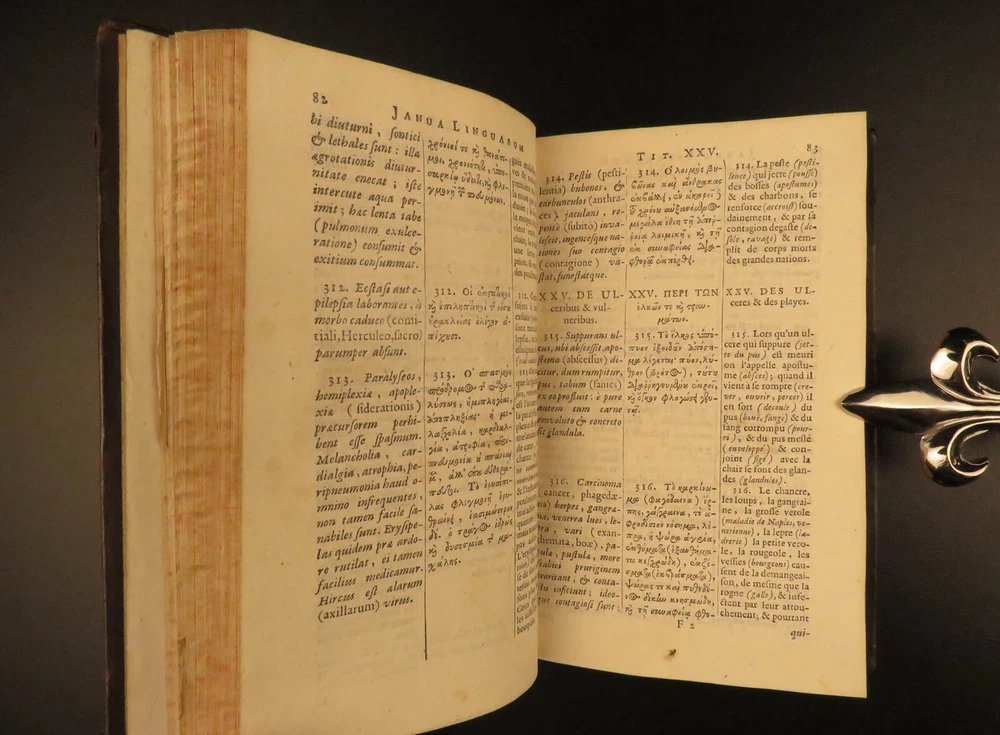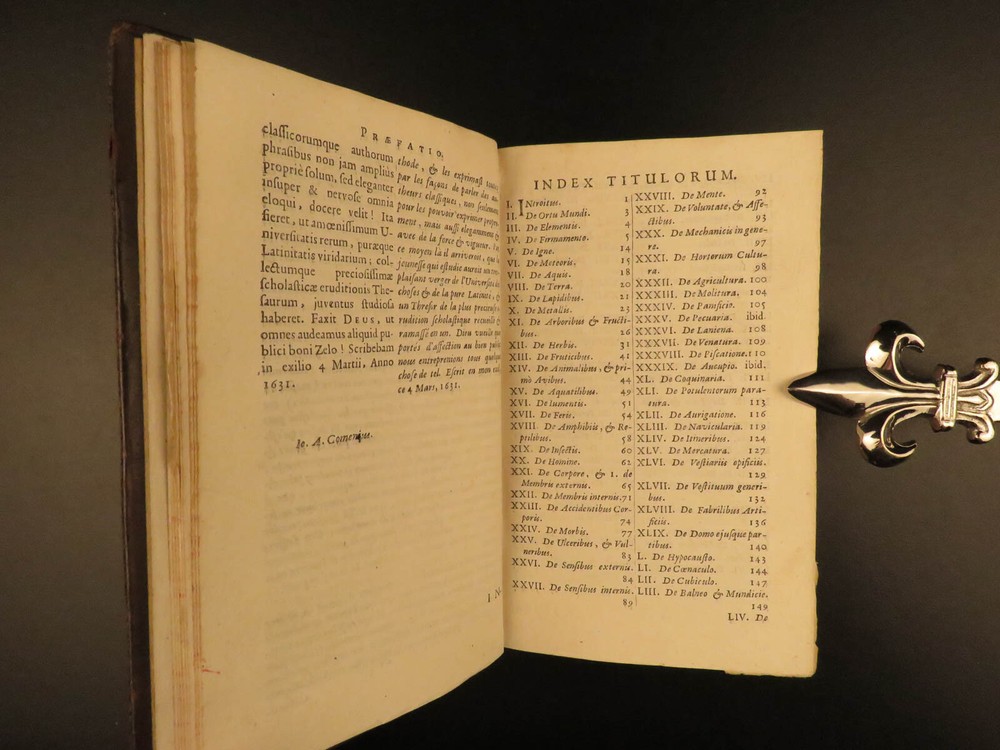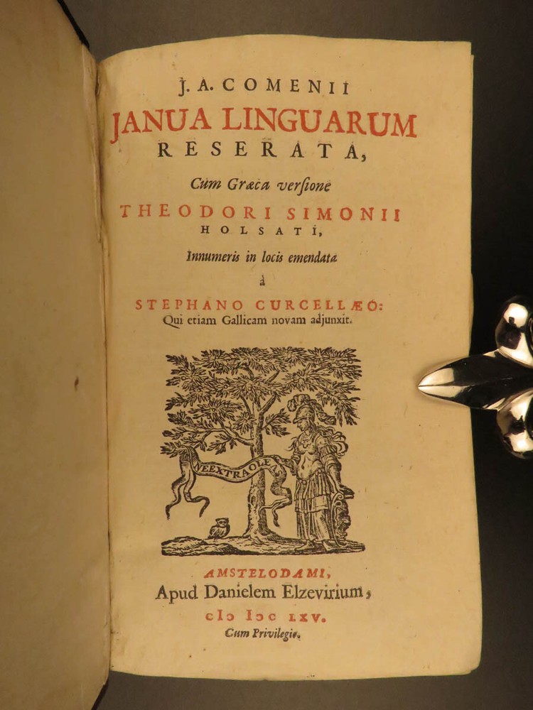 1665 Janua Linguarum Czech John Comenius Linguistics ELZEVIER Greek Latin French “Every educational reformer owes much, in the way of inspiration and suggestion, to his predecessors, and of none is this truer than of John Amos Comenius.” – Will S. Monroe, Comenius and the Beginnings of Educational Reform” Shortly after ‘ Janua Linguarum Reserata ’ was first published in 1629, it was translated into nearly every European language. In fact, by the 1630s, it was the second most read book in Europe, second only to the Bible . This textbook by Johann Amos Comenius was simply a text of Language, as the English title suggests, “ The Door of Languages Unlocked .” ‘ Janua ’ comprehends the elements of all the sciences and arts – from the origin of words to the mind and its faculties.” (Monroe, 126). It was written with 1,000 short sentences comprising of roughly 8,000 words. In all, there have been over 100 editions of this book printed! Comenius is now remembered as an innovator, who first introduced pictorial textbooks written in native languages rather than Latin. This Elzevier edition was published by Daniel Elzevier after Louis Elzevier’s original 1643 printing. (Willems). It contains the Latin, Greek, and French versions, but does not contain the indices that are in previous editions. ( Goldsmid ). Item number: #11301 Price: $750 COMENIUS, Johann Amos J.A. Comenii Janua linguarum reserata, cum Graeca versione Theodori Simonii Holsati, innumeris in locis emendata à Stephano Curcellaeo... Amstelodami: apud Danielem Elzevirium, 1665. Details : · Collation: Complete with all pages o [22], 266, 238 · References: Willems 995; Goldsmid I, 105 · Language: French / Latin / Greek · Binding: Leather; tight & secure · Size: ~6.5in X 4in (16.5cm x 10cm) Our Guarantee: Very Fast. Very Safe. Free Shipping Worldwide. Customer satisfaction is our priority! Notify us with 7 days of receiving, and we will offer a full refund without reservation! 11301