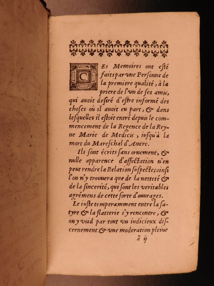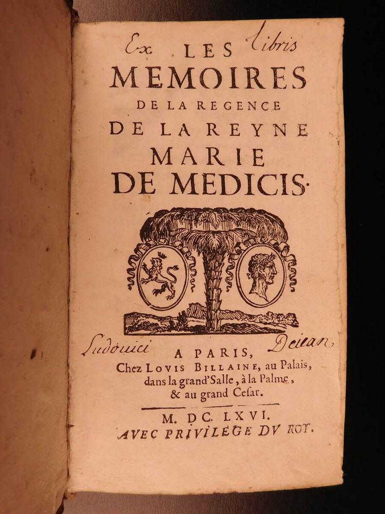 1666 1 st ed Queen Marie de Medici Memoirs France Henry IV Louis XIII RARE ‘The Memoirs of Marie de Medici’ is a mid-17 th -century account of the life, correspondence, and secrets of the Queen of France and her son Louis XIII, and the King of France, Henry IV. It includes transcripts of royal letters, political elements of Vincent de Gonzaga, Cardinal Ferdinand, and Duke of Savoy. Item number: #9452 Price: $499 ESTREES, Annibal Estrées Les memoires de la régence de la reyne Marie de Médicis Paris : Chez Lovis Billaine, 1666. Details : · Collation: Complete with all pages o [24], 350, [2] · References: BMC 285.c.33 · Provenance: Handwritten o Ludovici Deiean · Language: French · Binding: Leather; tight & secure · Size : ~6in X 3.75in (15cm x 9.5cm) Our Guarantee: Very Fast. Very Safe. Free Shipping Worldwide. Customer satisfaction is our priority! Notify us with 7 days of receiving, and we will offer a full refund without reservation! 9452