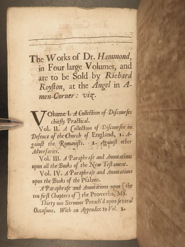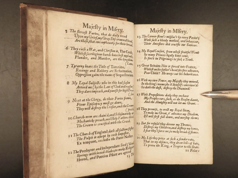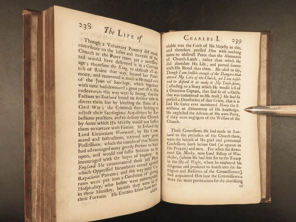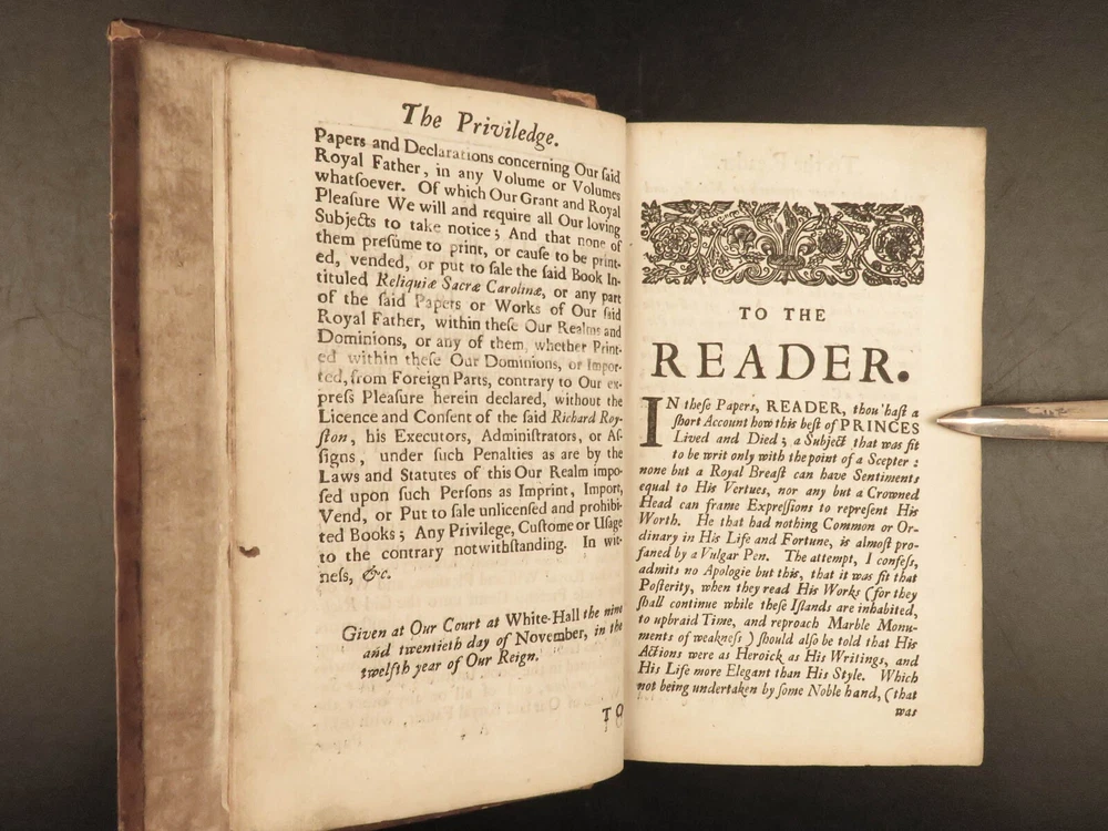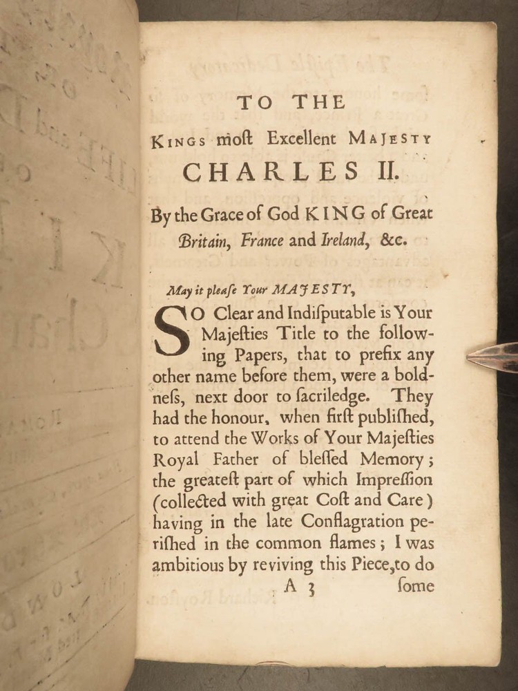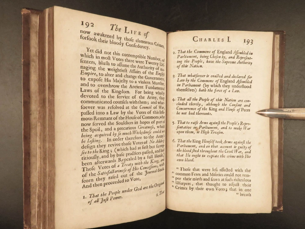 1684 King Charles I England Royal Martyr Perrinchief Queen Anne London Royalist Richard Perrinchief was a 17 th -century Royalist known for serving as a biographer for King Charles I. Following Charles I’s execution, Perrinchief published a survey of his life which included many of the writings of Charles himself. Perrinchief, like other royalists, wanted the death of Charles to not be in vain and wanted his legacy to be honored. It includes the state of the throne during and after Charles, on the death of Queen Anne, on the Battle of Naseby, the censure of Charles’ wealth and fortune, trial, and much more. Item number: #22922 Price: $750 PERRINCHIEF, Richard The royal martyr; or, The life and death of King Charles I London: Printed by J.M. for R. Royston, 1684. Details : · Collation: Complete with all pages o [12], 288, [10] o Engraved frontispiece · Language: English · Binding: Leather; tight and secure · Size : ~7.5in X 4.75in (18.5cm x 11.5cm) Our Guarantee: Very Fast. Very Safe. Free Shipping Worldwide. Customer satisfaction is our priority! Notify us with 7 days of receiving, and we will offer a full refund without reservation! 22922