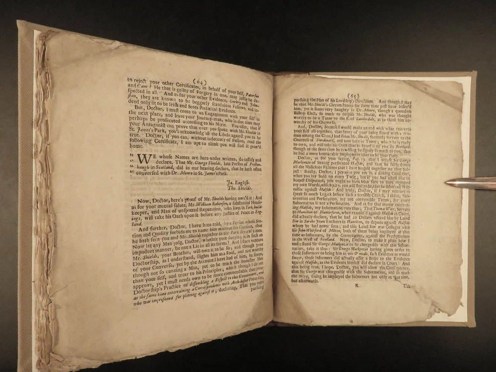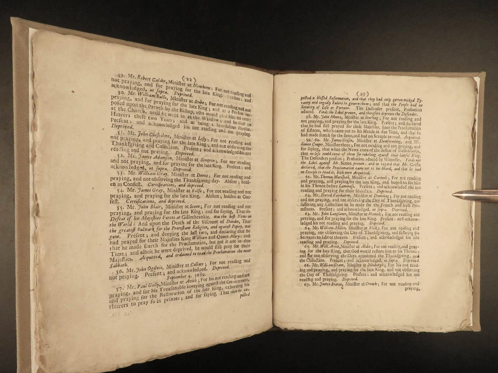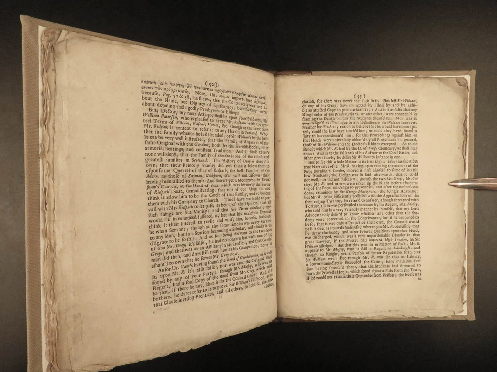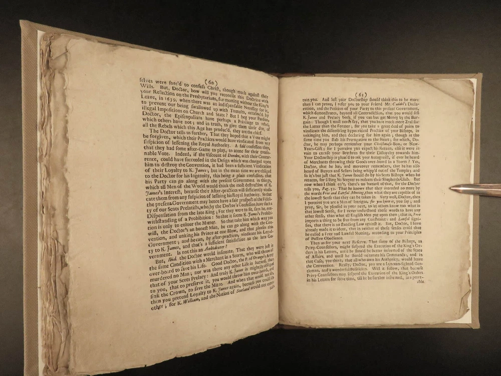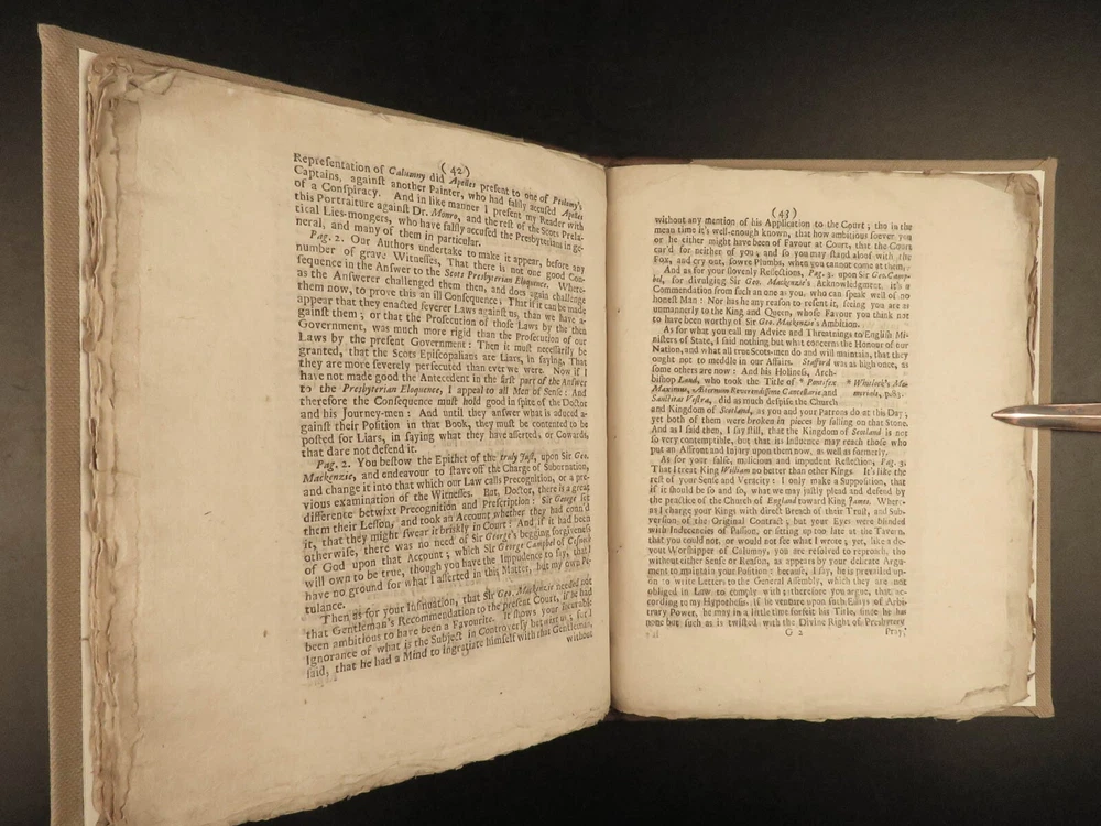 1694 SCOTLAND 1 ed Ridpath Scots Episcopal Innocence Scottish Treason Politics George Ridpath was a 17 th -century Scottish author following the Glorious Revolution. As a prominent Whig apologist, Ridpath published many of his more controversial works under the pseudonym Will Laick, including his attacks on the Scottish episcopal party. One work from these attacks was his “ Scots Episcopal Innocence ” – a short pamphlet identifying the failures of the party, accusations of treason, and the disloyalty of the Scottish clergy and their disregard for the Order of the State, King William, and Queen Mary. Item number: #22531 Price: $750 RIDPATH, George The Scots episcopal innocence, or, The juggling of that party with the late King London: printed in the year, 1694. First edition. Details : · Collation: Complete with all pages o [2], ii, 68 · References: Wing R 1465 · Language: English · Binding: Leather; tight and secure · Size : ~9.25in X 7.25in (23cm x 18.5cm) · quite rare Our Guarantee: Very Fast. Very Safe. Free Shipping Worldwide. Customer satisfaction is our priority! Notify us with 7 days of receiving, and we will offer a full refund without reservation! 22531