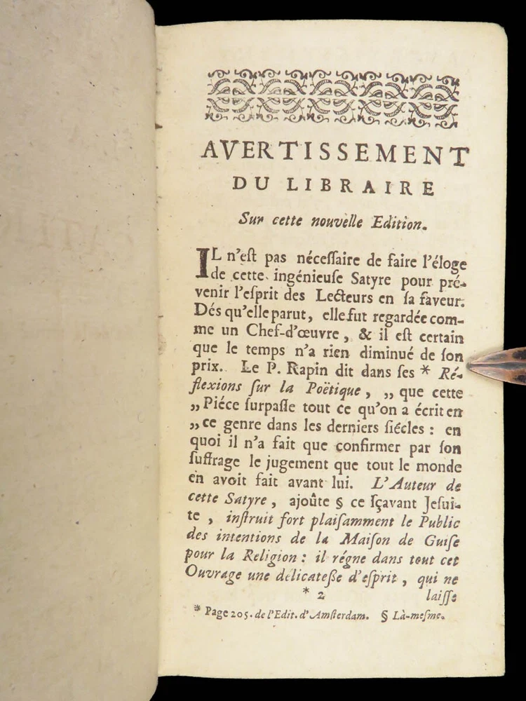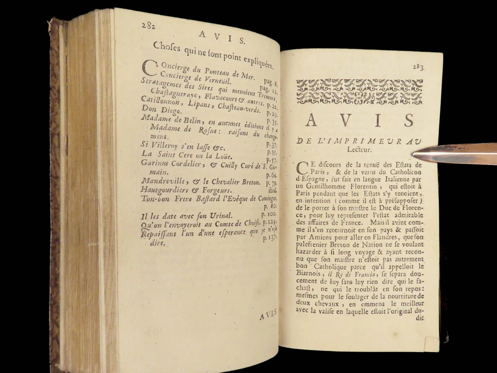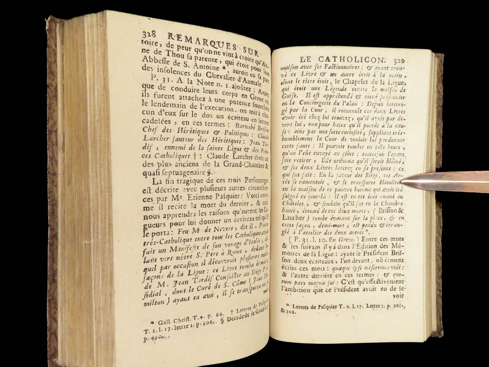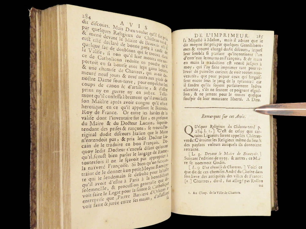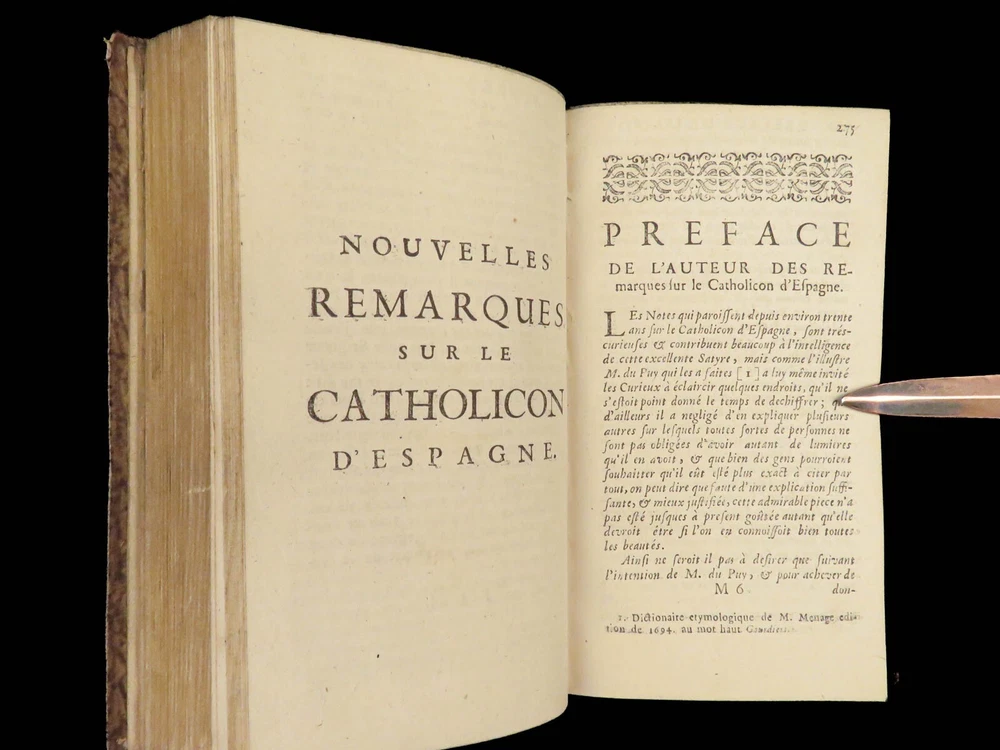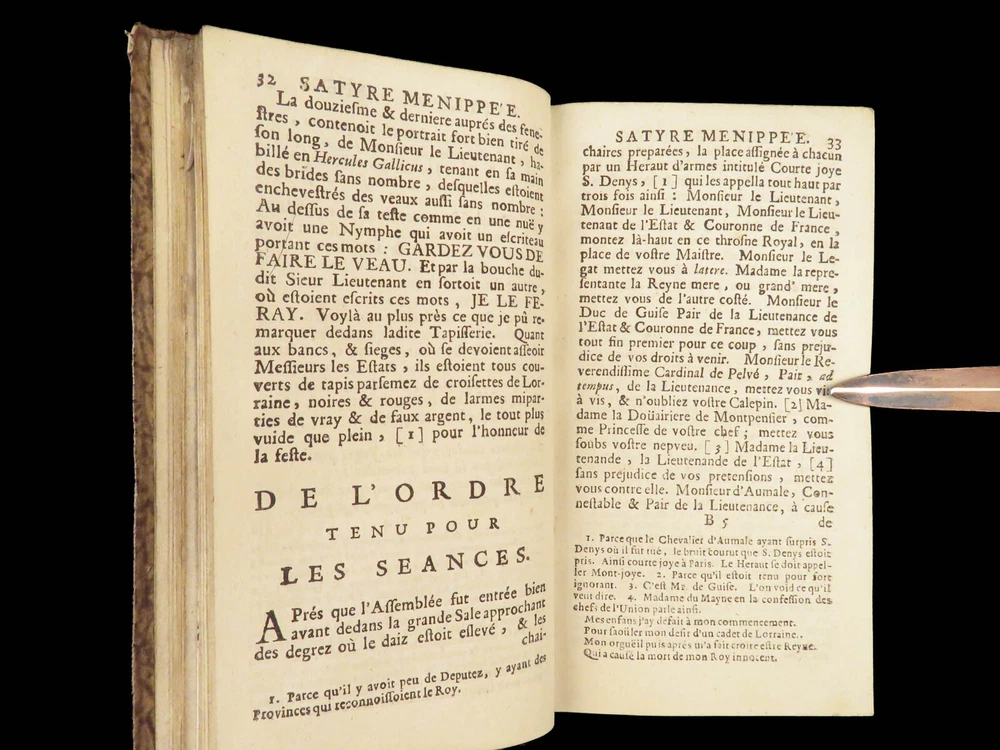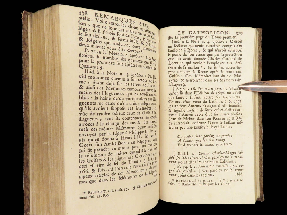 1696 Menippean Satire Catholic LEAGUE Spain France Religion Wars Elzevier A rare first edition of The Menippee Satire – a political work of prose and satire which criticized the Catholic League and Spain during the French Religious Wars. This fine printing features a beautiful and detailed engraving of the Catholic League procession. This book of prose and verse was collected by numerous authors including Jacques Gillot, Florent Chrestien, Nicolas Rapin, Pierre le Roy, Jean Passerat, Gilles Durant, and others. This edition, addressed to Brussels (Ratisbonne) actually comes from the presses of Foppens, which is attached to the Elzevier collection. This 1696 edition includes the Catholic League processional engraving. Item number: #26963 Price: $599 Catholic Church Satyre Menippée de la vertu du catholicon d'Espagne; et de la tenuë des Estats de Paris A Ratisbonne [i.e. Bruxelles] : Chez Mathias Kerner [i.e. François Foppens], 1696. Details : · Collation: Complete with all pages o [4], 507, [1] o 3 engravings (1 folding) · References: Burnet V 145; Willems 2007 · Language: French · Binding: Leather; tight and secure · Size : ~6in X 3.5in (15cm x 8.5cm) Our Guarantee: Very Fast. Very Safe. Free Shipping Worldwide. Customer satisfaction is our priority! Notify us with 7 days of receiving, and we will offer a full refund without reservation! 26963