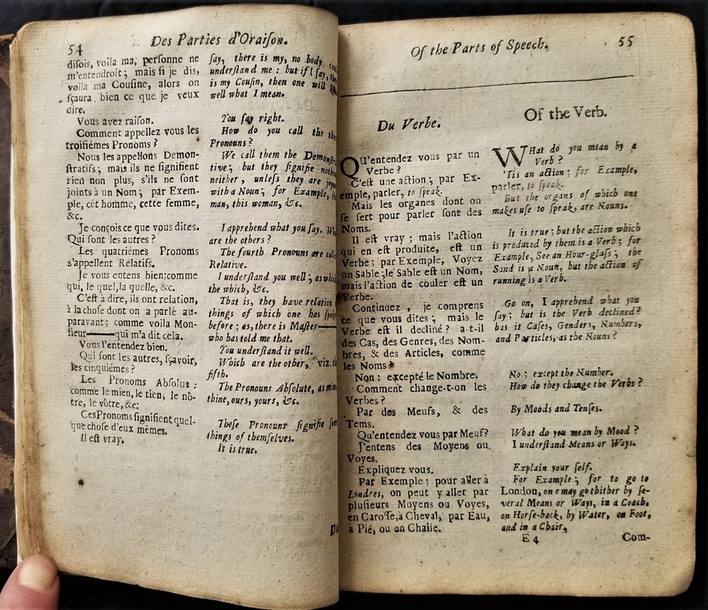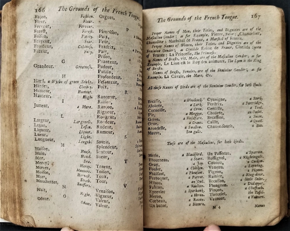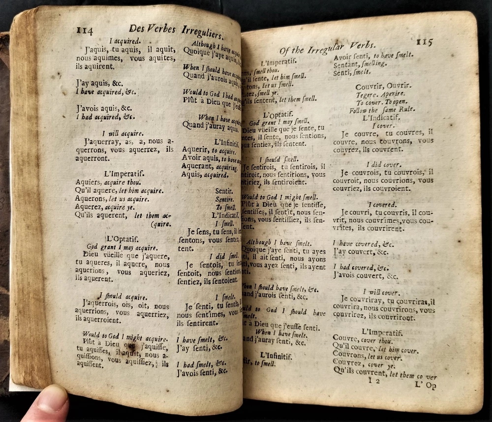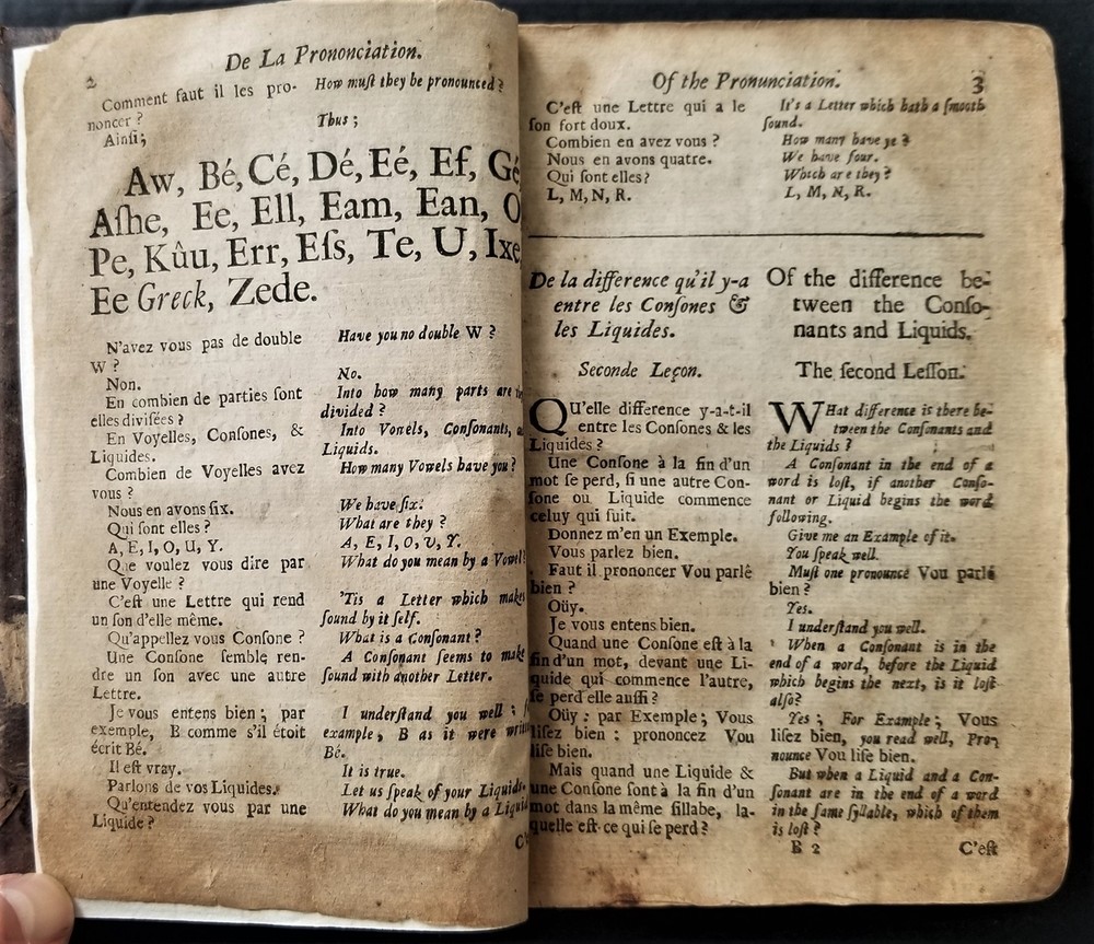1698 antique MAUGERs FRENCH GRAMMAR grammaire francoise de claude mauger leather SCROLL DOWN for MORE PHOTOS in DESCRIPTION Click HERE to view or search ANTIQUE.COTTAGE listings. This listing is for the hardcover, leather over board book, 6.5"x4" with 432 pages with text in English and French. "Grammaire Francoise de Claude Mauger avec de augmentations. Enriche du Mots a' la Mode. [etc...]. La Dixhtieme Edition. A Londres, Imprimee par R. E. pour K. Bentley, dans RUssel-street au Covent-Jardin, 1698." CONDITION : See listing description and photos. **missing original title page - the present title page is a facsimile printed on 18th century laid paper**; missing front & rear end-papers; front spine edge cracked & split the entire length of the front board - the board is still attached securely by cords; vertical crack through center of spine; wrinkle in leather on front board;spine leather cracking, torn & chipping on edges; losses to leather along edges of boards; leather on spine & boards rubbed, worn & scratched; corners well worn, exposed & rounded; edges worn; missing majority of dedication page - only a small fragment of the upper left corner of the dedication remains; stains,age toning, & foxing spots throughout the entire contents; ink notations scattered throughout; ink & pencil scribbles on last page & inside rear board; - International buyers are responsible to pay VAT or other Taxes to their countries as required. - eBAY collects and remits sales tax on behalf of several states. If you are a dealer, you can write to eBay to file a form to become tax exempt. LOC: LOC2: BOOKBOX03-TMK Powered by SixBit's eCommerce Solution
