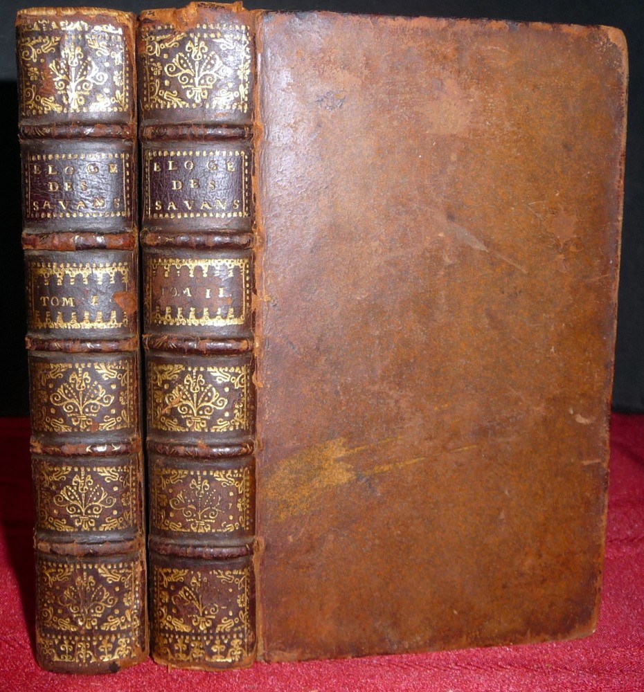 1715 Biographical Dictionary. Eloges des Hommes Savans by Tessier. 2V in French Click to Enlarge Click to Enlarge Click to Enlarge Click to Enlarge Click to Enlarge Click to Enlarge Click to Enlarge Click to Enlarge Click to Enlarge Click to Enlarge Click to Enlarge Click to Enlarge Description: Les Eloges des Hommes Savans tirez de l'Histoire de M. de Thou avec des Des additions contenant l'Abrégé de leur Vie, le Jugement & le Catalogue de leurs Ouvrages (The Eulogies of the Learned Men: drawn from the history of M. de Thou with additions containing the abridgment of their life, the judgment and catalog of their works.) par Antoine Teissier 4e éd. rev., corr. & augmentée, outre un très-grand nombre de nouvelles remarques, d'un quatriême tome Tome Premier & Tome Second Theodore Haak, Leyde, 1715. 4th expanded edition. Two volumes of four. Hard Covers. Full-leather over boards with ribbed spines, 12mos, gilt spine titles and decoration, engraved illustrations on title pages. Tome 1: [36], 411, 20 pages; tome 2: 474, [5] pages. In French. Biographies in these volumes include those of Michelangelo, John Calvin, Melanchton, Erasmus, Jean Grollier, Michel de L’Hopital, Guillaume Rondelet, Kyriaque Strozzi, Vesalius, Sebastian Munster, George Agricola, Pierre Bembo, Robert Estienne, Angelo Politio, Cesar Scaliger, etc., etc. The 4th edition of Teissier's work based on Jacques-Auguste de Thou's Histoire, edited to render the biographies of learned men scattered through de Thou's work more accessible by uniting them in single corpus and to facilitate their consulation by translating them into French. Since de Thou's obituary notices are extremely short, Teissier states in his avertissement that he has added material, both biographical and critical, listing the chief works of each man and correcting de Thou's own words in certain cases. He used Pierre du Ryer' translation for those biographies taken from Books 1-57, correcting that translation by comparison with the Latin when there was need. He has clearly indicated in his edition where he ceased to use du Ryer's version and began his own. [The Works of Jacques-Auguste de Thou by S, Kinser] An unaltered second edition was at Lyon, while a third was augmented and issued at Utrecht in 1696, and reprinted the following year. A Berlin edition was published in three volumes in 1701. The 4th edition was published in 1715. CONDITION: Good. (Covered have moderate edge and corner wear, rubbing and soil. Front blank endpapers are missing. Age tanning of paper. Unmarked and intact Contents with light to moderate foxing. Tight bindings.) Check our other auctions and store listings for additional unusual items. ( Click here to view all of our auctions ) Shipping and Payment Information Shipping : DOMESTIC Domestic Media Mail shipping, including Delivery Confirmation and Insurance, is standard. This applies to any address in the US and Puerto Rico, as well as to APO addresses. Media Mail, available only for domestic shipping, is trucked to its destination, and shipped by boat to Alaska, Hawaii and Puerto Rico, On the average it takes 3 to 10 days to arrive, depending on the distance and the vagaries of the US Postal Service. Shipments to Alaska, Hawaii, APO and other off-shore addresses take longer to arrive. During the pre-Christmas season, Media Mail is subject to delays. When filling out the Ebay Detailed Seller Ratings, please keep in mind that the sometime slow arrival is due to the performance of the Postal Service and not to any tardiness on the part of the seller. For expedited domestic mailing, Priority Mail shipping can be arranged at an additional cost. For most books, we charge between two and nine dollars for this service, including delivery confirmation and insurance. For heavy sets or high-value books, the charge may be higher. INTERNATIONAL For international shipping, we urge bidders to request quotes of shipping costs before bidding. We will also specify international shipping options and prices after the conclusion of the auction. We will try to provide a range of options but buyers should be aware that all shipments are via air mail and shipping of heavy books can be expensive. COMBINED SHIPPING For international transactions, combined shipping of multiple lots can substantially reduce postage. This is especially the case for M-Bag shipments of up to 11 lbs and for multiple volumes that will fit into a single Priority Mail flat rate box. For the above options, the postage rate is fixed independently of the weight. INSURANCE All of our domestic shipments are fully insured. Payment : No credit cards except through PayPal. Paypal payments should be in US Dollars but Euros are also acceptable if prior agreement is obtained. As of October 2008, Ebay is imposing the requirement that all payments be made via Paypal. We understand that this requirement may be a problem to some of our customers and we will do our best to accommodate their needs. inkfrog terapeak