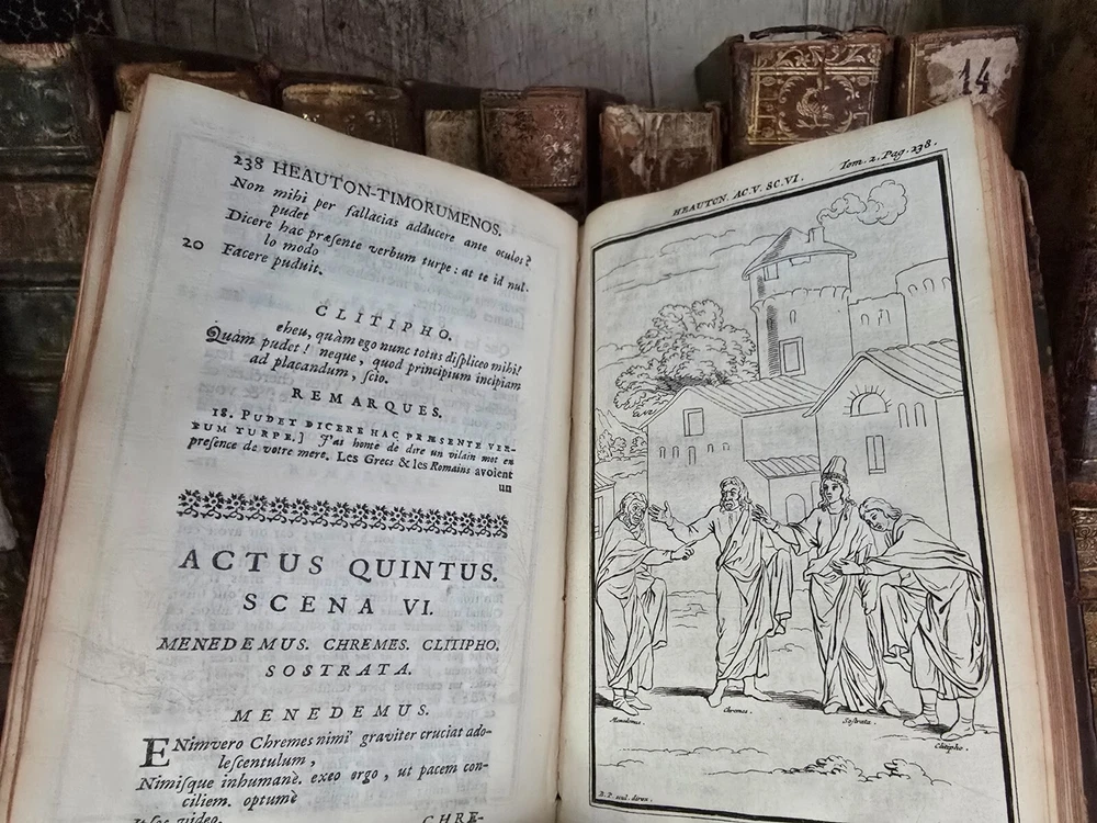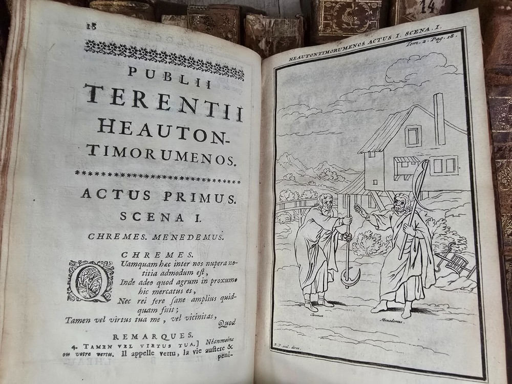 " The Comedies of Terence, with the Translation and Remarks of Madame Dacier " This elegantly printed 18th-century edition presents the comedies of the Roman playwright Terence, accompanied by French translations and scholarly commentary from the renowned classicist Anne Dacier. This particular volume (Volume II) contains the Latin text of Heautontimorumenos ( The Self-Tormentor ), one of Terence’s most admired plays, alongside Dacier's French translation and notes. A striking red-and-black title page and an engraved portrait adorn the book, reflecting the typographical elegance typical of early Enlightenment publishing in the Netherlands. Dacier’s annotations aim to both clarify the text and defend its moral and literary value in light of French neoclassical standards. Table of Contents (Extracted and Simplified): Heautontimorumenos ( The Self-Tormentor ) Latin text: Publii Terentii Heautontimorumenos French title: L’Heautontimorumenos de Terence Titulus / Le Titre (stage directions, performance history) Remarques (notes and commentary in French) (Note: The book focuses solely on this single comedy in its entirety, rather than a compilation of multiple works, making this volume uniquely centered on this one play.) Summary: Heautontimorumenos is a Roman comedy originally written by Terence in 163 BCE, adapted from a lost Greek play by Menander. The play explores themes of self-punishment, parental control, and the tension between duty and affection. The title refers to a man who punishes himself severely for having previously expelled his son for falling in love. As the narrative unfolds, misunderstandings are gradually resolved through honesty, friendship, and compassion, culminating in reconciliation. Terence's language is known for its elegance and psychological realism, and Madame Dacier’s detailed notes further enrich the reader’s understanding by comparing Terence's themes to those of Greek origins and 17th-century French values. This volume serves as both a literary artifact and a classical education tool. Pages: 500 Size: 6" x 3.5" x 1.2" See other $0.99 items