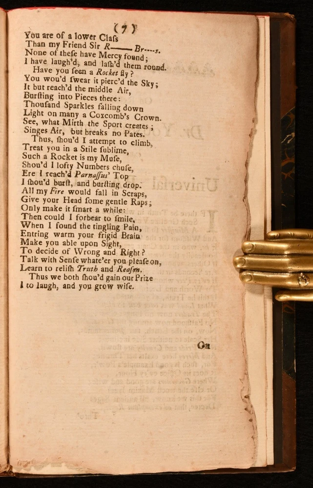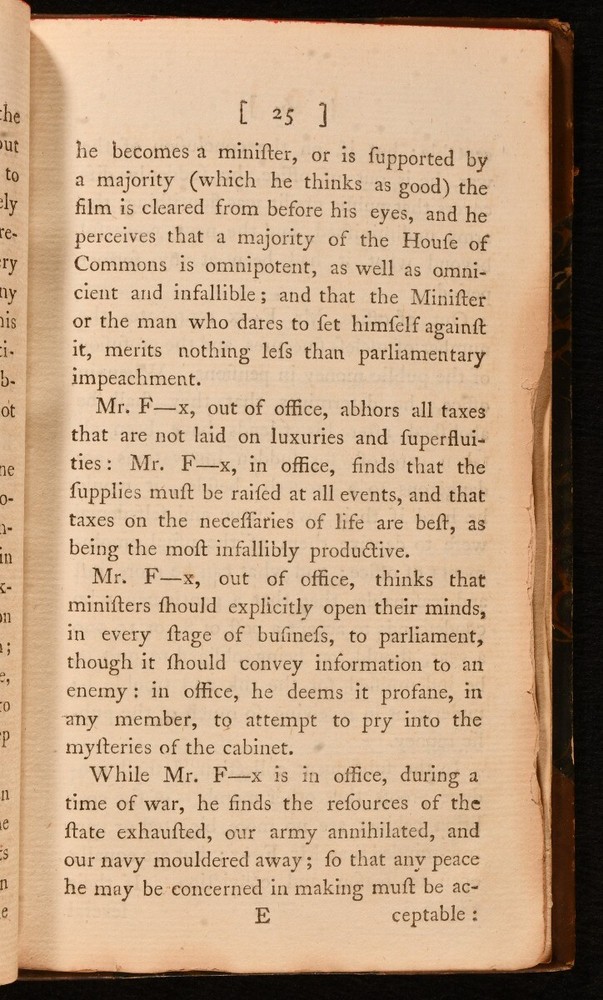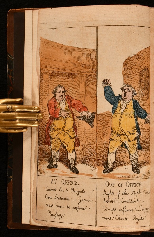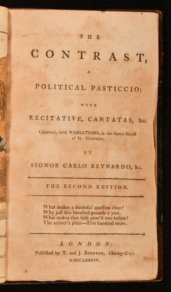 Click here to see our other books! The Contrast, a Political Pasticcio A New Miscellany For the Year 1734 Carlo Reynardo; [Charles James Fox]; Jonathan Swift 1734-84 T. and J. Egerton : London 8" by 4.5" [6], 70, 23pp SUMMARY A very scarce political satire by Charles James Fox, bound with four poems by Jonathan Swift. Colour Plates,Early Edition,Illustrated,Leather Binding,Very Scarce Overall Condition: Good This book weighs 0.5 KG when packed UK Postage: £ 3.99 US Postage: £ 15.99 EU Postage : £ 13.99 European Postage: £ 14.99 Asia Postage: £ 18.99 Worldwide Postage: £ 19.99 DESCRIPTION A very scarce work. The second edition. Illustrated with a hand-coloured frontispiece, depicting Charles James Fox. A political satire by Charles James Fox, writing under the pseudonym 'Carlo Reynardo'. This work satrisies the contemporary government, with reference to Fox himself, Edmund Burke, and Fox's great rival, William Pitt the Younger, who was Prime Minister at the time of this publication. This copy is also bound with pages 1 to 23 of 'A New Miscellany For the Year 1734', the first part only, containing Jonathan Swift's poetry. This contains 'An Epistle to a Lady', 'On Reading Dr. Young's Satires, Called the Universal Passion', 'On Poetry; a Rhapsody', and 'On the Words, Brother-Protestants, and Fellow-Christians'. Bound without the title page. Bound without the half-title. An interesting piece of political satire, insightful of the state of politics under George III and William Pitt the Younger. CONDITION In a half calf binding with marbled paper to the boards. Externally, a little rubbed. Minor bumping to the head and tail of the spine and to the extremities. Small tear to the head of the front joint. A few light marks to the boards and spine, a little heavier to the head of the front joint. Light dampstain to the front joint. Front hinge is starting but firm. Internally, firmly bound. Pages are lightly age-toned and generally clean with some scattered spots. Bound without the half-title to the first work, and the title page of the second work. Overall Condition: Good GLOSSARY OF TERMS Overall Condition (Dustwrapper condition rating is shown after that for the book itself, where a dustwrapper is present) Fine - Very well preserved copy showing very little wear Very Good Indeed - Only one or two minor faults, really a very attractive copy Very Good - Quite a wide term meaning no major faults but probably several smaller ones often expected given the age of the book, but still a respectable copy Good - Meaning not very good. Some more serious faults as will be described in the condition report under 'condition' Good Only - Meaning one or more faults that could really do with repair Fair - As with good only above but with other faults leaving a compromised copy even after repair Poor - Really bad and possibly seriously incomplete. We only sell books in this condition where their rarity or value makes them attractive none the less. Major defects will be described. GUARANTEE We offer a full money back guarantee on our descriptions. Please ask for details and conditions. We prefer PAYPAL. If you pay via PAYPAL we will post the item off the same or the next working day with the postage you have selected. Please note we cannot accept USD cheques