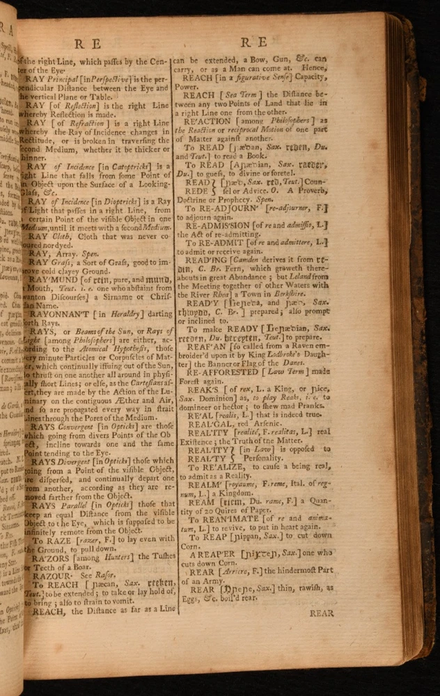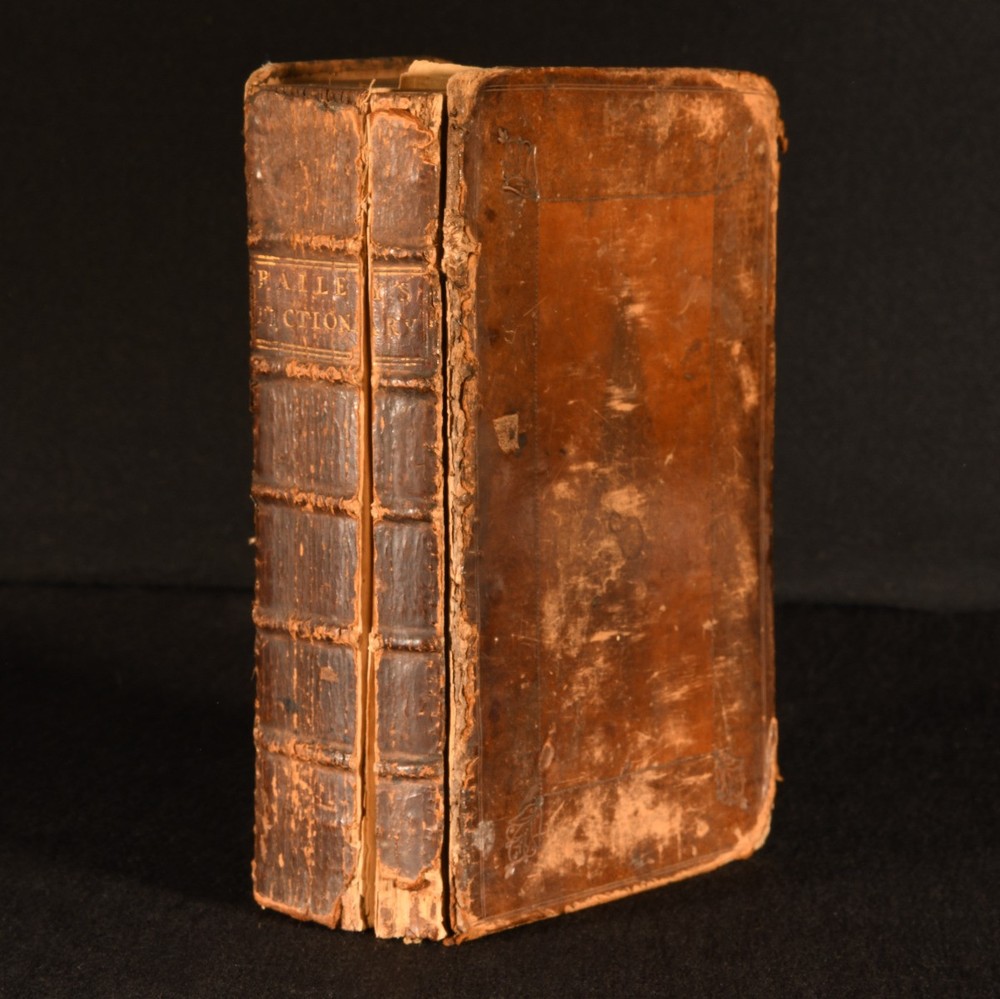 Click here to see our other books! An Universal Etymological English Dictionary Nathan Bailey 1737 D. Midwinter, A. Bettesworth and C. Hitch et al : London 8.5" by 5.5" [944]pp SUMMARY The improved and enlarged eighth edition of Nathan Bailey's enormously informative English dictionary. Leather Binding Overall Condition: Fair This book weighs 1 KG when packed UK Postage: £ 3.99 US Postage: £ 22.99 EU Postage : £ 16.99 European Postage: £ 17.99 Asia Postage: £ 22.99 Worldwide Postage: £ 28.99 DESCRIPTION First published in 1721, this is the scarce eighth edition. This was the most popular English dictionary of the eighteenth century until the publication of Samuel Johnson's dictionary. Compiled by English lexicographer Nathaniel Bailey, 'Bailey's dictionary' is known as one of the first English dictionaries to focus on defining words of common usage as well as lesser known, difficult words. Lacking the endpapers, with front board detached and rear board tender. ESTC T87499 With the collation: A4, a4, B-2P4, 2Q2-4, 2R-6C4. Lacking leaf 2Q, otherwise complete. With an advertisement to the final leaf. With the first edition published in 1721, this important reference work ran for thirty editions, with the final being published in 1802. CONDITION In a full calf binding. Front board detached but present. Rear board tenderly held with amateur stitches to the tail only. Significant rubbing externally. Lacking endpapers and blanks. Restorations to gutter of title page. Text block divided into two following leaf 2P4, with three leaves detached and loosely inserted. Lacking leaf 2Q. Otherwise, internally, firmly bound. Pages age toned, with handling marks throughout. Light spotting to majority of leaves. Overall Condition: Fair GLOSSARY OF TERMS Overall Condition (Dustwrapper condition rating is shown after that for the book itself, where a dustwrapper is present) Fine - Very well preserved copy showing very little wear Very Good Indeed - Only one or two minor faults, really a very attractive copy Very Good - Quite a wide term meaning no major faults but probably several smaller ones often expected given the age of the book, but still a respectable copy Good - Meaning not very good. Some more serious faults as will be described in the condition report under 'condition' Good Only - Meaning one or more faults that could really do with repair Fair - As with good only above but with other faults leaving a compromised copy even after repair Poor - Really bad and possibly seriously incomplete. We only sell books in this condition where their rarity or value makes them attractive none the less. Major defects will be described. GUARANTEE We offer a full money back guarantee on our descriptions. Please ask for details and conditions. We prefer PAYPAL. If you pay via PAYPAL we will post the item off the same or the next working day with the postage you have selected. Please note we cannot accept USD cheques