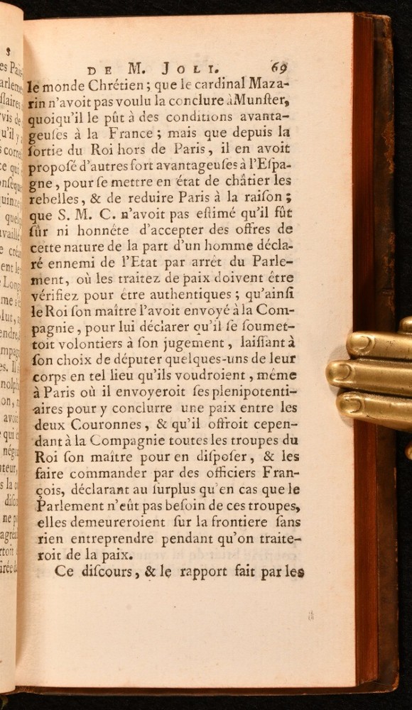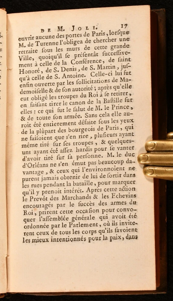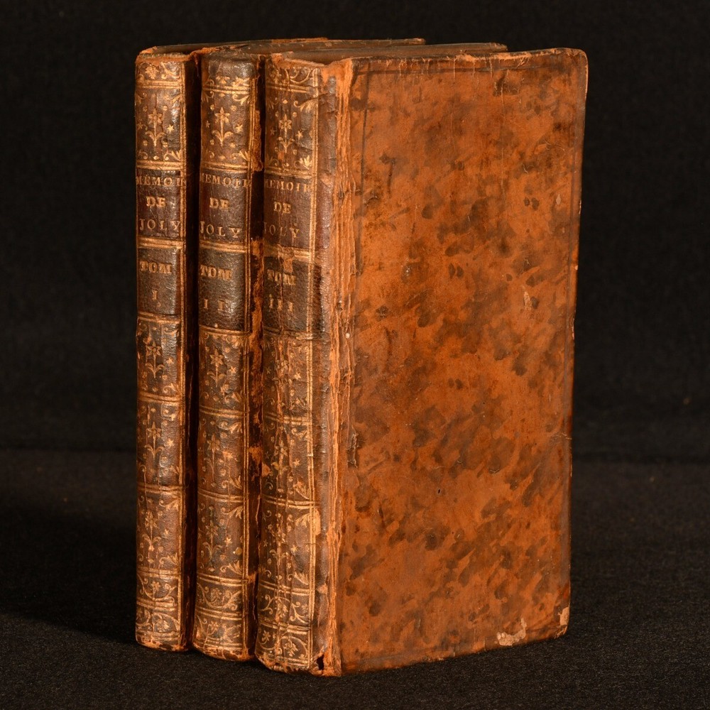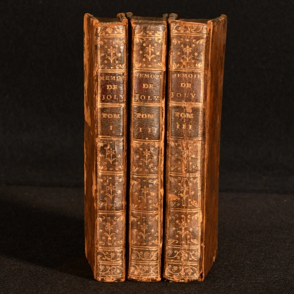 Click here to see our other books! Memoires de Guy Joli, Conseiller au Chastelet de Paris Guy Joli 1751 Fabry & Barillot : Geneve 5.5" by 3.5" [4], 270; [4], 346; [4], 396pp SUMMARY The memoirs of French magistrate Guy Joli, a confidante of Cardinal de Retz, in the original French. Leather Binding Overall Condition: Good This book weighs 1.5 KG when packed UK Postage: £ 3.99 US Postage: £ 23.99 EU Postage : £ 18.99 European Postage: £ 19.99 Asia Postage: £ 31.99 Worldwide Postage: £ 32.99 DESCRIPTION Complete in three volumes. In the original French. The memoirs of Guy Joli, also spelt as Joly. Joli was a French magistrate of the seventeenth century. He was an advisor at the Chatelet de Paris, and private secretary to Cardinal de Retz. As a supporter of the monarchy, Joli escaped France with Retz during the Fronde, a series of civil wars in France between 1648 and 1653. When Mazarin died, Joli and Retz returned to France. Retz and Joli eventually broke their friendship, accusing one another of ingratitude. In his memoirs, Retz presents a very different version of Joli than the author presents of himself here. The title page of Volume III reads as 'Memoires de Claude Joli, Chanoine de Notre-Dame, et de Madame la Duchesse de Nemours'. Bookplate of the Reverend F. Hutcheson to the front paste down of Volume II. CONDITION In a full calf binding. Externally, generally smart, a little rubbed. Minor bumping to the extremities. A small amount of loss to the head of the spines of Volumes I and III. Spines are discoloured. A few light marks to the boards and spines. A little loss of leather to the boards of Volume I, and to the rear board of Volume II. Bookplate to the front paste down of Volume II is detaching. Internally, firmly bound. Pages are very lightly age-toned and clean. Overall Condition: Good GLOSSARY OF TERMS Overall Condition (Dustwrapper condition rating is shown after that for the book itself, where a dustwrapper is present) Fine - Very well preserved copy showing very little wear Very Good Indeed - Only one or two minor faults, really a very attractive copy Very Good - Quite a wide term meaning no major faults but probably several smaller ones often expected given the age of the book, but still a respectable copy Good - Meaning not very good. Some more serious faults as will be described in the condition report under 'condition' Good Only - Meaning one or more faults that could really do with repair Fair - As with good only above but with other faults leaving a compromised copy even after repair Poor - Really bad and possibly seriously incomplete. We only sell books in this condition where their rarity or value makes them attractive none the less. Major defects will be described. GUARANTEE We offer a full money back guarantee on our descriptions. Please ask for details and conditions. We prefer PAYPAL. If you pay via PAYPAL we will post the item off the same or the next working day with the postage you have selected. Please note we cannot accept USD cheques