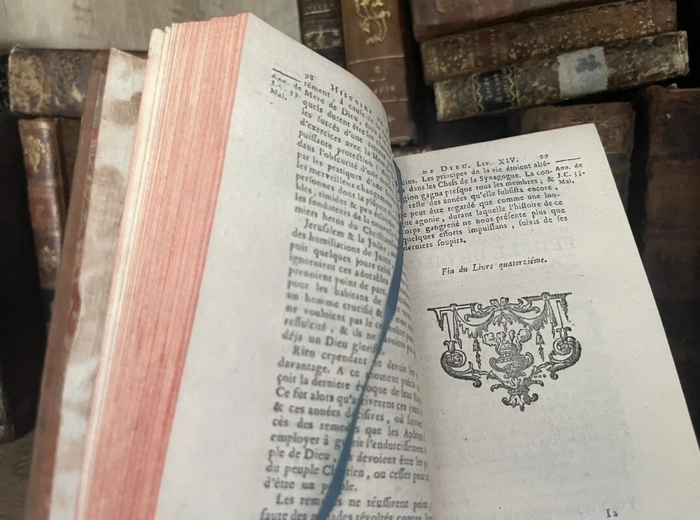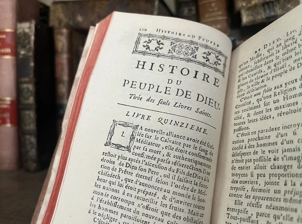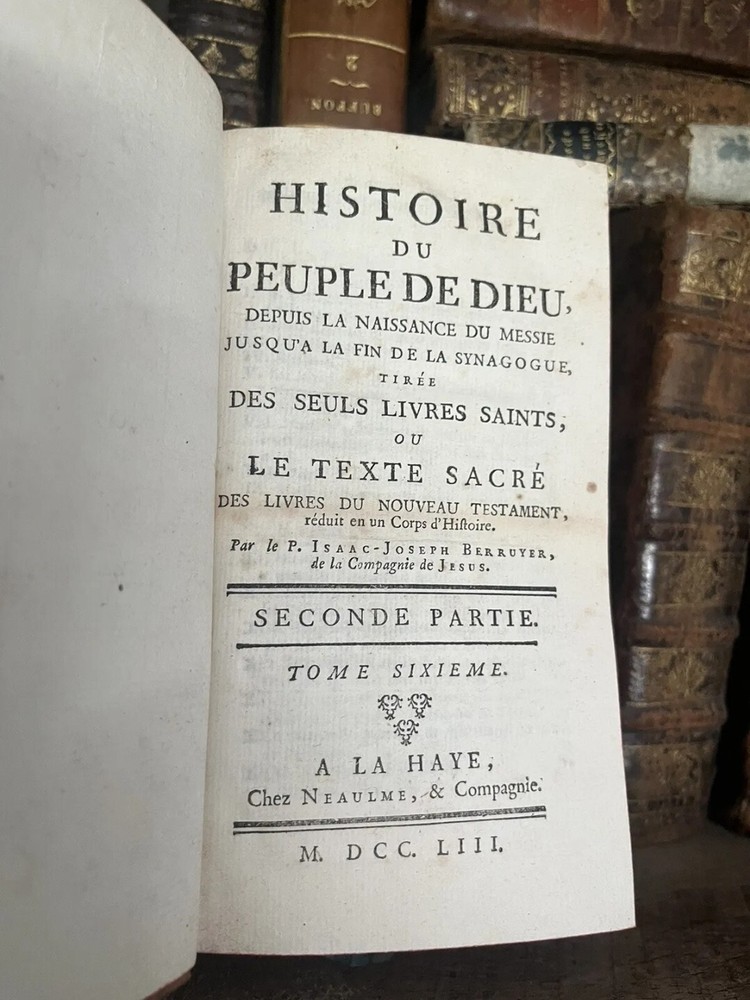 This antique book is truly a treasure for collectors and history enthusiasts alike. Printed in 1774, it provides a fascinating account of the history of God's people from the birth of the Messiah until the end of synagogues. The book is beautifully bound in leather and contains stunning illustrations that add to its appeal. The book is a limited edition collector's item and has been marked as an ex-library copy, which adds to its historical significance. The text is written in French and offers a unique perspective on this important period in history. This book would make a wonderful addition to any collection or a great gift for someone interested in history, religion, or literature.