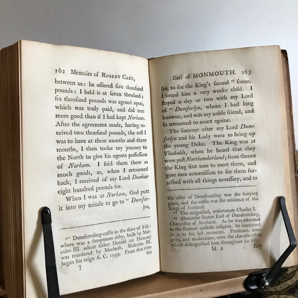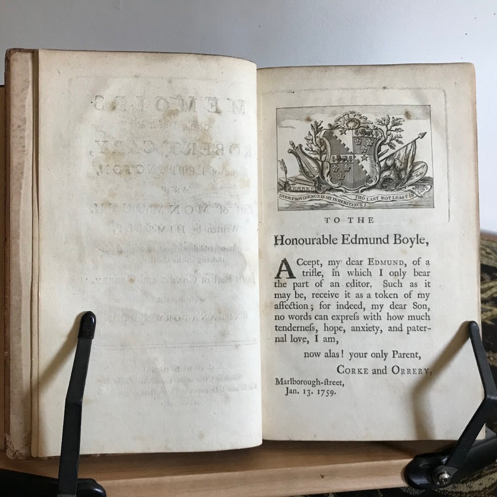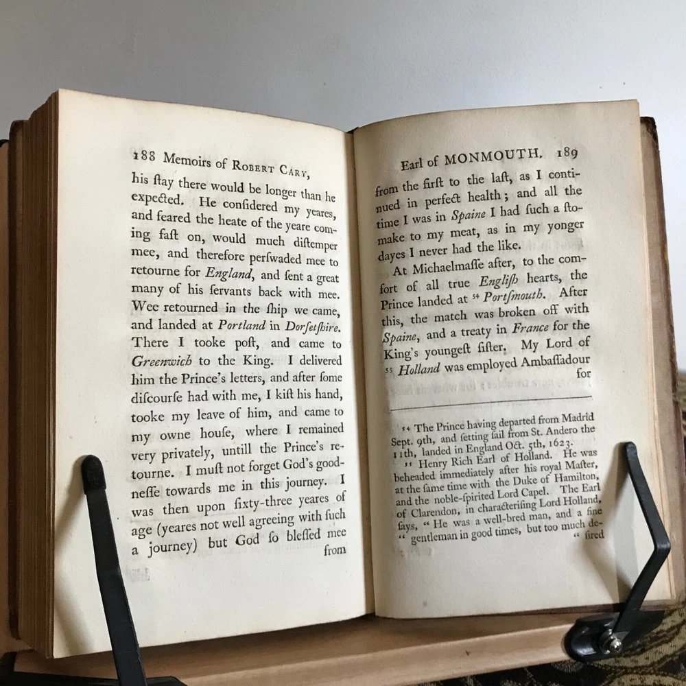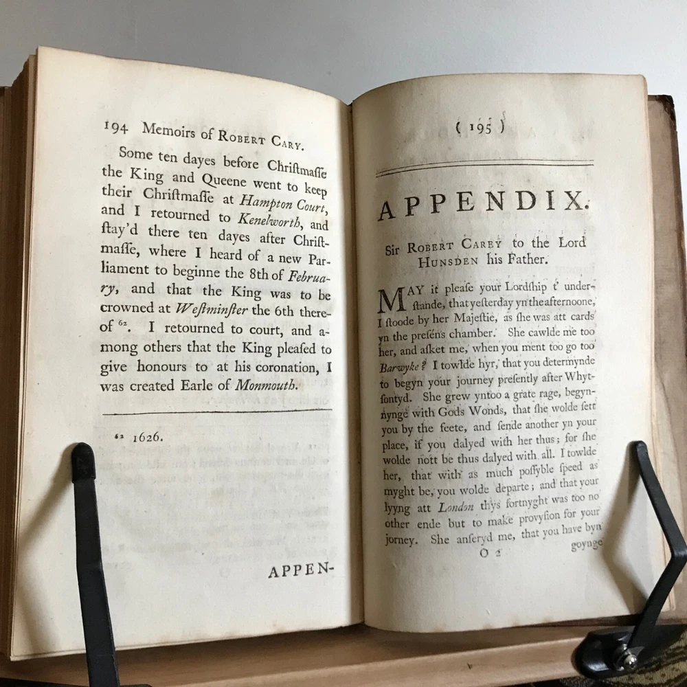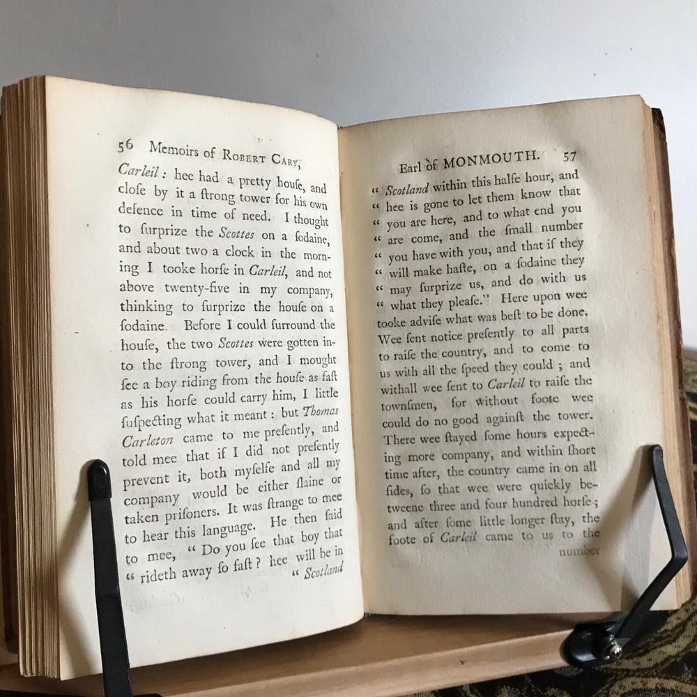 Memoirs Of the Life of Robert Cary, Baron of Leppington, and Earl of Monmouth. Written by Himself, and now published from an Original Manuscript in the Custody of John Earl of Corke and Orrery with some Explanatory Notes. Robert Carey, Printed by J. Hughs near Lincoln’s-Inn-Fields, London,1759, frontispiece, 200 pp plus index and errata, full leather, 8.25 x 5.5”, 8vo. In good condition. Spine has been nicely redone in recent years. Dated with gilt work, five raised bands. Original boards have been nicely incorporated into new spine. Original boards exhibit wear along edges and corners.. scuffing and light abrasions to surface. End papers have been kept in their original state. Interior has minor toning with light foxing. Free of known marginalia. Binding tight and secure. Please see photos. Great frontispiece of Elizabeth I in Royal Procession with her court. Robert Carey, 1st Earl of Monmouth was an English nobleman and courtier. He was the youngest son of Henry Carey, 1st Baron Hunsdon, chamberlain and first cousin of Queen Elizabeth I, and Anne Morgan, daughter of Sir Thomas Morgan and Anne Whitney. COLH1759CHJL-variant