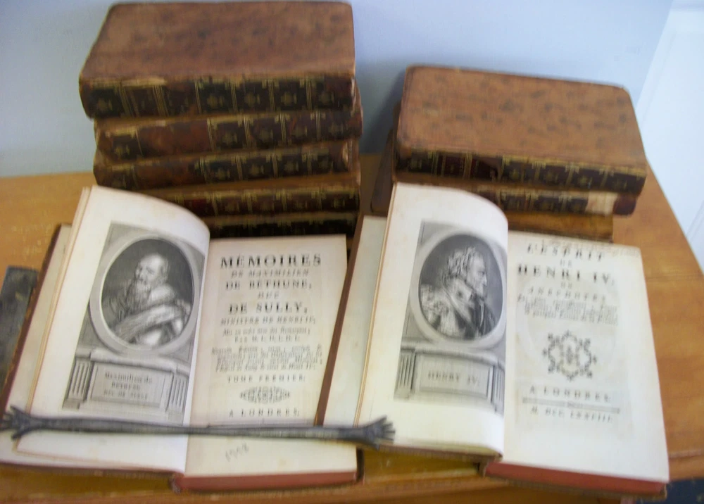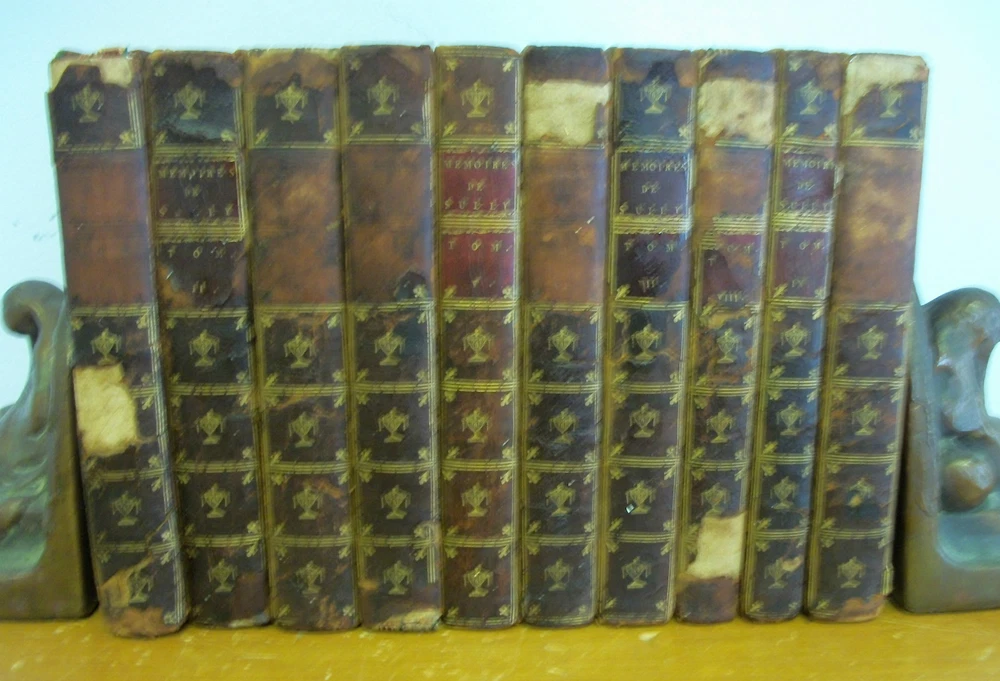 MEMOIRES De Maximilien De Bethune, Duc DE SULLY, Ministre De Henri IV was published 1778 by A Londres in 10 volumes, each measuring 6 3/4" x 4" with leather binding, marbled endpapers, gilt decorated spines and index. Vols I and X have frontis illustrations. Vol X is titled L'Esprit de HENRI IV ou Anecdotes... Thank you.