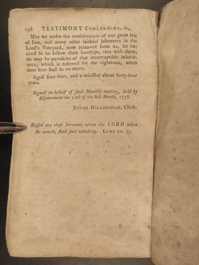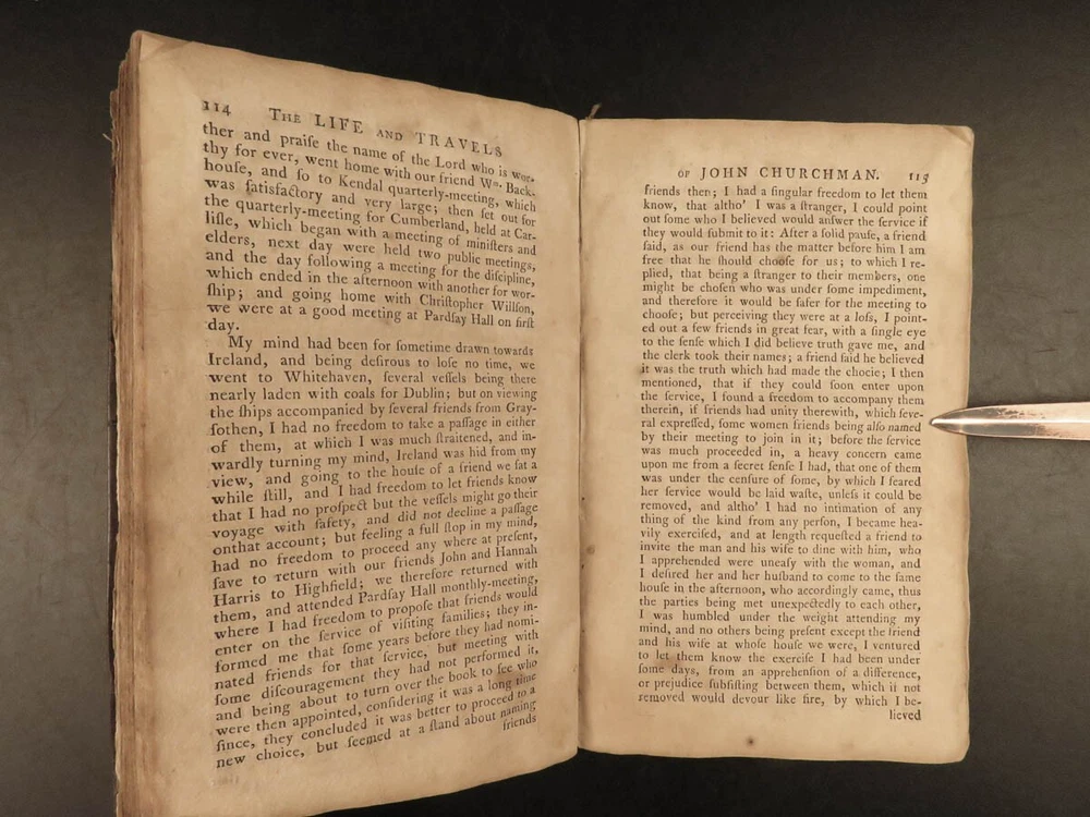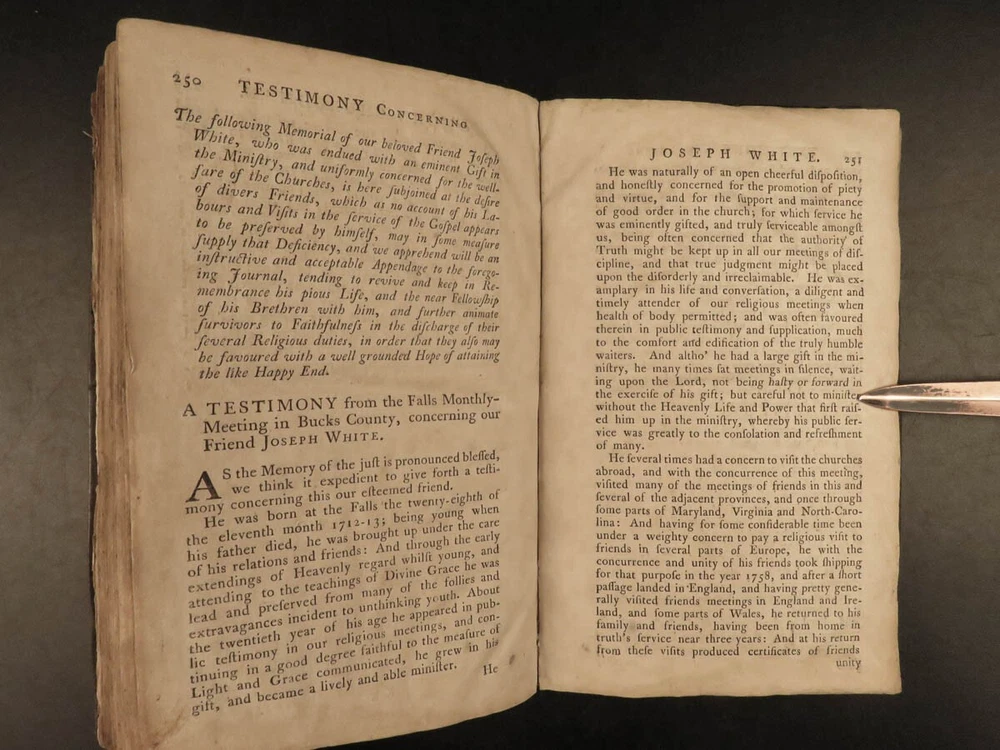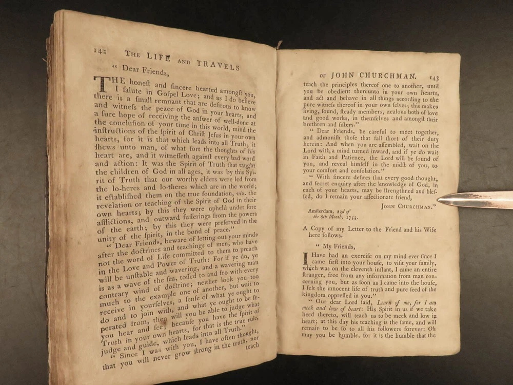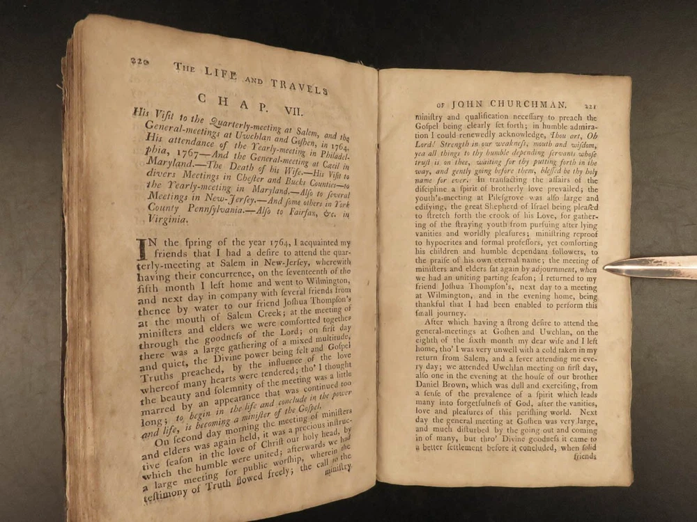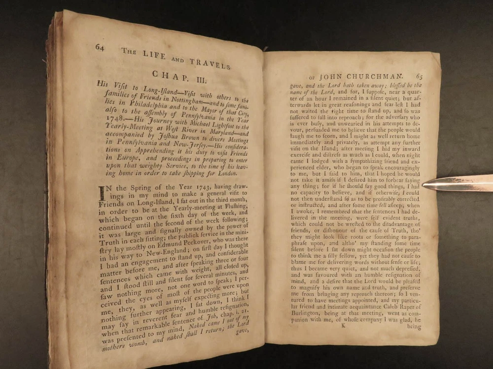1779 EARLY Americana INDIANS 1 ed John Churchman Quaker Revolutionary War John Churchman was an 18 th -century Quaker minister of whom every little is known today. However, while his published writings were few, one important known work was “ An Account of the Gospel Labours ”. This book was simply an autobiography of his life and ministry in and around Nottingham, Pennsylvania. The events of his ministry, however, are not the primary draw of this work – this work is a reliable, first-hand account of pre-Revolutionary America and includes his and other Quakers interactions with Native American Indians. Item number: #24435 Price: $499 CHURCHMAN, John An account of the Gospel labours, and Christian experiences of a faithful minister of Christ, John Churchman Philadelphia: Printed by Joseph Crukshank, 1779. 1 st edition Details : · Collation: Complete with all pages o vii, [1], 256 · Provenance: Handwritten – Jos. Hahn, 1846 · Language: English · Binding: Leather; tight and secure · Size: ~7.75in X 5in (19.5cm x 12.5cm) Our Guarantee: Very Fast. Very Safe. Free Shipping Worldwide. Customer satisfaction is our priority! Notify us with 7 days of receiving, and we will offer a full refund without reservation! 24435