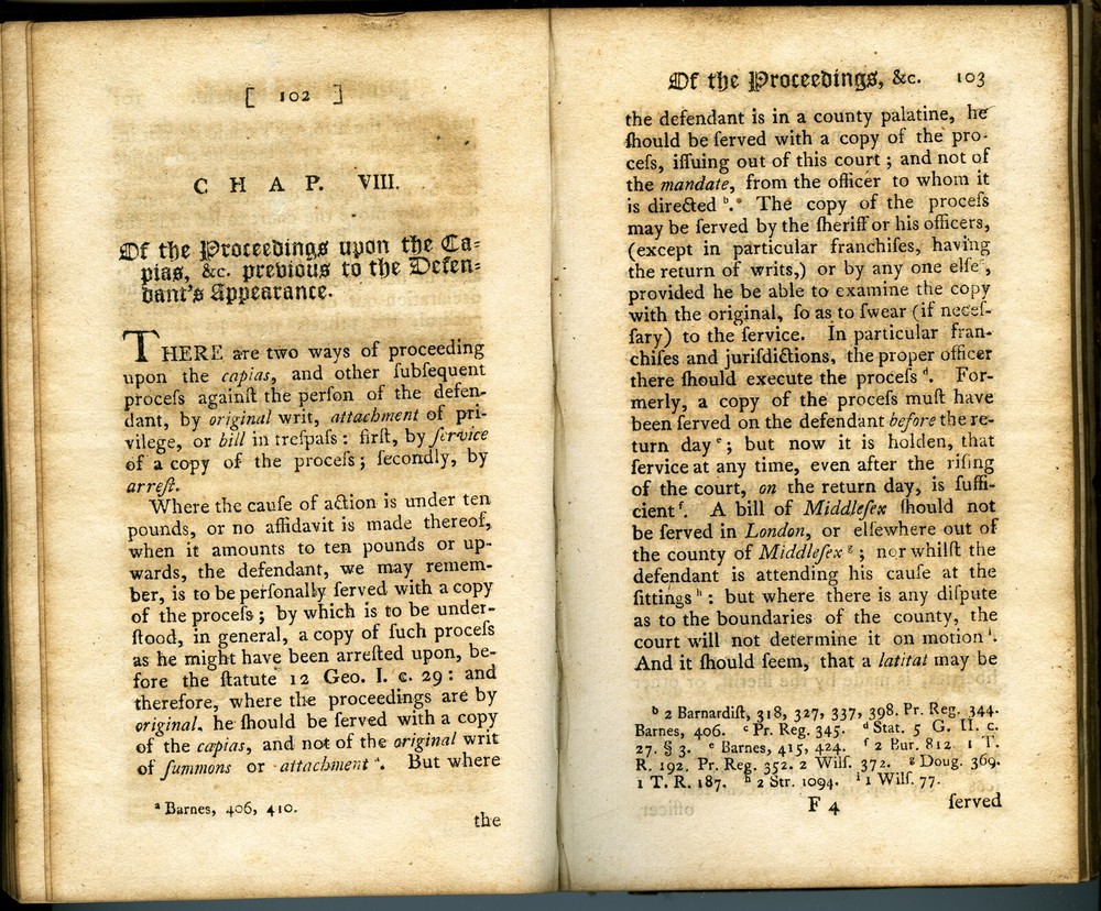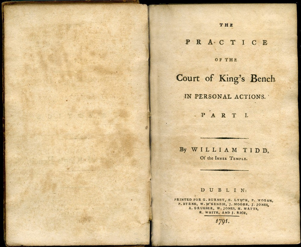 16th - 19th Century Fine and Rare Books, Maps, Manuscripts, and Atlases WILLIAM TIDD (1760-1847) The PRACTICE of the Court of King's Bench in Personal Actions (Part I) Dublin: 1791 Tidd, William. (1760-1847) The Practice of the Court of King's Bench in Personal Actions Printed for G. Burnet, etc., 1791. Securely bound in full calf leather. Internally, the leaves are crisp and clean with minimal foxing. - [4],xi,[1],259,[25]pages. - 12⁰. Originally published in Three Parts: The FIRST EDITION printing of (Part I) appeared in London (November 1790) and then Dublin in (1791). It received high acclaim and prestige by the Law Profession and primarily became the Sole Authority Resource within Common-Law Practice for many years. The Court of King's Bench, (Part I) contained the whole of the proceedings in personal actions, previous to the plea; together with all that was peculiar to the proceedings by and against attornies and other officers of the court; against peers of the realm, and members of the house of commons; upon the writ of habeas corpus; and against prisoners, in the actual custody of the marshal or sheriff. - (Part II) was not published until 1794. PAYMENT - CREDIT CARDS DISCOVER - MASTERCARD - VISA - AMERICAN EXPRESS SHIPPING - USPS / FEDEX