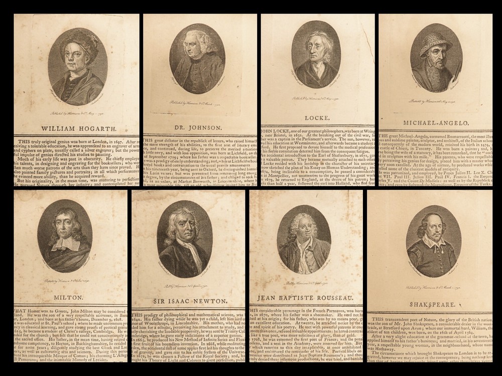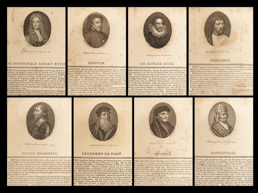 1794 FASCINATING 1 ed Biography 140 Portraits COLUMBUS Vinci Milton Swift Newton A rare 1794 printing of “ The Biographical Magazine ” – a collection of short biographies of some of the most eminent figures of the western world. This volume features names such as Francis Bacon, Christopher Columbus, Capt James Cook, Leonardo da Vinci, Francis Drake, John Milton, John Locke, William Shakespeare, Voltaire, Torquato Tasso, Jonathan Swift, and many others. See photo of the contents for full list. Note that each entry features a small portrait engraving. Item number: #22877 Price: $550 anonymous The biographical magazine : containing portraits & characters of eminent and ingenious persons, of every age & nation London: printed for Harrison & Co., 1794. Details : · Collation: Complete with all pages; o Unpaginated [140 plates of portraits] · Language: Latin · Binding: Leather; tight and secure · Size : ~9in X 5.75in (23cm x 14.5cm) Our Guarantee: Very Fast. Very Safe. Free Shipping Worldwide. Customer satisfaction is our priority! Notify us with 7 days of receiving, and we will offer a full refund without reservation! 22877