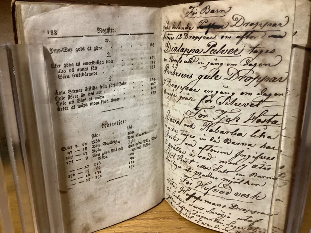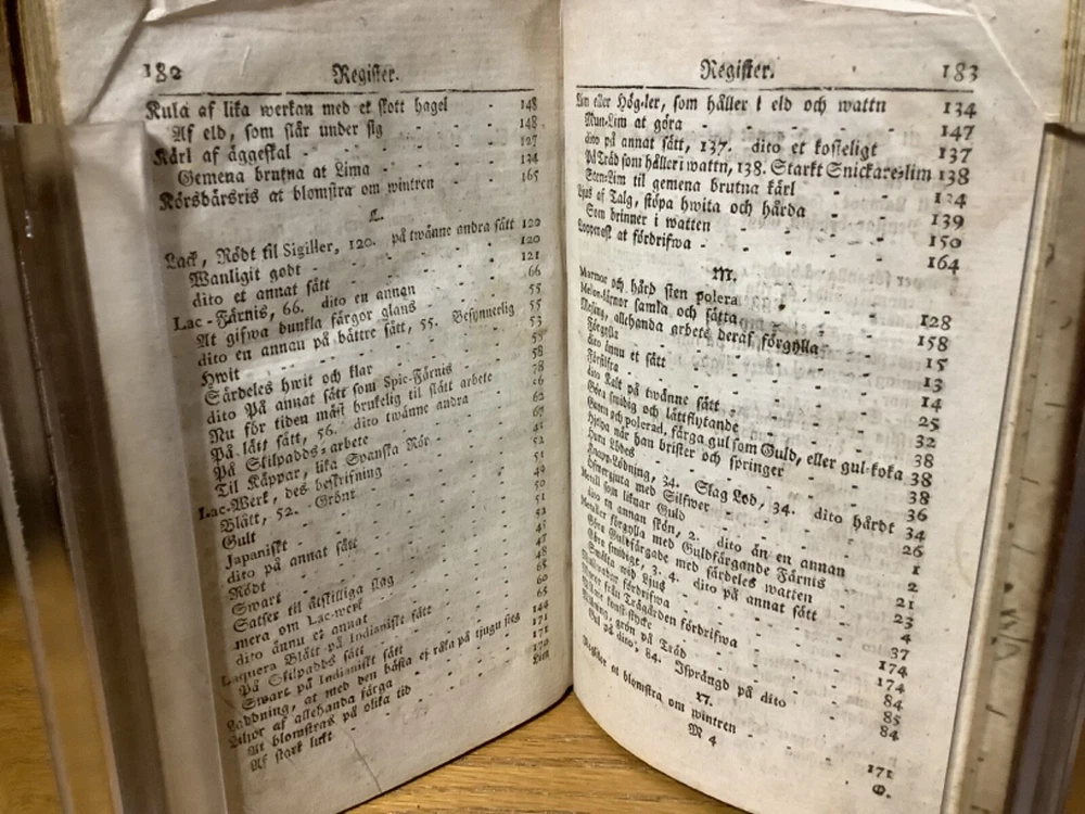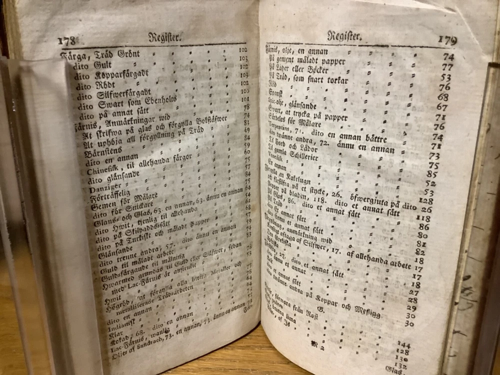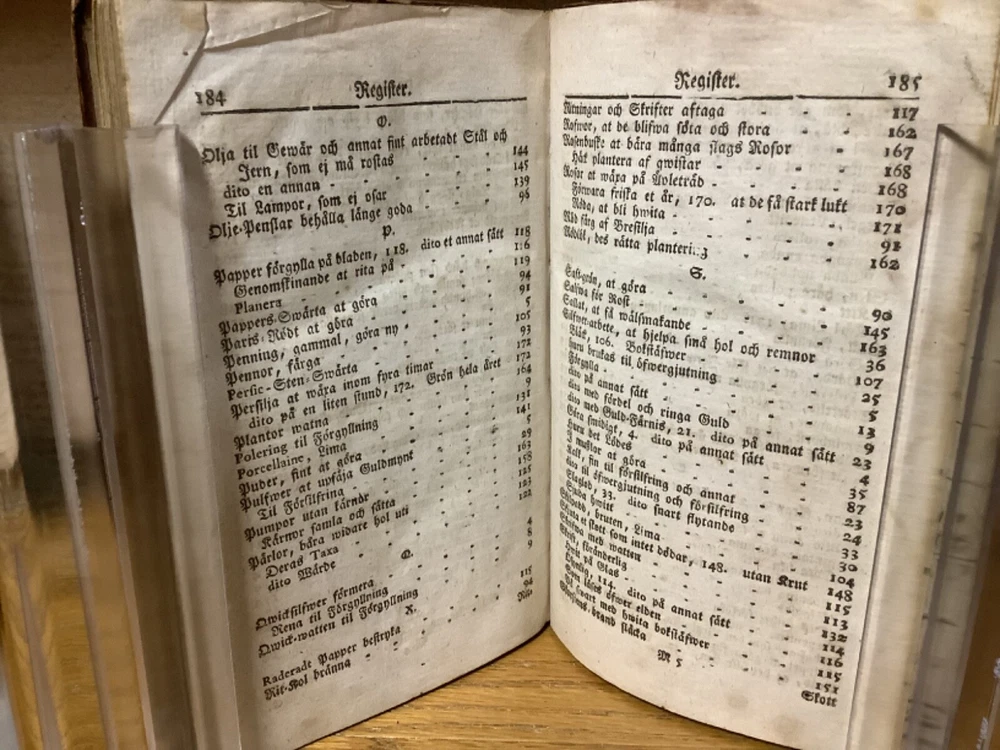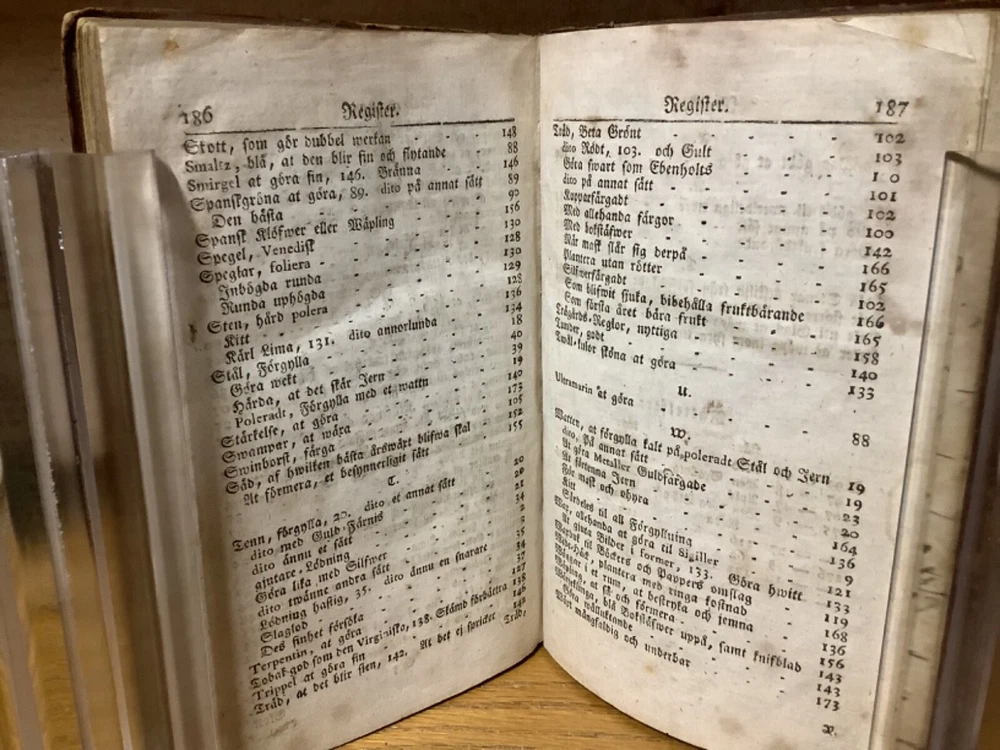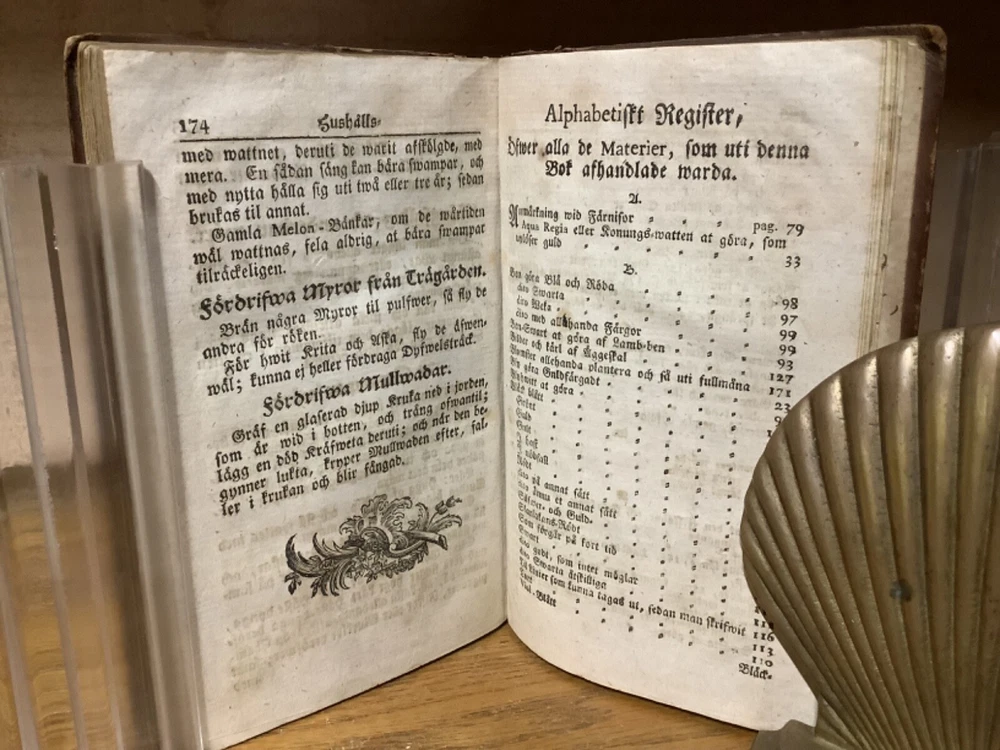 Et Litet Hushalls Magazin. Printed in Stockholm. 1798, 188 pp, 7” x 4.5”, 8vo, full leather hardcover. In good condition, with superficial rubbing and wear to exterior, primarily along edges and corners. Hinges remain in good condition and text block remains bound well. Heavily inscribed at front and rear, with some inscriptions and markings elsewhere within the text block, including on the title page. General age-related toning to pages, along with periodic foxing and wear. Please see photographs and ask any questions prior to purchasing. A very scarce piece in Swedish, designed to provide basic information on a variety of subjects, including metallurgy. Please see photographs for a complete list of covered subjects. COLN1798DIJB-0524-aj1688