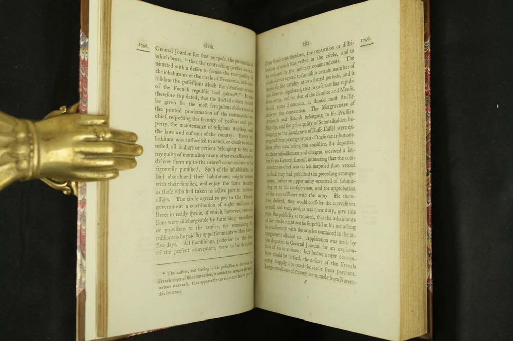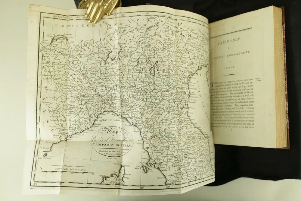 BOOK IS IN NEAR FINE CONDITION BEAUTIFULLY REBOUND IN 3/4 LEATHER WITH MARBLED BOARDS, SIX COMPARTMENTS TO SPINE WITH BRIGHT GILT DETAILS AND TITLE. BINDING AND HINGES ARE VERY GOOD, NEW END PAPERS AND PASTE DOWNS. NO LOOSE OR MISSING PAGES, PAGES ARE BRIGHT AND CLEAN, WITHOUT MARKS EXCEPT FOR PREVIOUS OWNER NAME TO TITLE PAGE. FOXING ISOLATED TO FIRST FEW LEAVES. BOOK MEASURES 8.5"x5.5". FIRST EDITION, 223 YEARS OLD. A NICE EXAMPLE. 1799 Campaign of General Buonaparte in Italy Large Map Leather First Edition 1799 Campaign of General Buonaparte in Italy Large Map Leather First Edition Description BOOK IS IN NEAR FINE CONDITION BEAUTIFULLY REBOUND IN 3/4 LEATHER WITH MARBLED BOARDS, SIX COMPARTMENTS TO SPINE WITH BRIGHT GILT DETAILS AND TITLE. BINDING AND HINGES ARE VERY GOOD, NEW END PAPERS AND PASTE DOWNS. NO LOOSE OR MISSING PAGES, PAGES ARE BRIGHT AND CLEAN, WITHOUT MARKS EXCEPT FOR PREVIOUS OWNER NAME TO TITLE PAGE. FOXING ISOLATED TO FIRST FEW LEAVES. BOOK MEASURES 8.5"x5.5". FIRST EDITION, 223 YEARS OLD. A NICE EXAMPLE. !!!CLICK HERE!!! Visit My eBay Store TO SEE ALL THE BOOKS WE HAVE FOR SALE!!! IF YOU LIKE WHAT YOU SEE THAN SAVE US TO YOUR FAVORITES BY CLICKING HERE. Add me to your Favorite Sellers RARE ANTIQUARIAN BOOKS CAN BE FRAGILE AND NEED TO BE HANDLED WITH CARE. About us: Reagan's Rare Books is a purveyor of Antiquarian books primarily from the 18th and 19th centuries. We love antique books! We search all over the country for the finest rare books, looking for those with beautiful bindings and in great condition so that we can offer you, the customer, a truly rare one of a kind collectible. Paypal Preferred. Please make payment arrangements within 48 hours of winning your auction. We reserve the right to re-list items not paid within 5 days. Shipping *To Insure That Your Package arrives without any Problems , Please Double Check to Make Sure That The Address You Have Selected in eBay Is Correct. All books are carefully bubble wrapped and packed in a box with adequate packing peanuts to prevent any damage during shipment. All books are shipped with delivery confirmation and tracking. Books over $75.00 are automatically insured. RETURNS 100% Satisfaction Guaranteed. Returns accepted for any reason within 30 days of receipt. PLEASE CHECK MY OTHER LISTINGS. POSTING NEW RARE BOOKS DAILY/WEEKLY. Pictures sell! Auctiva offers Free Image Hosting and Editing. 300+ Listing Templates! Auctiva gets you noticed! The complete eBay Selling Solution. Track Page Views With Auctiva's FREE Counter