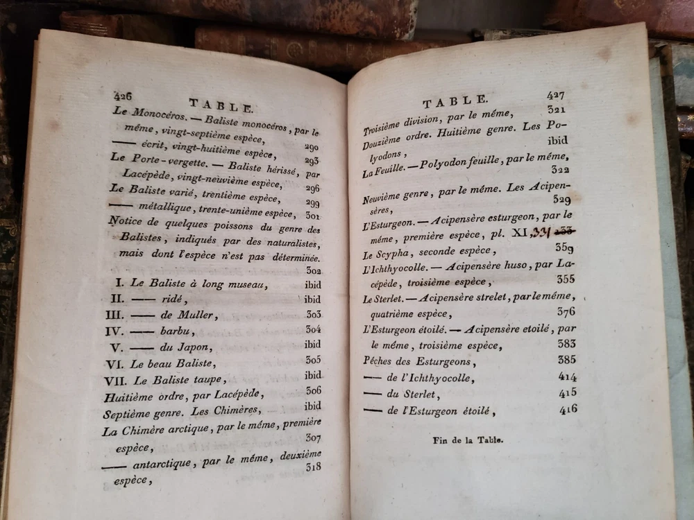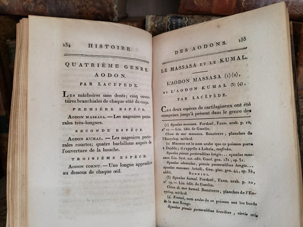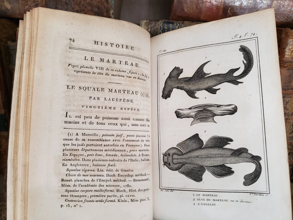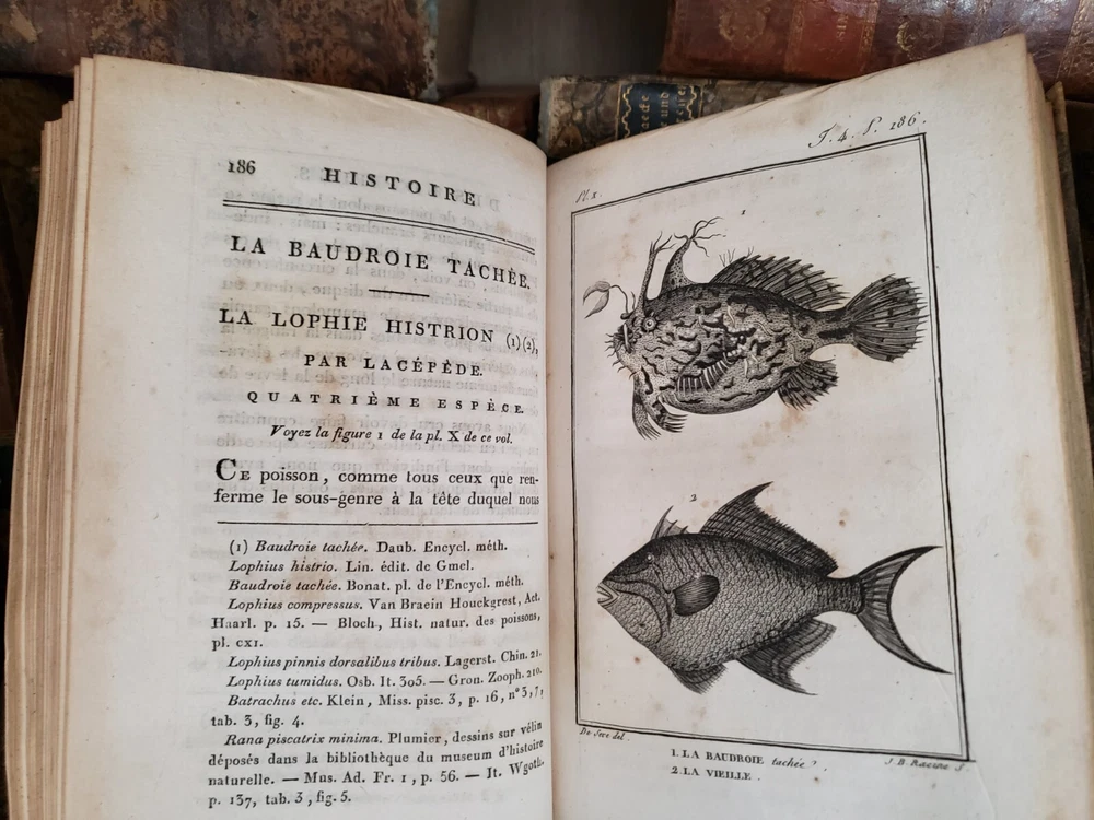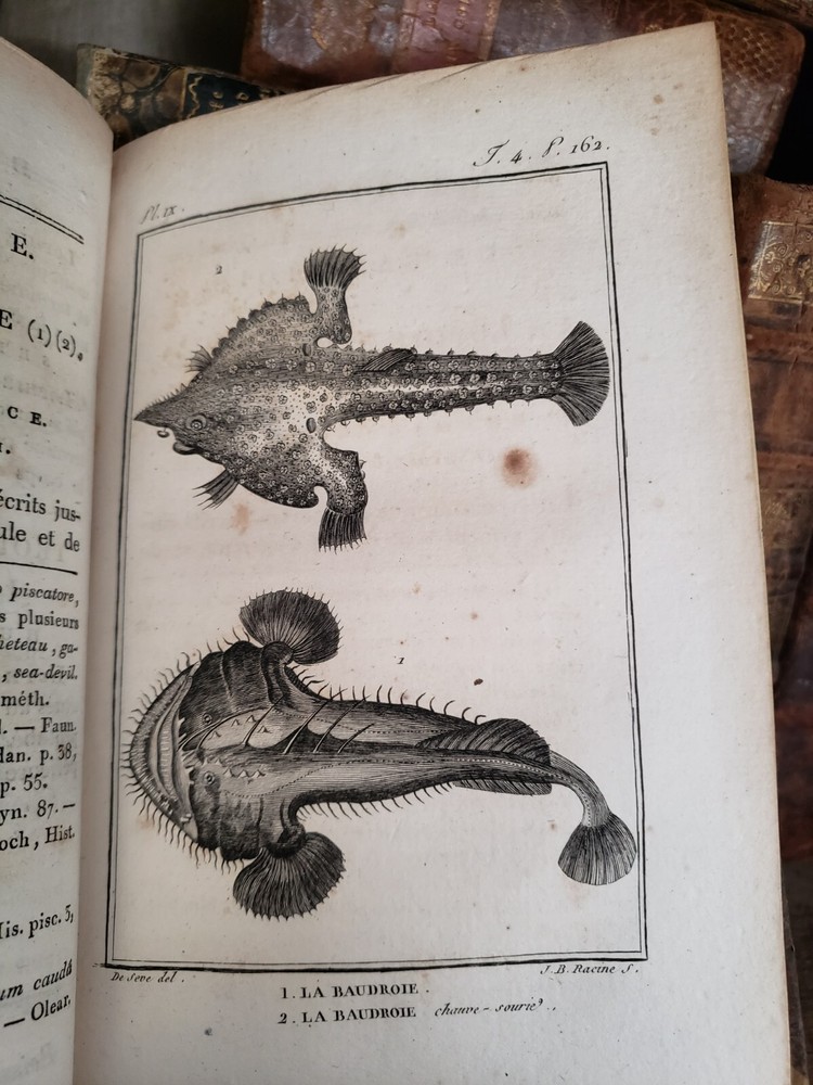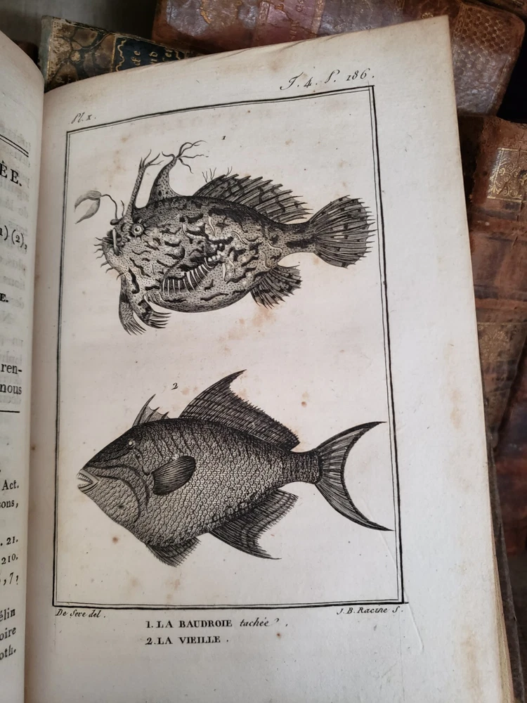 " NATURAL HISTORY OF FISHES BY BUFFON " The book is the fourth volume in a distinguished series focused on the natural history of fish, authored by Charles Nicolas Sigisbert Sonnini de Manoncourt and published in 1802 (Year X of the French Republican Calendar). This installment continues Sonnini's extensive work, delving deeper into the classification, description, and illustration of fish species, building upon the foundational knowledge laid out in the preceding volumes. The work is emblematic of the era's scientific fervor for cataloging and understanding the diversity of the natural world through detailed empirical study and systematic organization. Sonnini's contributions through this series are significant for their meticulous attention to the morphology, habitat, and behavior of various fish species, enhanced by precise and informative illustrations. This fourth volume not only enriches the scientific community's understanding of ichthyology but also serves as a critical resource for naturalists, researchers, and enthusiasts interested in the early 19th-century perspectives on fish diversity. Sonnini's efforts are a testament to the Enlightenment's drive towards comprehensive and accessible natural history, reflecting a deepening human curiosity about the natural world and its myriad inhabitants. Published: 1802 Pages: 426 Size: 8" x 5" x 1.2" See other $0.99 items