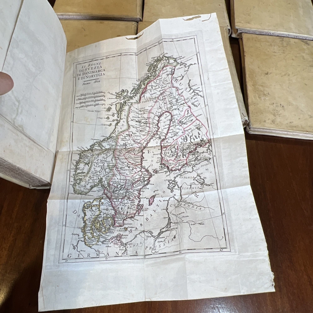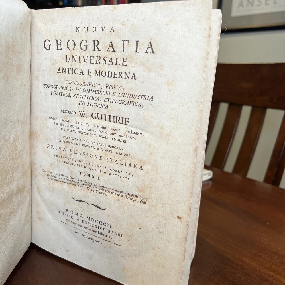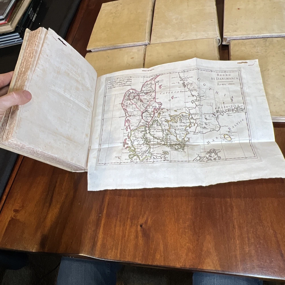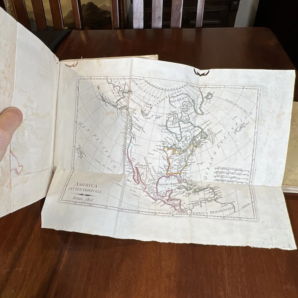 COMPLETE 9 Volume Atlas Set by W. Guthrie -Bound in original calfskin leather -Every volume with maps attached -One Full Western Hemisphere Map -One Full Eastern Hemisphere Map -Maps of all continents with the exception of Antarctica. Fantastic map of the United States/North America. Please see photos for bookworm marks in some of the books. Happy to report that none of the bookworm marks go through the map image areas. All image areas of the maps are very clean and bright. All maps attached. No separated pages. The feel of these books is absolutely sensational. The calfskin leather in hand is sublime. -Volumes are 10 inches tall and 7 1/2 inches across -Please feel free to message me with any questions or any requests for additional photos. I am very happy to send them and will respond to your question without 12 hours or less