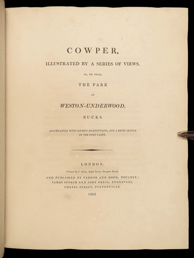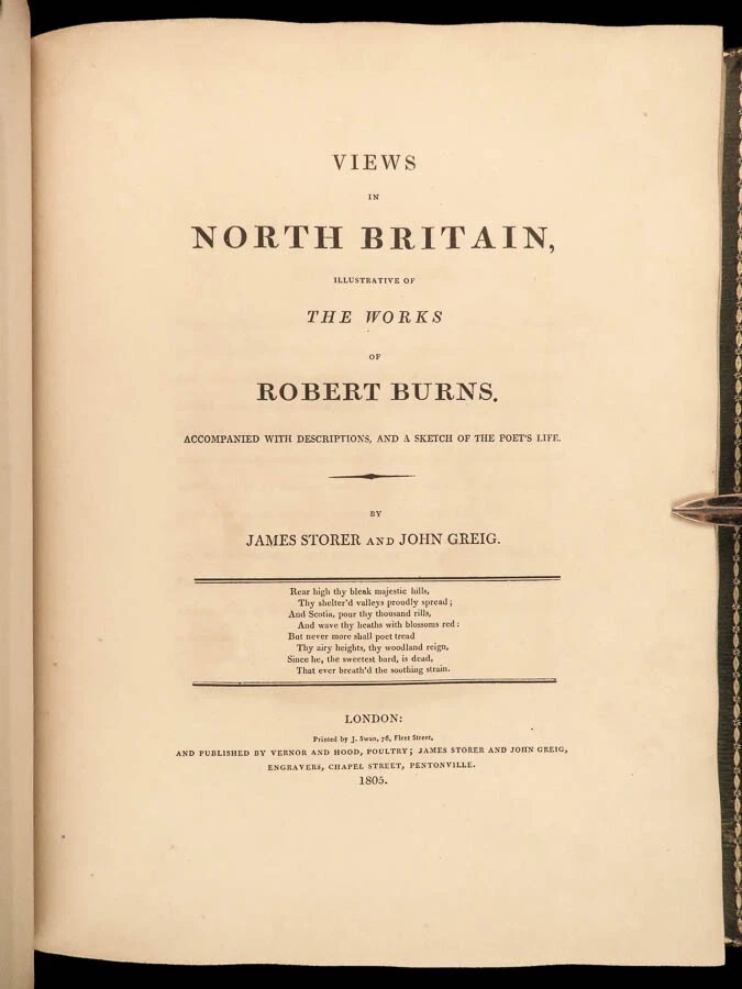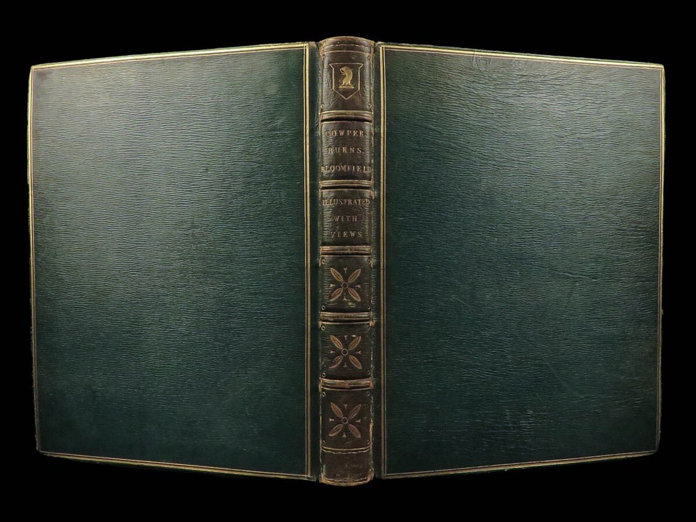1803 BEAUTIFUL 1 ed Lives of Robert Burns William Cowper & Bloomfield Illustrated “Variety's the very spice of life, that gives it all its flavor.” ― William Cowper A rare collection of early 19 th -century memoirs on the lives of William Cowper, Robert Burns, and Robert Bloomfield. Published in 1803, this book contains interesting series of illustrations depicting locations from around Great Britain highlighting the lives of these literary giants. Note the impressive green Moroccan leather of this tome. Item number: #23846 Price: $499 various [Cowper, Burns, and Bloomfield] London: J. Swan, by Vernor and Hood, 1803. Details : · Collation: Complete with all pages; 3 works in 1 o Cowper – 51, [1] § 13 plates (including engraved title page) o Burns – 61, [1] § 20 plates (including engraved title page) o Bloomfield – [2], 59, [1] § 15 plates (including engraved title page) o Numerous full-page engravings · Language: English · Binding: Leather; tight and secure o Green Moroccan leather · Size : ~11in X 8.5in (27.5cm x 21.5cm) Our Guarantee: Very Fast. Very Safe. Free Shipping Worldwide. Customer satisfaction is our priority! Notify us with 7 days of receiving, and we will offer a full refund without reservation! 23846