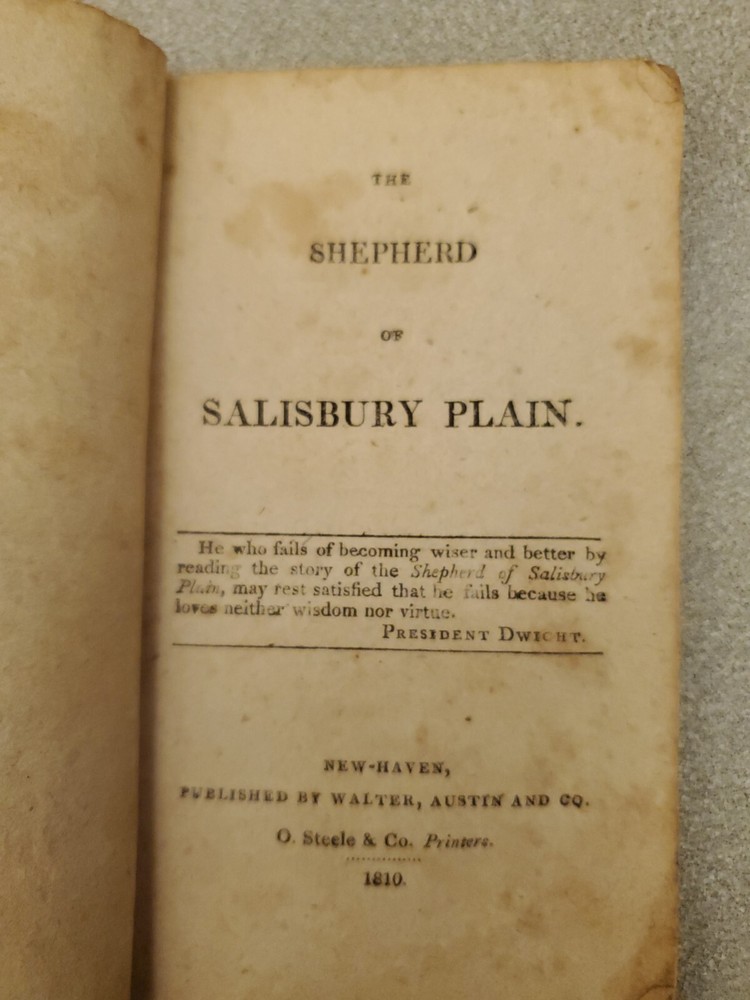 1810 Intact. 1810 The Shepard Of Salisbury Plain. President Dwight. Over 200 Years Old.Blank cover 6in x 3.5in February 26 1810 Over 200 years old see photos New-Haven Published by Walter, Austin and Co. Steele and Co, printers 1810