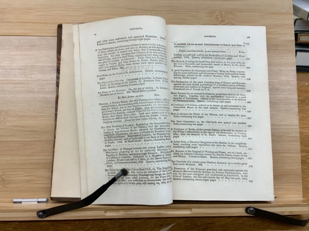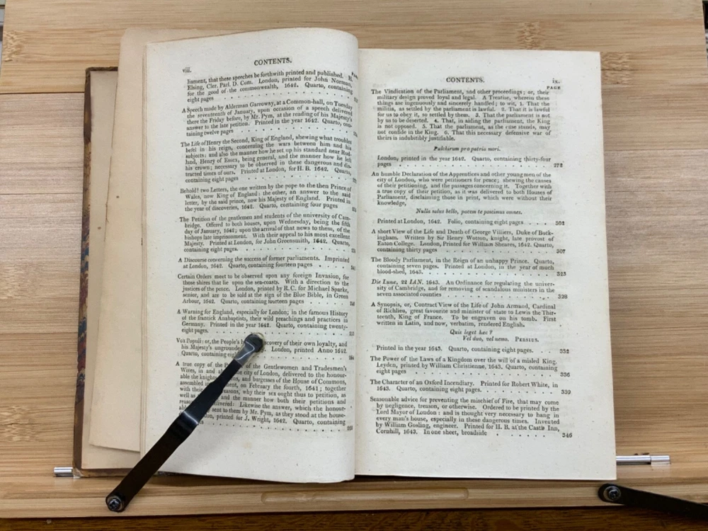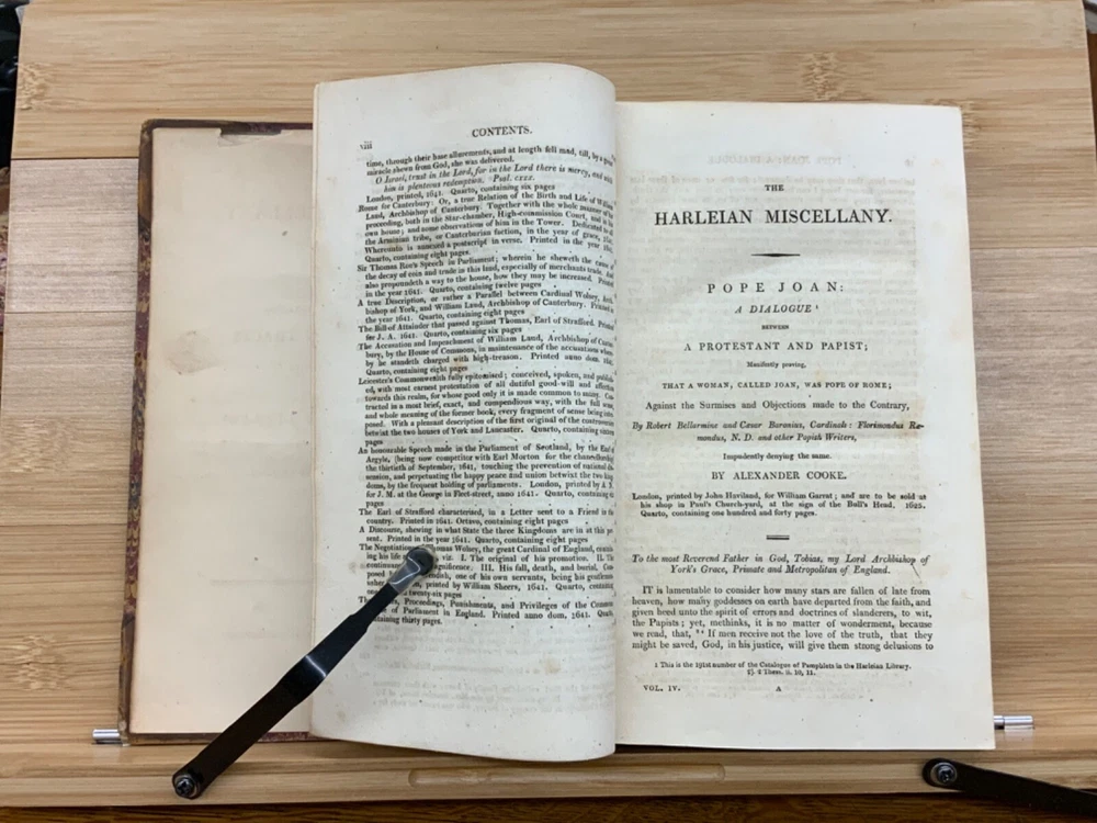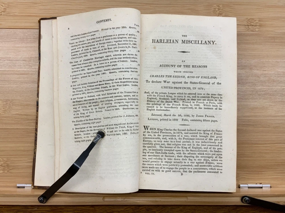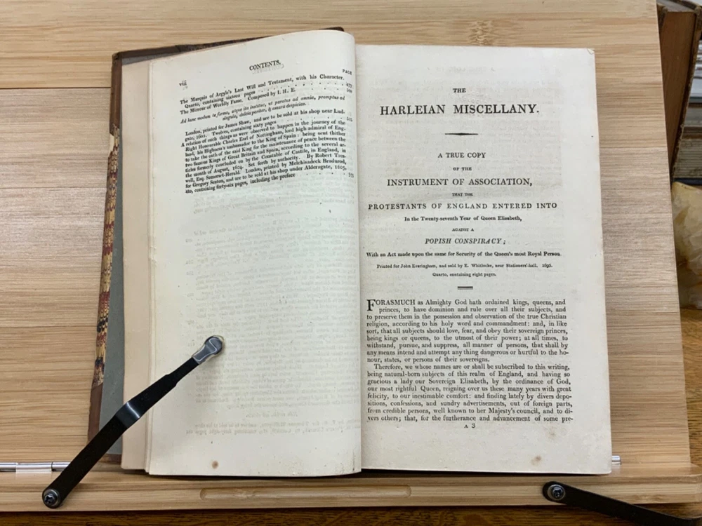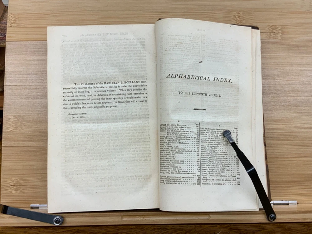 The Harleian Miscellany; or, a Collection of Scarce, Curious, and Entertaining Pamphlets and Tracts, As Well in Manuscript as in Print, Found in the Late Earl of Oxford's Library, Interspersed with Historical, Political, and Critical Notes. Complete in XXII Volumes. I: 1808, 547 pp; II: 1809, 566 pp; III: 1809, 561 pp; IV: 1809, 571 pp; V: 1810, 582 pp; VI: 1810, 552 pp; VII: 1810, 608 pp; VIII: 1810, 574 pp; IX: 1810, 561 pp; X: 1810, 568 pp; XI: 1810, 557 pp; XII: 1811, 284+ pp. London: Printed for Robert Dutton. Ex-library: Trinity Church Library & Library of Episcopal Theological School of Cambridge. Half-leather marbled boards, 8.5 x 5.25", 8vos. In poor condition. As is. Front boards detached on Vols IV, V, VIII, & IX. Rear boards detached on Vols IV & V. All boards are moderately scuffed at edges & leather corners. Marbling exhibits general soiling on all volumes. Vol. I exhibits red & brown repair tape over leather spine, reinforcing both front and rear hinges. Vol. I's front end-page, fly-leaf, and p. 547 detached from binding. Leather spines completely lacking on Vols. IV & V. Top half of Vol. XI's spine detached (but included with purchase for future repair). White ex-library hand-writing on all tails of spines (except Vols. IV & V). Heads and tails of all other spines are chipped & rubbed, especially Vol. VIII's head. Ex-library plates on all front paste-downs. Ex-library marginalia on all title pages (verso). Pages are brittle & some are chipped at fore-edges. If boards are still attached, gutters are split. Bindings are overall intact, hinges either detached or very fragile. Perfect candidate for restoration. A complete set. Please see photos. The Harleian Miscellany is a collection of material from the library of the Earl of Oxford and Earl Mortimer collated and edited by Samuel Johnson and William Oldys between 1744 and 1753 on behalf of the publisher Thomas Osborne. The "late Earl of Oxford" whose library was the source of the texts could refer either to Robert Harley, 1st Earl of Oxford and Earl Mortimer (1661-1724) or to his son, Edward Harley, 2nd Earl of Oxford and Earl Mortimer (1689-1741). Both father and son were bibliophiles and contributed greatly to the collection. Plethora of interesting topics, from religion to coffee production. FORN-MSB-0224-0764-HK1177