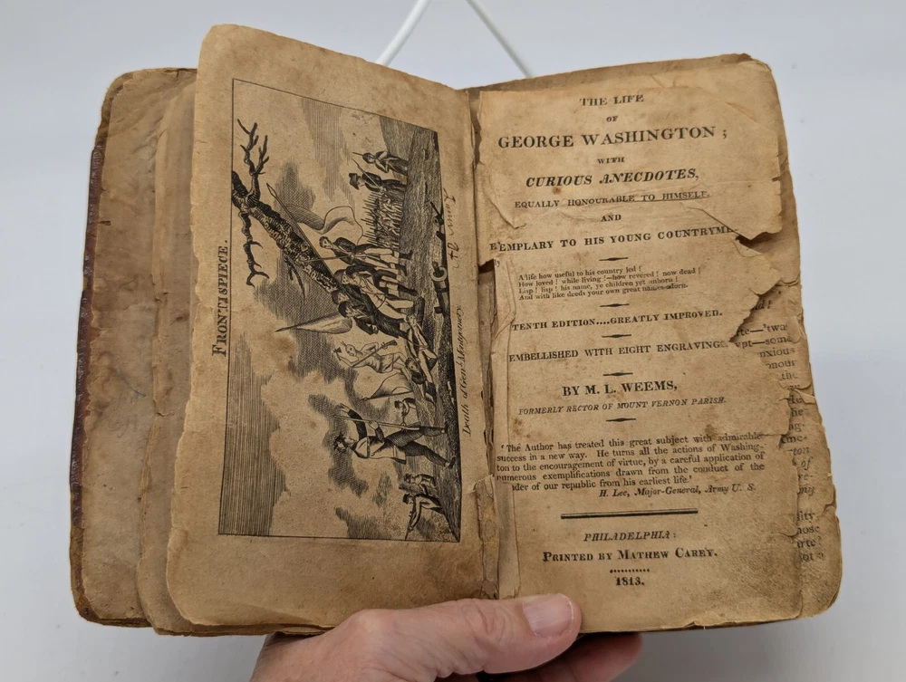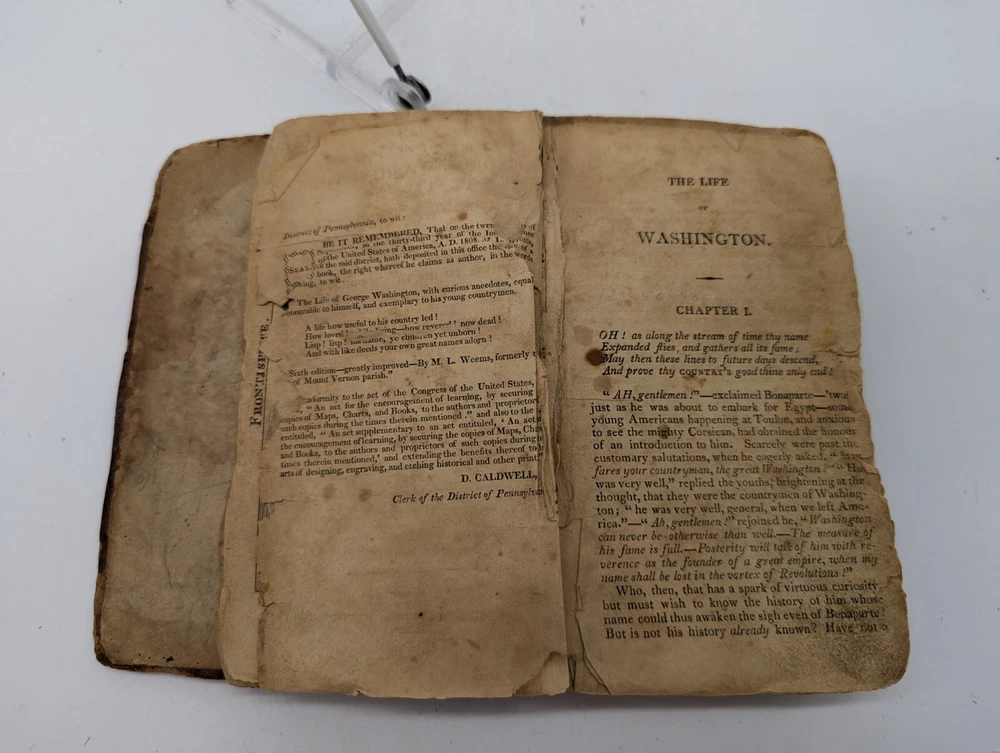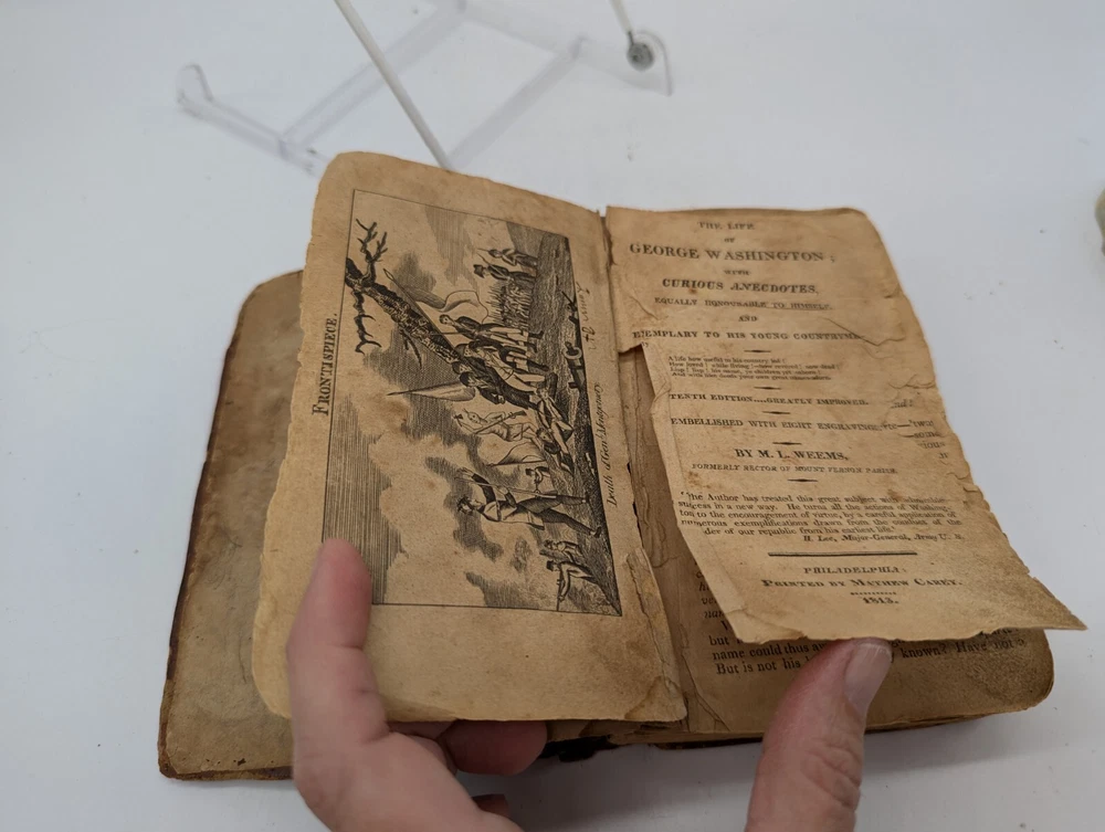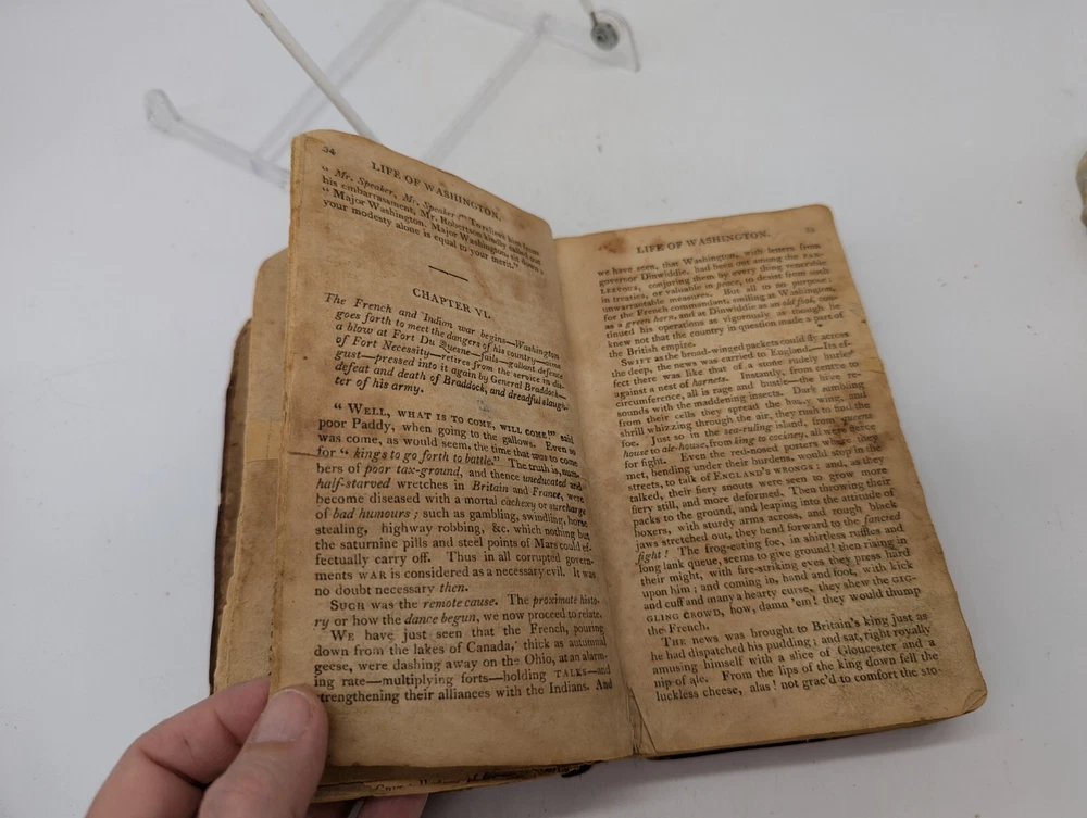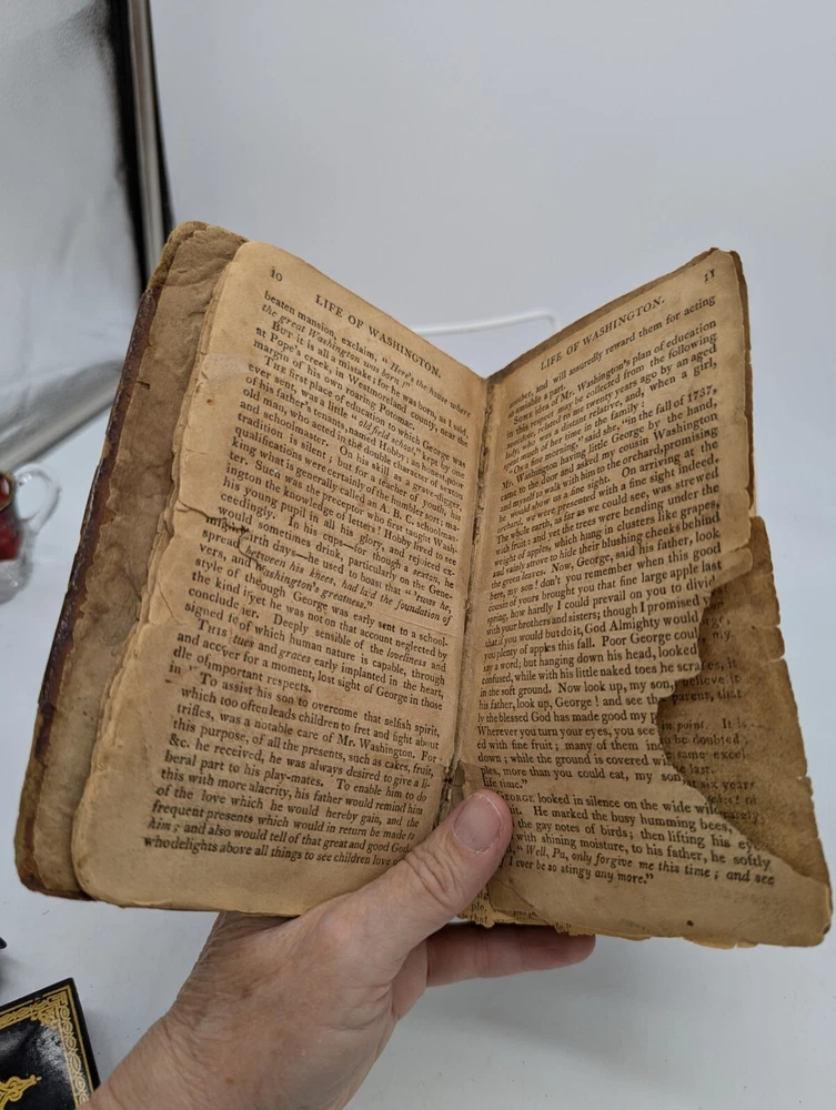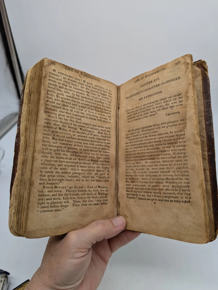 This antique book from 1813, The Life of George Washington, with curious anecdotes equally honourable to himself and exemplary to his own countrymen, 10th edition. Written by Weems and bound in leather, this book is a valuable addition to any collection of vintage books. The English language and originality of this piece make it a must-have for collectors of rare and unique items. The book is in a fragile state, but this adds to its charm and character. The binding is made of leather and the pages are filled with fascinating information about the life of George Washington. This book is perfect for anyone interested in vintage books or George Washington. Condition is pre-owned, very old and fragile, tears binding separation, brown pages, water damage, fading, partial map in the front. Please review all photos and description before purchase as there are no returns. Ships with USPS Ground Advantage.