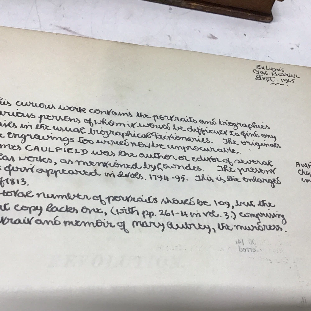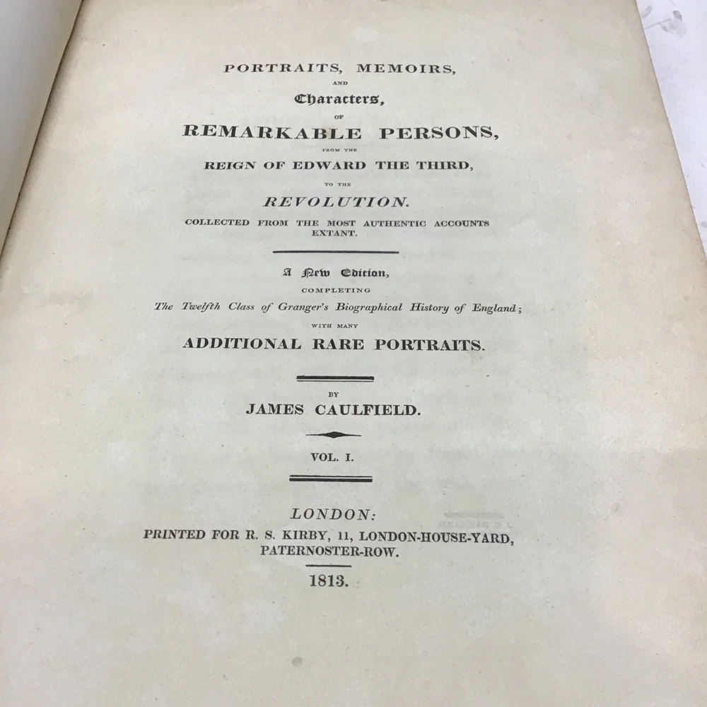 This 1813 leather bound books titled "Portraits, Memoirs, and Characters, Of Remarkable Persons" is a rare find for any history enthusiast. The book, published by R. S. Kirby in London, contains original illustrations and a detailed biography of James Caulfield, a prominent figure in London's history. The book is in its original form and has not been printed, making it a valuable addition to any collection. It is written in English and has no known illustrator. The book is categorized under "Books & Magazines" and "Antiquarian & Collectible". Get your hands on this piece of history today! Portraits, memoirs, and characters, of remarkable persons, from the reign of Edward the third, to the revolution. Collected from the most authentic accounts extant. A new edition, completing the twelfth class of Granger's Biographical History of England; with many additional rare portraits Caulfield, James Published by printed for R. S. Kirby, 11, London-House-Yard, Paternoster-Row, London, 1813 1813 Leather 3 Volumes Portraits, Memoirs, and Characters, Of Remarkable Persons Size 9” x 10.7/8” with 108 portraits. Please see hand written note in book that one portrait is missing. Books have wear and foxing as shown in pictures being over 210+ years old. Volume 3 has separation on back cover but is intact and stiff. Keep in mind the shipping price also covers handling fees, packaging materials & time, not just postage. See our eBay store for 1000’s of other items. B12F