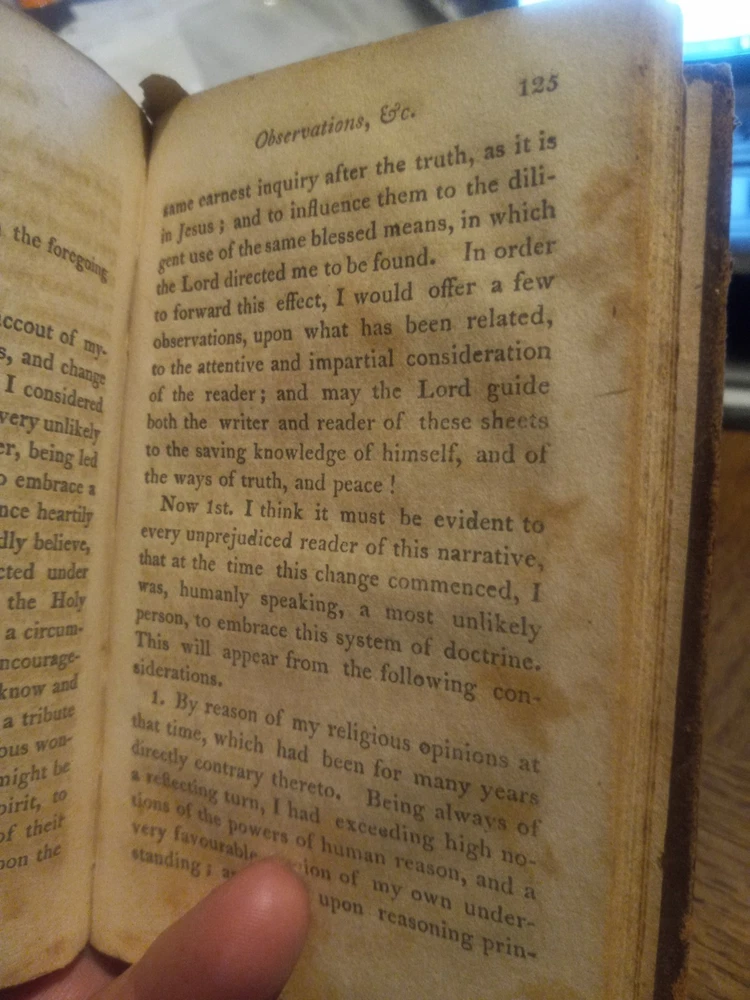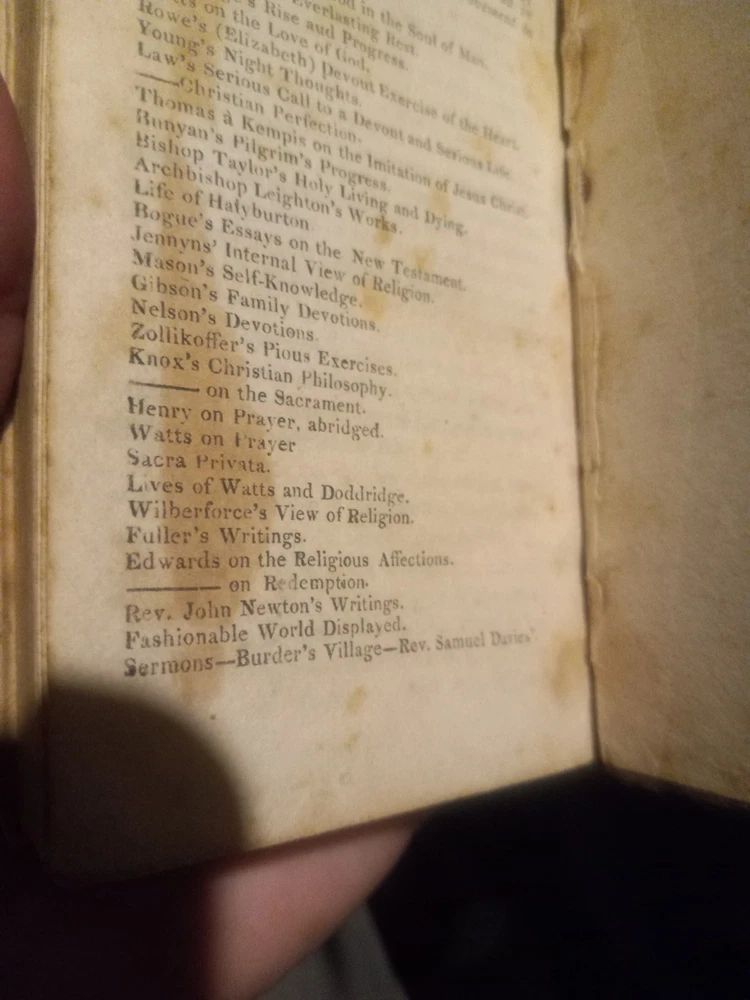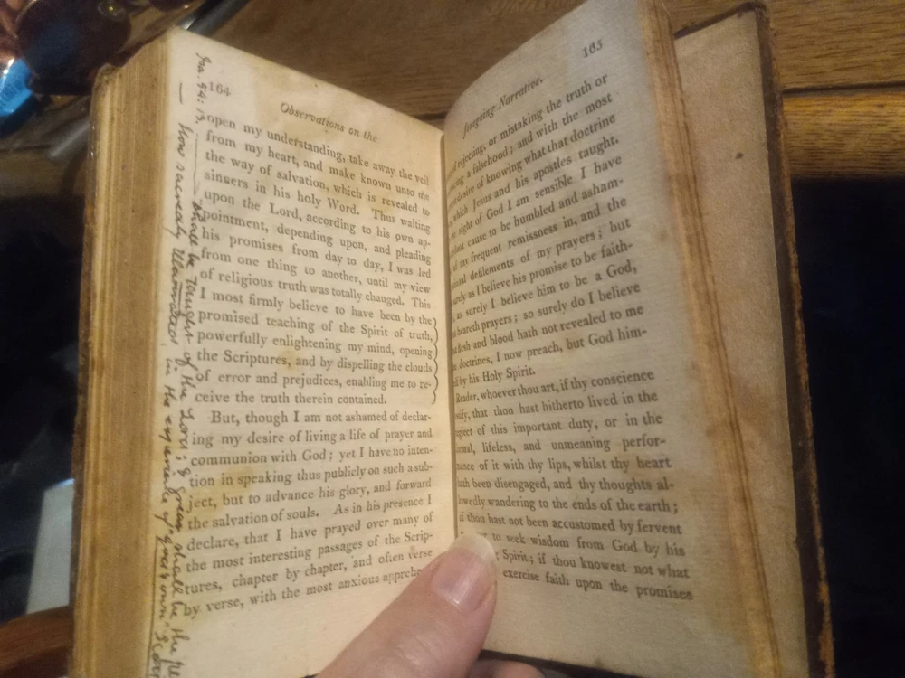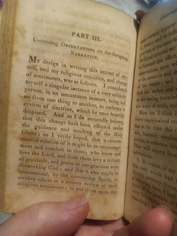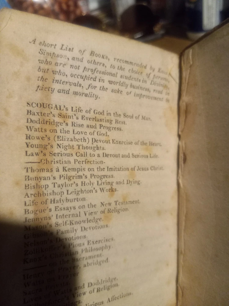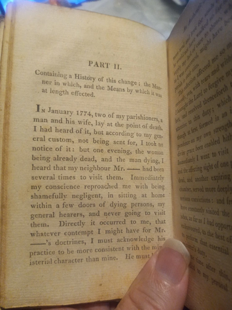 UP FOR SALE TODAY WE HAVE "THE FORCE OF TRUTH: AN AUTHENTIC NARRATIVE. -- BY THOMAS SCOTT, MORNING PREACHER AT THE LOCK CHAPEL, LONDON. -- BOSTON: PUBLISHED BY J. BELCHER, S. T. ARMSTRONG, AND SOLD AT THE PRINCIPAL BOOKSTORES IN THE UNION. - 1814."(1814 PRINTING OF THIS BOOK FIRST PUBLISHED IN ENGLAND ABOUT 1780, BOUND IN A SOMEWHAT DAMAGED BUT STILL ATTRACTIVE FULL LEATHER BINDING!!)-- Here we have a very good for its age copy of this two hundred and eleven year old pocket sized book, which describes the spiritual journey taken by its author, Thomas Scott, which brings him to a more evangelical view of Christianity. The bottom quarter of the front hinge of this book looks like it might have been chewed on by bugs or a rodent, but otherwise the gilt embossed and decorated full leather binding still looks quite nice. This seems to be the earliest edition of this book currently available for sale anywhere.-- THIS IS A SMALL FULL LEATHERBOUND BOOK OF 185 PAGES PLUS A PAGE OF PUBLISHER'S ADVERTISING, WHICH MEASURES ABOUT 6 BY 3 AND A HALF INCHES IN DIAMETER--I AM PUTTING THIS UP FOR SALE TODAY AT A REASONABLE BUY-IT-NOW PRICE WITH FREE SHIPPING,OR FEEL FREE TO SUBMIT YOUR BEST OFFER--GARY FROM HAUNTED MANSION RELIX--