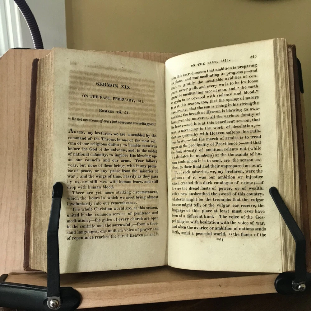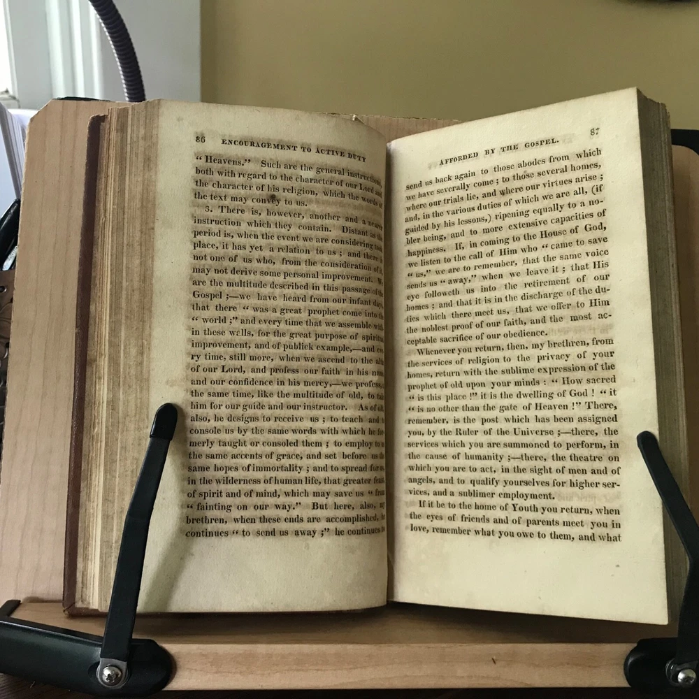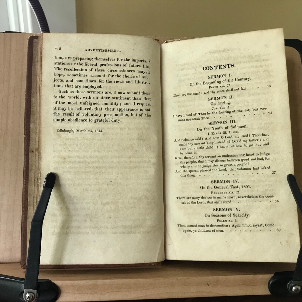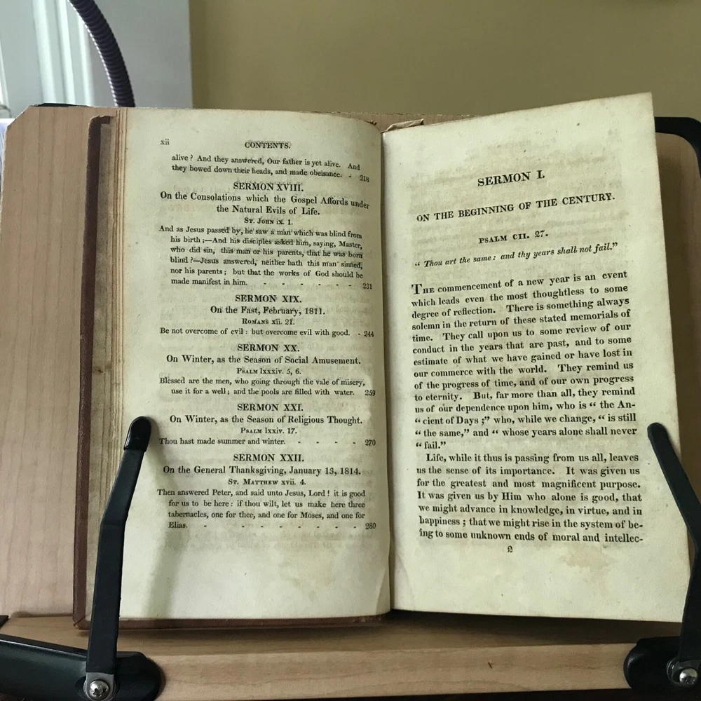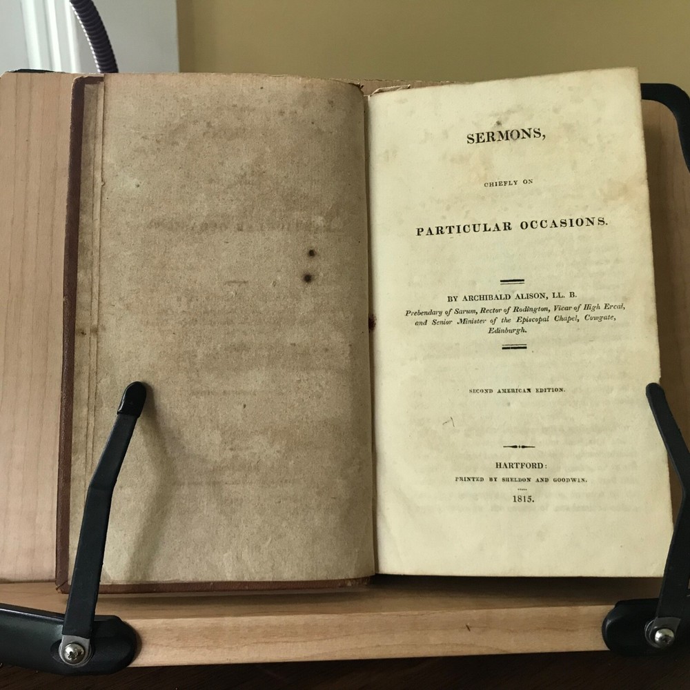 Sermons, Chiefly on Particular Occasions by Archibald Alison, Volume One Only, Second American Edition, Printed by Sheldon and Goodwin, Hartford, 1815, 292 pp, full leather, 7.5 x 4.5”, 12mo. In good condition. Nicely bound! Leather remains soft and rich in color. Light wear to extremities with minor scuffing to edges and corners. End bands slightly chipped/crushed. Gilt work on spine remains bright and clean. Ownership of Ann Newman in old hand on front fly leaf. Interior lightly toned, free of known markings. A few instances of minor foxing/age stain. Binding tight and intact. Sound. Please see photos. Quite scarce. Early Hartford imprint. COLR1815ABCO-FORN-TUB0004 02/24HK