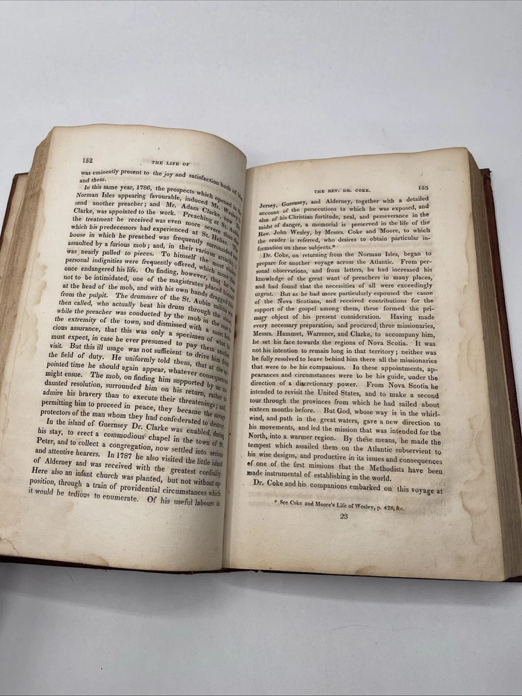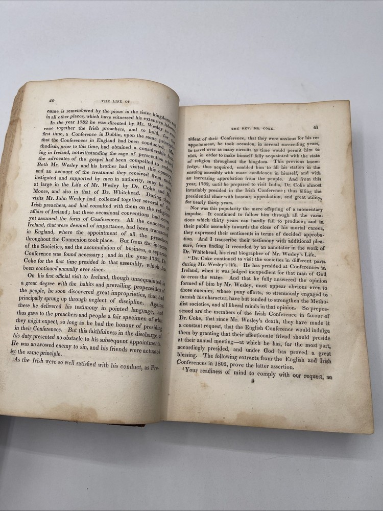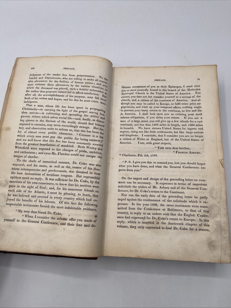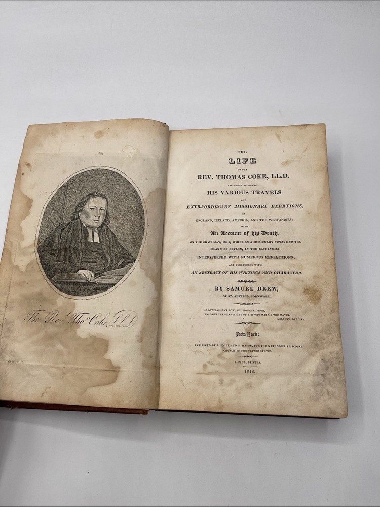 Delve into the historical narrative of "The Life of The Rev. Thomas Coke" by Samuel Drew, published in 1818 by J. Soule and T. Mason. This first edition is a treasure for collectors and enthusiasts of religious biographies, presented in its original full leather binding that exudes a classic charm. Crafted in the United States, this work is not only a testament to early 19th-century Christian literature but also an example of fine antiquarian book craftsmanship. The book is in English and offers insight into the life and times of the revered Rev. Thomas Coke, making it an intriguing find for admirers of both historical theology and literary collectibles. 391 pages good condition with a few pages with water stains / nothing sticking / binding is super tight