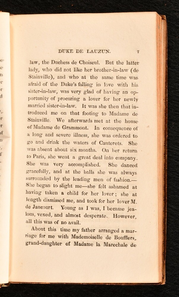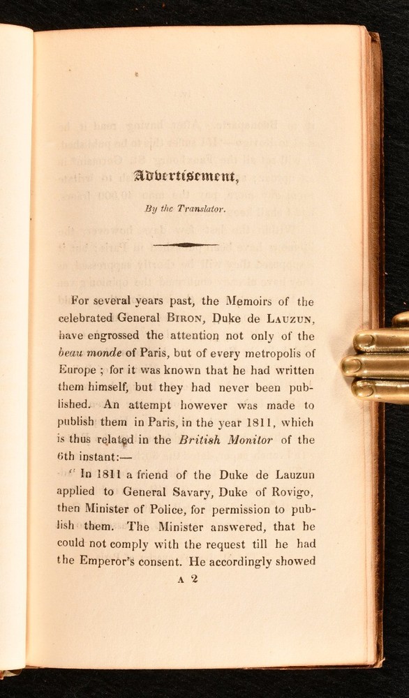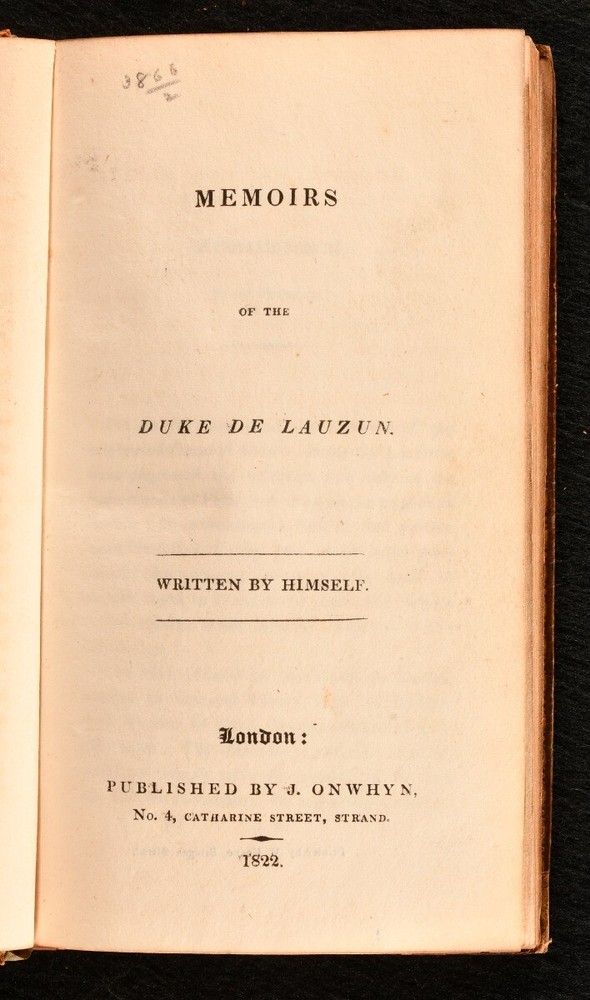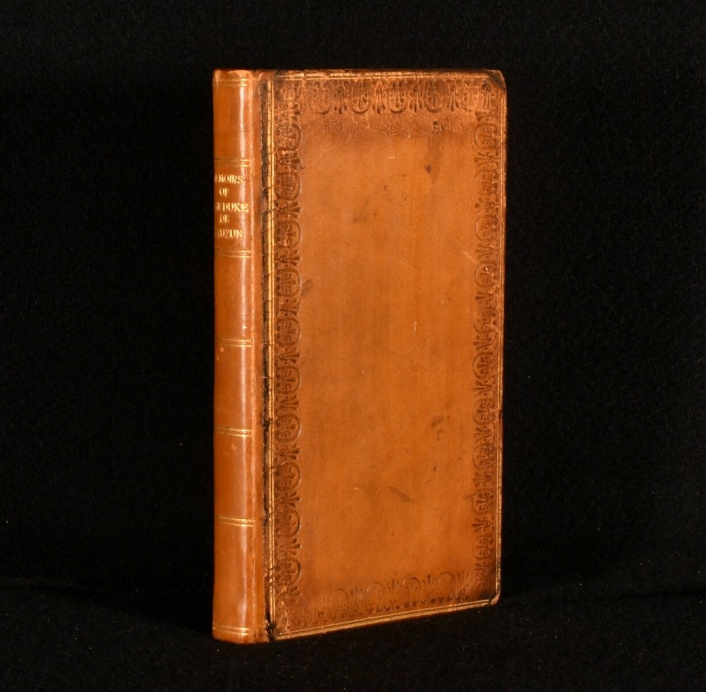 Click here to see our other books! Memoirs of the Duke de Lauzun Armand Louis de Gontaut 1822 John Onwhyn : London 7" by 4" ix, 211pp SUMMARY A very smart copy of this scarce English translation of the memoirs of the Duke of Lauzun, in full calf binding. Early Edition,Leather Binding,Rebound,Very Scarce Overall Condition: Very Good This book weighs 0.5 KG when packed UK Postage: £ 3.99 US Postage: £ 15.99 EU Postage : £ 13.99 European Postage: £ 14.99 Asia Postage: £ 18.99 Worldwide Postage: £ 19.99 DESCRIPTION Armand Louis de Gontaut, duc de Lauzun, later duc de Biron, and usually referred to by historians of the French Revolution simply as Biron (13 April 1747 – 31 December 1793) was a French soldier and politician, known for the part he played in the American War of Independence and the French Revolutionary Wars. In 1773, he was Grand second warden of Grand Orient de France. This is an English translation of his memoirs, the second edition, published in 1822. It contains an introduction from the translator. CONDITION In full calf binding. Externally, very smart with slight rubbing to extremities. Internally, front hinge slightly tender, but firm. Generally firmly bound. Front free-endpaper slightly loose but firm. Slight offsetting to the rear free-endpapers, but otherwise pages bright and clean. Overall Condition: Very Good GLOSSARY OF TERMS Overall Condition (Dustwrapper condition rating is shown after that for the book itself, where a dustwrapper is present) Fine - Very well preserved copy showing very little wear Very Good Indeed - Only one or two minor faults, really a very attractive copy Very Good - Quite a wide term meaning no major faults but probably several smaller ones often expected given the age of the book, but still a respectable copy Good - Meaning not very good. Some more serious faults as will be described in the condition report under 'condition' Good Only - Meaning one or more faults that could really do with repair Fair - As with good only above but with other faults leaving a compromised copy even after repair Poor - Really bad and possibly seriously incomplete. We only sell books in this condition where their rarity or value makes them attractive none the less. Major defects will be described. GUARANTEE We offer a full money back guarantee on our descriptions. Please ask for details and conditions. We prefer PAYPAL. If you pay via PAYPAL we will post the item off the same or the next working day with the postage you have selected. Please note we cannot accept USD cheques
