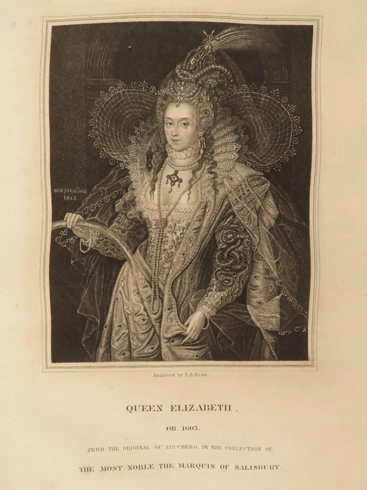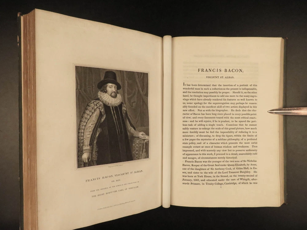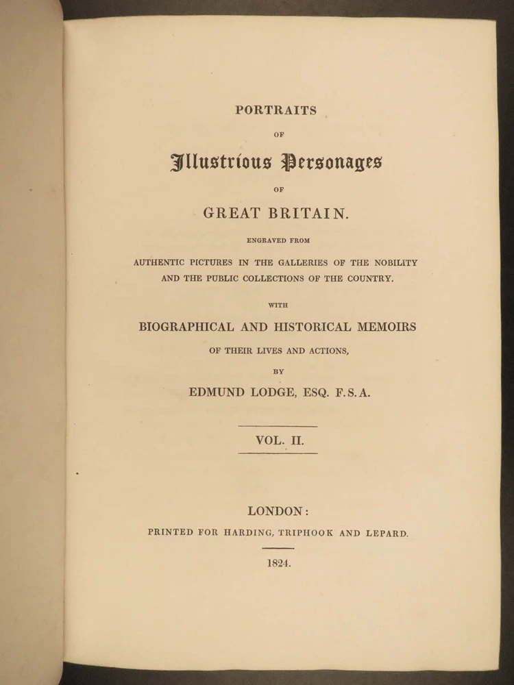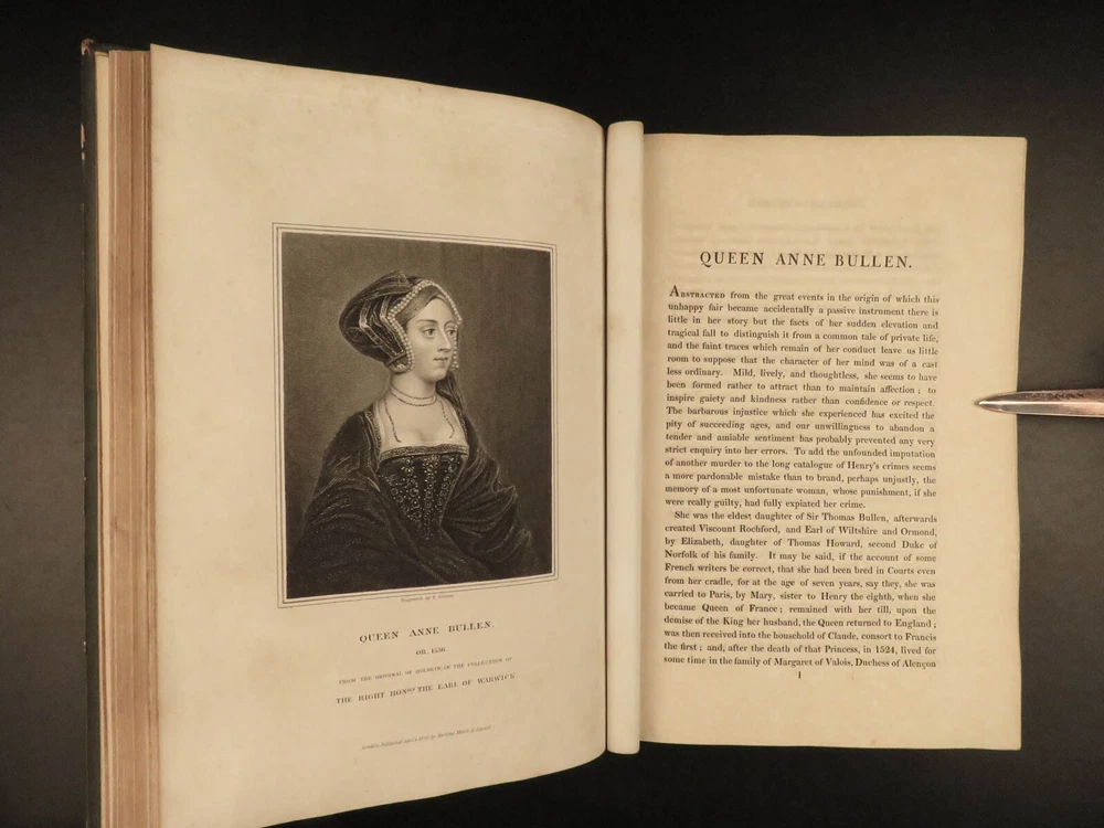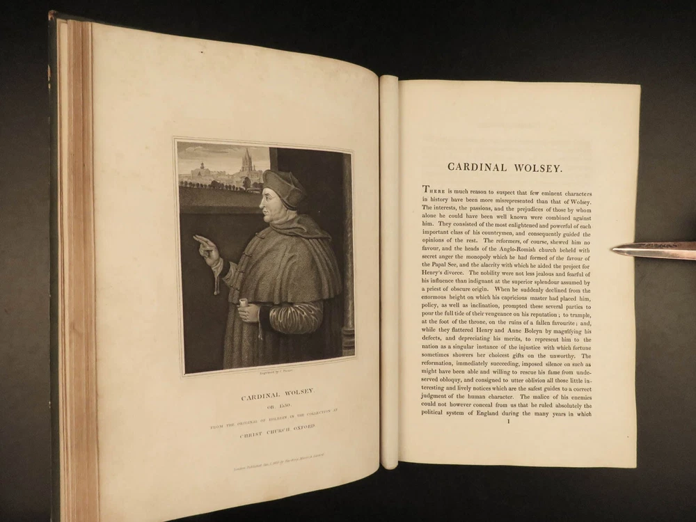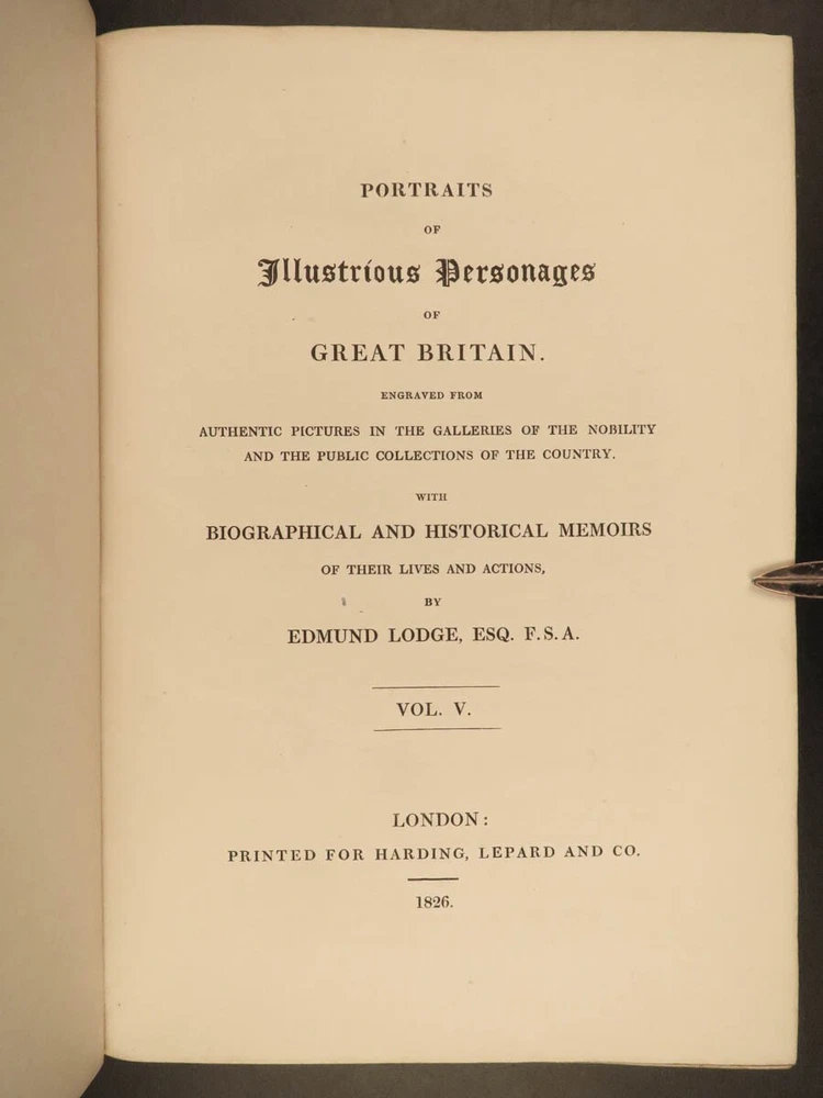 1823 Portraits of Illustrious Personages 206 PLATES Bacon Cromwell Raleigh Queen Edmund Lodge was a long-serving English officer of arms, a writer on heraldic subjects, and a compiler of short biographies. However, he was most remembered for his work ‘ Portraits of Illustrious Personages of Great Britain’ . This work describes some of the most renowned persons in Great Britain. Notable names include: · Thomas Cromwell · Sir Francis Drake · Francis Bacon · Sir Walter Raleigh · William Laud, Archbishop of Canterbury · Queen Catharine Parr · Queen Jane Seymour This stunning 1823 three-volume set features 206 steel engravings in exquisite condition . Item number: #22282 Price: $950 LODGE, Edmund Portraits of Illustrious Personages of Great Britain: Engraved from authentic pictures, with biographical & historical memoirs of their lives. London: Printed for Harding, Mavor and Lepard. [1823-1834] Details : · Collation: Complete with all pages; 11 volumes (of 12) o Volumes I-VIII, X-XII o 206 Steel-Engraved Plates · Language: English · Binding: Leather; secure · Size : ~10.25in X 7.25in (26cm x 18.5cm) Our Guarantee: Very Fast. Very Safe. Free Shipping Worldwide. Customer satisfaction is our priority! Notify us with 7 days of receiving, and we will offer a full refund without reservation! 22282