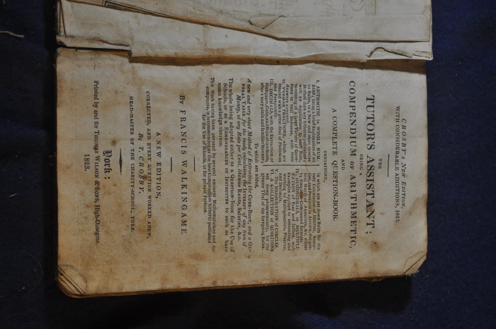 The Tutor's Assistant: Being a Compendium of Arithmetic and a Complete Question-Book Walkingame, Francis; Crosby, T Published by Thomas Wilson and Sons, York (1823) Very rare early edition. See photos for condition details. Spine cover missing.