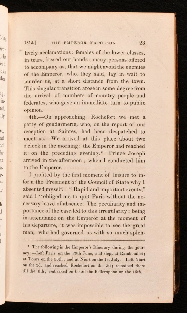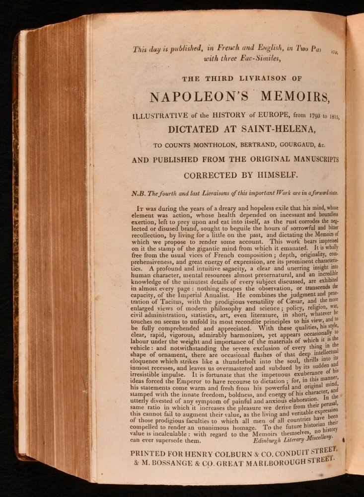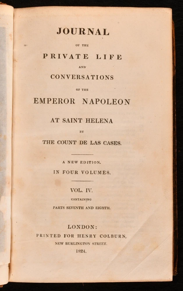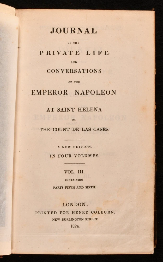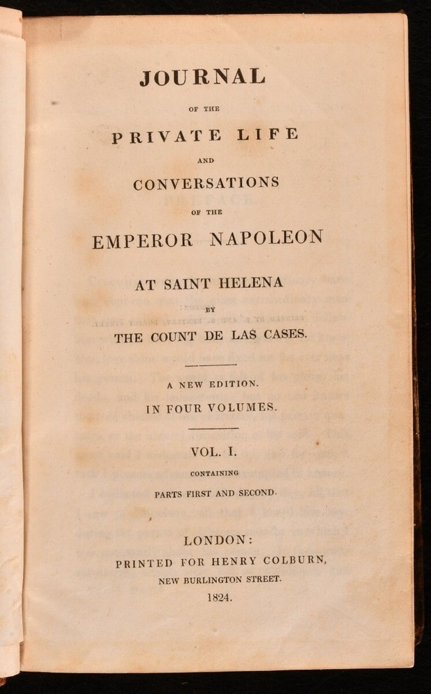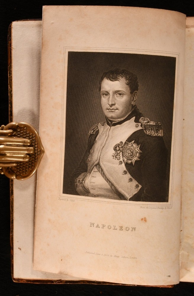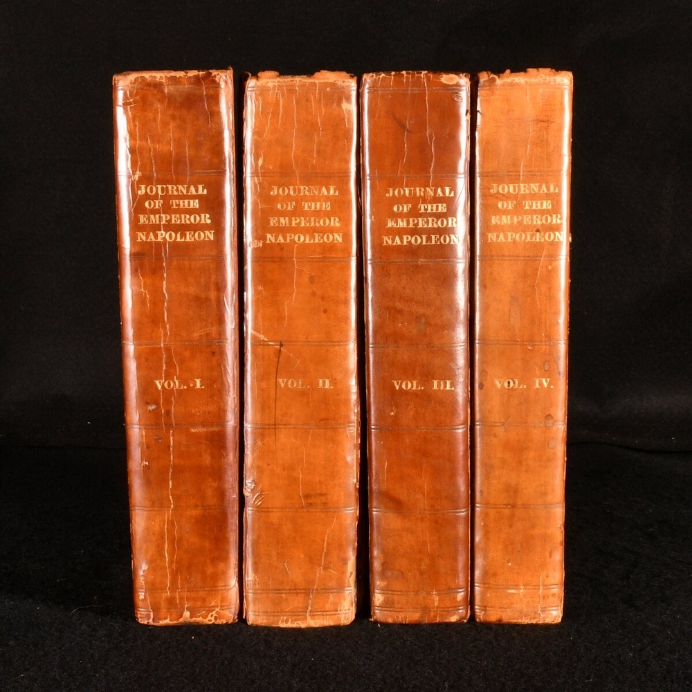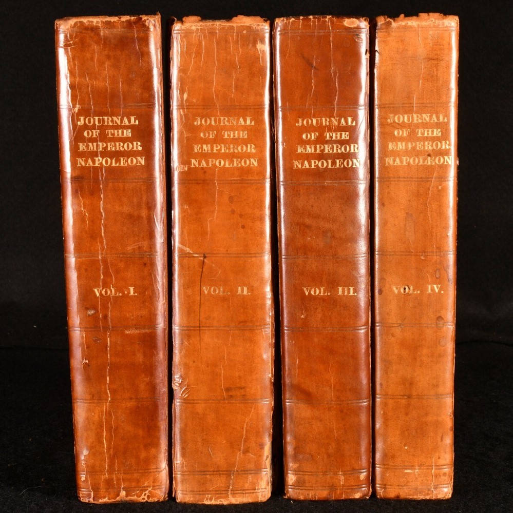 Click here to see our other books! Journal of the Private Life and Conversations of the Emperor Napoleon The Count de Las Cases 1824 Henry Colburn : London 8.5" by 5.5" [3] iv-x, 375, [1]; [5] iv-v, 376; [3] iv-384; [3], iv-iv, 334pp SUMMARY A leather bound complete four volume set which contains the English translation of Las Cases, 'Le Memorial de Sainte-Helene', the private notes and conversations made by Napoleon during his exile. Colour Plates,Early Edition,Folding Plates,Illustrated,Leather Binding Overall Condition: Very Good This book weighs 4 KG when packed UK Postage: £ 4.49 US Postage: £ 39.99 EU Postage : £ 26.99 European Postage: £ 36.99 Asia Postage: £ 65.99 Worldwide Postage: £ 99.99 DESCRIPTION 'New Edition', published in 1824. Bound in half-calf on marbled boards. Illustrated with a range of frontispieces, colour plates, and folding plates. This is the complete four volume set which contains the private thoughts and conversations of Napoleon Bonaparte, as recorded and collected by Emmanuel, Comte de Las Cases. Published in the French as 'Le Memorial de Sainte-Helene', this work was written when Las Cases accompanied Bonaparte to Saint Helena. He took numerous notes of his conversations and sought an opportunity to leave the island once he had accumulated 'sufficient literary material'. This particular edition was a facsimile for the original edition, published to mark the bicentenary of Napoleon's birth. Vol I (1824) contains the preface as well as 'Residence at Briars' with one folding plate and three plates, one of which is in colour. Vol II (1835) contains contents such as 'Description of the Emperor's Apartment' and 'Papers from Europe' with three illustrated plates. Vol III (1835) contains contents like 'Our Establishment on Fire', and 'Marie Antoinette', with five illustrated plates. Vol IV (1835) contains contents such as 'The Emperor indisposed and melancholy', 'Alarming Change in the Emperor', 'I take a Resolution', and 'My lively Anxieties', with four illustrated plates. Emmanuel-Augustin-Dieudonne-Joseph (1766-1842) was a French atlas-maker and author, who is perhaps best known for his book on Napoleon. He was expelled from France but returned after Napoleon's death to publish the 'Memorial' and make a fortune from it. With one page of publisher's adverts to the rear of Vol I. Collated, complete. CONDITION Bound in half-calf on marbled boards. Externally, smart. Some rubbing and edge wear to the extremities and to the spine, with some cracking to the spine of a few volumes. Volume IV's spine is lightly faded. Marks to board as well as spine. Vol I has been re-backed with the original leather spine laid back and new endpapers. Front hinge starting to Vol IV. Boards have detached completely from spine of Vol II, and spine may detach from binding with further handling. Internally, firmly bound. Pages are bright and clean, with age-toning to the pages and the odd spot which increases to the first and last few pages. Offsetting to the pages facing some of the plates. Overall Condition: Very Good GLOSSARY OF TERMS Overall Condition (Dustwrapper condition rating is shown after that for the book itself, where a dustwrapper is present) Fine - Very well preserved copy showing very little wear Very Good Indeed - Only one or two minor faults, really a very attractive copy Very Good - Quite a wide term meaning no major faults but probably several smaller ones often expected given the age of the book, but still a respectable copy Good - Meaning not very good. Some more serious faults as will be described in the condition report under 'condition' Good Only - Meaning one or more faults that could really do with repair Fair - As with good only above but with other faults leaving a compromised copy even after repair Poor - Really bad and possibly seriously incomplete. We only sell books in this condition where their rarity or value makes them attractive none the less. Major defects will be described. GUARANTEE We offer a full money back guarantee on our descriptions. Please ask for details and conditions. We prefer PAYPAL. If you pay via PAYPAL we will post the item off the same or the next working day with the postage you have selected. Please note we cannot accept USD cheques