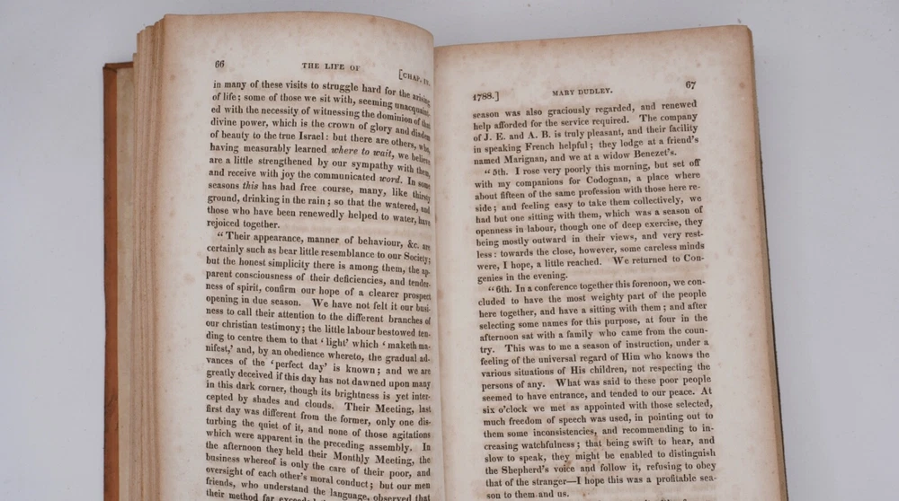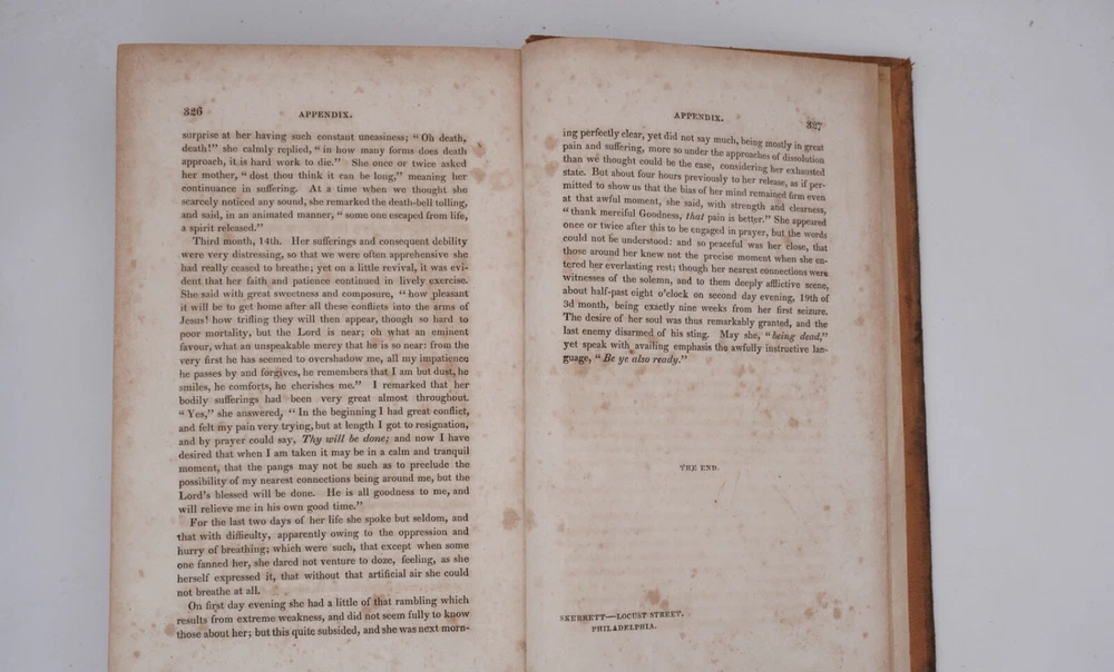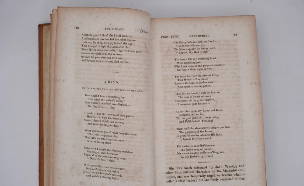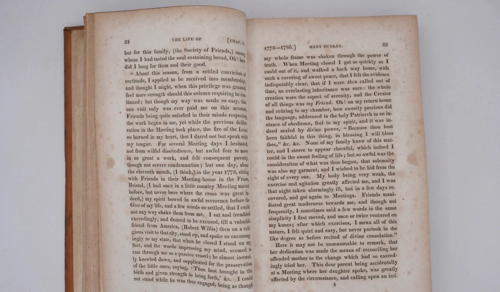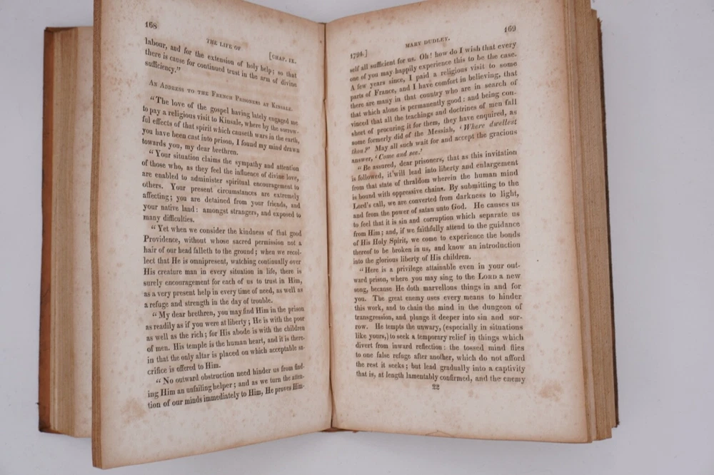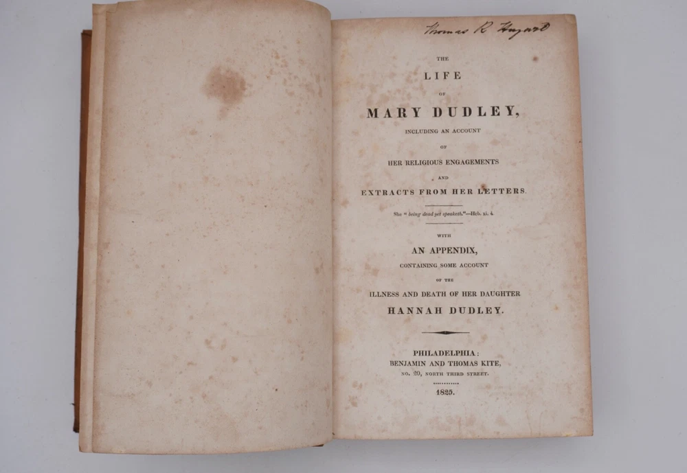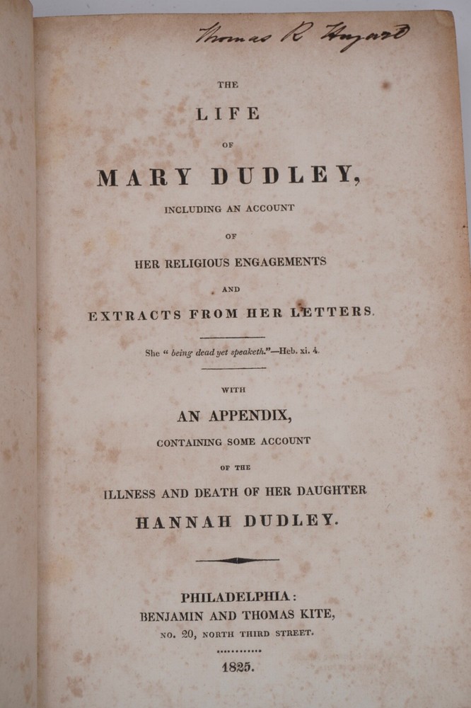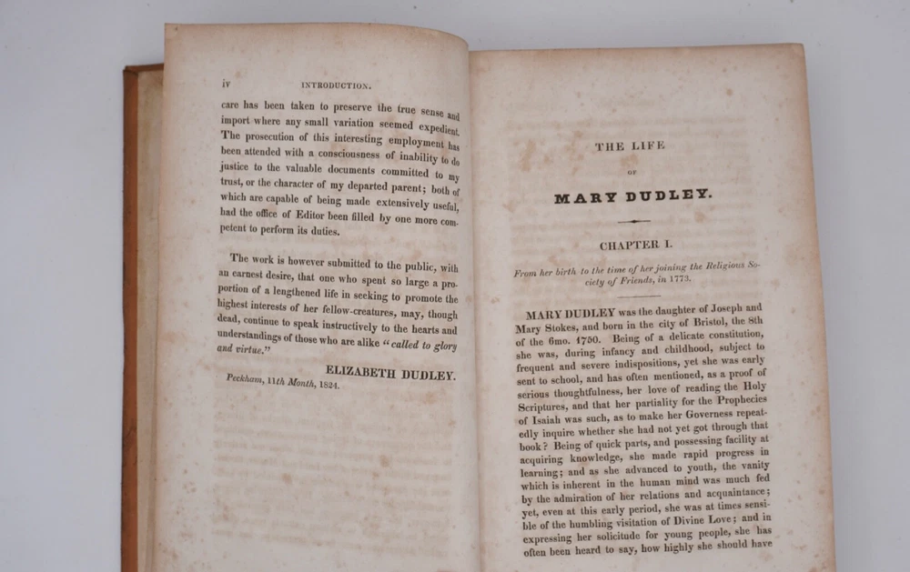 Condition is very good. Nice leather binding, looks like tree calf, strong and square with slight bulge. Text has browning within text boxes and foxing as shown but otherwise clean and not marked except name on title, as shown. Preface 1824 by daughter Elizabeth Dudley, appears to be scarce first edition and was compiled by her. Size 5.5x8.5".