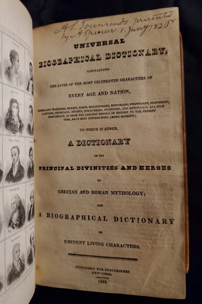 A Universal Biographical Dictionary, Containing the Lives of the Most Celebrated Characters of Every Age and Nation . to Which is Added, a Dictionary of the Principal Divinities and Heroes of Grecian and Roman Mythology; and a Biographical Dictionary Of By [Baldwin, Charles N. ] Published by New York, 1825, 1825 Rare 1st edition, in the publishers original full calf leather binding. The interior pages are clean and bright with some minor toning and foxing as shown. There is some rubbing/bumping to corners and edges, and minor shelf wear to the boards, spine and extremities as shown in our photos. The binding and hinges are fragile, but still in-tact and overall in good condition. Please view all of our listed photos, and feel free to send us any questions you may have! . . . . Sunrise Rare Books - We ship items world-wide, daily. - Each item is carefully stored and protected in our temperature controlled library. We securely pack each item tightly in cardboard boxes to ensure safe delivery. - Returns accepted within 30 days.