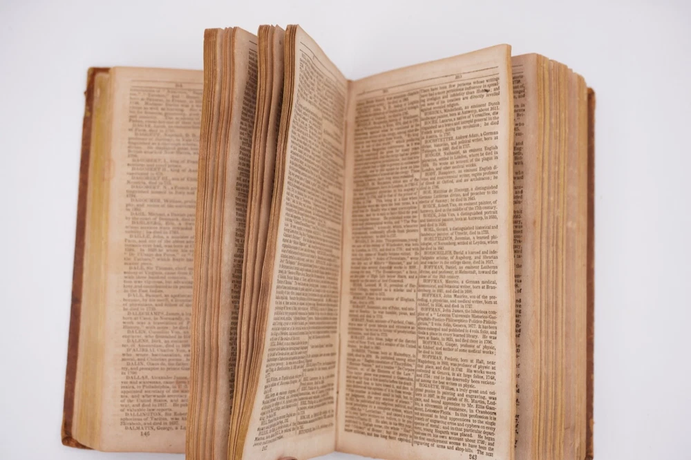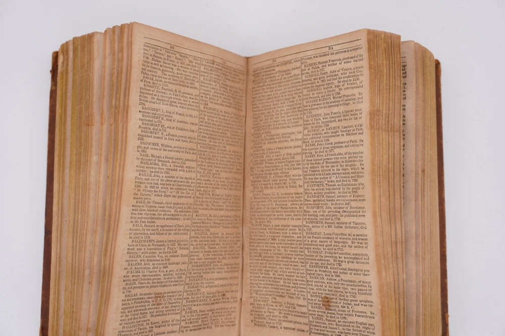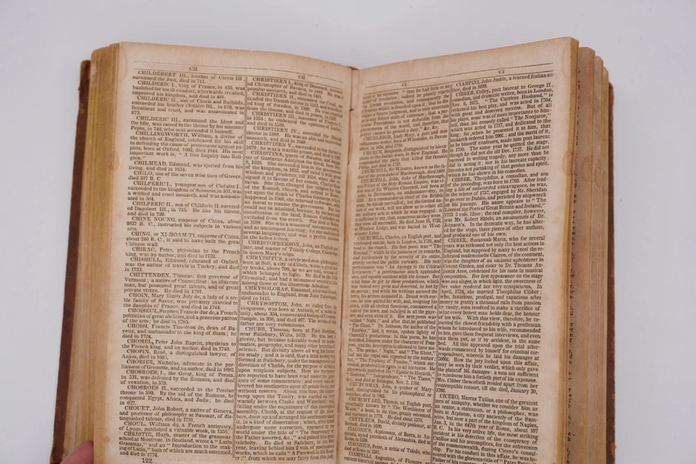 Condition is good plus. Relatively good leather binding, boards ok, still pretty strong. Text is mildly+ browning with some mild foxing and a little staining, only a few pages a with some heavier spots. Other mild wear as shown, overall pretty good condition for 1825.