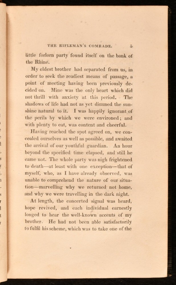 Click here to see our other books! The Young Rifleman's Comrade: A Narrative of his Military Adventures, Captivity, and Shipwreck. [Johan Christian Mampel] 1826 Henry Colburn : London 7.5" by 4.5" xxiv, 310pp. [2] SUMMARY The scarce first edition of this autobiographical work by Johan Christian Mampel, bound in full calf. First Edition,Leather Binding,Scarce Overall Condition: Very Good This book weighs 0.5 KG when packed UK Postage: £ 3.99 US Postage: £ 15.99 EU Postage : £ 13.99 European Postage: £ 14.99 Asia Postage: £ 18.99 Worldwide Postage: £ 19.99 DESCRIPTION The scarce first edition. Bound in full diced calf. This work, though written anonymously, was written by Johan Christian Mampel. This autobiographical work provides an account of Mampels' military adventures. The work also features a preface by the editor and from the translator. CONDITION Bound in full diced calf. Externally very smart with joints starting, minor marks to the boards, very minimal loss to the leather to the head of the spine, fading to the spine, bumping to the extremities of the boards and light rubbing to the joints. Minor offsetting and rubbing at the hinge of the endpapers. Internally firmly bound with lightly age toned pages and the odd spot throughout. Prize ink inscription to the front blanks dated 1826. Overall Condition: Very Good GLOSSARY OF TERMS Overall Condition (Dustwrapper condition rating is shown after that for the book itself, where a dustwrapper is present) Fine - Very well preserved copy showing very little wear Very Good Indeed - Only one or two minor faults, really a very attractive copy Very Good - Quite a wide term meaning no major faults but probably several smaller ones often expected given the age of the book, but still a respectable copy Good - Meaning not very good. Some more serious faults as will be described in the condition report under 'condition' Good Only - Meaning one or more faults that could really do with repair Fair - As with good only above but with other faults leaving a compromised copy even after repair Poor - Really bad and possibly seriously incomplete. We only sell books in this condition where their rarity or value makes them attractive none the less. Major defects will be described. GUARANTEE We offer a full money back guarantee on our descriptions. Please ask for details and conditions. We prefer PAYPAL. If you pay via PAYPAL we will post the item off the same or the next working day with the postage you have selected. Please note we cannot accept USD cheques