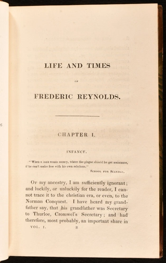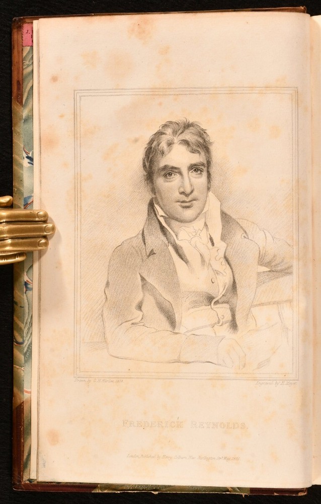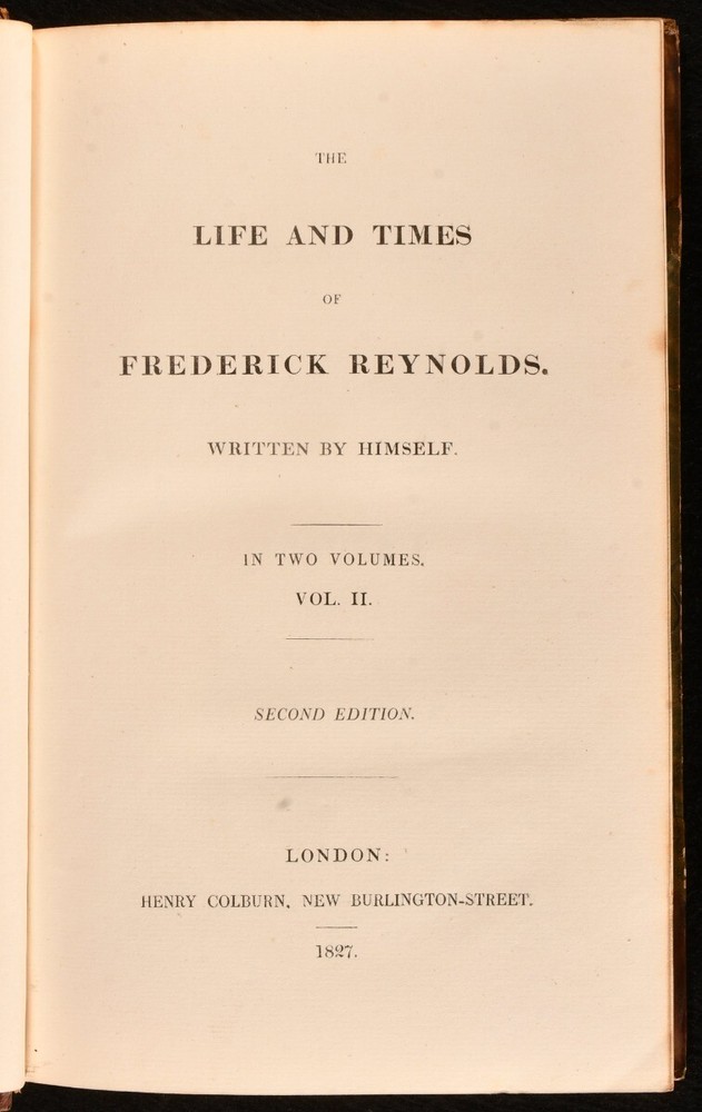 Click here to see our other books! The Life and Times of Frederick Reynolds, Written by Himself Frederick Reynolds 1827 Henry Colburn : London 9" by 6" xxiv [1], 2-373 [1]; 422pp SUMMARY The second edition of the two volume autobiography of English dramatist Frederick Reynolds. Early Edition,Leather Binding Overall Condition: Very Good This book weighs 1.5 KG when packed UK Postage: £ 3.99 US Postage: £ 23.99 EU Postage : £ 18.99 European Postage: £ 19.99 Asia Postage: £ 31.99 Worldwide Postage: £ 32.99 DESCRIPTION The second edition of this work, published the year after the first. Illustrated with a portrait frontispiece to volume I. An autobiography of the prolific playwright Frederic Reynolds, who during his literary career composed nearly one hundred tragedies and comedies. His first piece, 'Werter', was founded on Goethe's novel, and was first produced at the Bath Theatre on 25 November, 1785. In this work, Reynolds noted that, despite having written many successful works, he was not wealthy. In the conclusion, he writes that "[H]aving been omitted from many wills on account of my supposed wealth, I hope this true, and faithful exposition of the real state of my finance, may catch the eye of some rich testator, and induce him to make me reparation, by bequeathing me a thumping legacy." With the armorial bookplate of Miss Rigden, St. Lawrence, to front pastedowns. CONDITION In half calf bindings, with marbled paper covered boards. Gilt detailing to back strips, with some discolouration. Otherwise, externally lovely. Hinges strained. Bookplates to front pastedowns. Internally, firmly bound. Offsetting to volume I title page, with light spotting to first few leaves of volume I. Pages otherwise clean and bright, Overall Condition: Very Good GLOSSARY OF TERMS Overall Condition (Dustwrapper condition rating is shown after that for the book itself, where a dustwrapper is present) Fine - Very well preserved copy showing very little wear Very Good Indeed - Only one or two minor faults, really a very attractive copy Very Good - Quite a wide term meaning no major faults but probably several smaller ones often expected given the age of the book, but still a respectable copy Good - Meaning not very good. Some more serious faults as will be described in the condition report under 'condition' Good Only - Meaning one or more faults that could really do with repair Fair - As with good only above but with other faults leaving a compromised copy even after repair Poor - Really bad and possibly seriously incomplete. We only sell books in this condition where their rarity or value makes them attractive none the less. Major defects will be described. GUARANTEE We offer a full money back guarantee on our descriptions. Please ask for details and conditions. We prefer PAYPAL. If you pay via PAYPAL we will post the item off the same or the next working day with the postage you have selected. Please note we cannot accept USD cheques