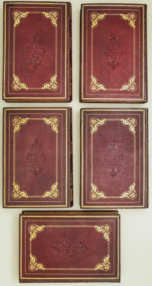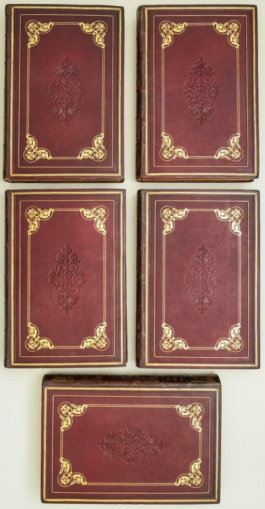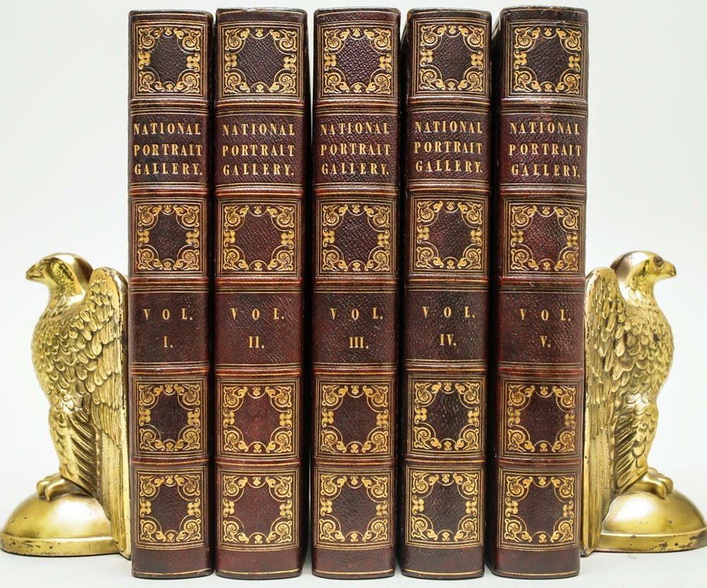 THIS COMPLETE FIVE VOLUME SET IS IN NEAR FINE CONDITION BEAUTIFULLY BOUND IN PUBLISHERS FULL CRUSHED MOROCCO WITH BLIND STAMPING AND BRIGHT GILT DETAILS TO BOARDS, SIX COMPARTMENTS AND FIVE RAISED BANDS TO SPINES WITH BRIGHT GILT DETAILS AND TITLE. BINDING AND HINGES ARE VERY GOOD, BRIGHT GILT END PAGES. NO LOOSE OR MISSING PAGES, PAGES ARE BRIGHT AND CLEAN, WITHOUT MARKS, SOME LIGHT SPORADIC FOXING. PROFUSELY ILLUSTRATED, BOOKS MEASURE 11"x7". FIRST EDITION, 191 YEARS OLD. A STUNNING SET IN REMARKABLE CONDITION. 1830 National Portrait Gallery Eminent Persons 1st Edition Fine Leather 11" tall 1830 National Portrait Gallery Eminent Persons 1st Edition Fine Leather 11" tall Description RARE!!! 1830 FIRST EDITION FINE LEATHER BINDINGS LARGE VOLUMES 11" TALL 191 YEARS OLD PROFUSELY ILLUSTRATED EXCELLENT CONDITION THIS COMPLETE FIVE VOLUME SET IS IN NEAR FINE CONDITION BEAUTIFULLY BOUND IN PUBLISHERS FULL CRUSHED MOROCCO WITH BLIND STAMPING AND BRIGHT GILT DETAILS TO BOARDS, SIX COMPARTMENTS AND FIVE RAISED BANDS TO SPINES WITH BRIGHT GILT DETAILS AND TITLE. BINDING AND HINGES ARE VERY GOOD, BRIGHT GILT END PAGES. NO LOOSE OR MISSING PAGES, PAGES ARE BRIGHT AND CLEAN, WITHOUT MARKS, SOME LIGHT SPORADIC FOXING. PROFUSELY ILLUSTRATED, BOOKS MEASURE 11"x7". FIRST EDITION, 191 YEARS OLD. A STUNNING SET IN REMARKABLE CONDITION. !!!CLICK HERE!!! Visit My eBay Store TO SEE ALL THE BOOKS WE HAVE FOR SALE!!! IF YOU LIKE WHAT YOU SEE THAN SAVE US TO YOUR FAVORITES BY CLICKING HERE. Add me to your Favorite Sellers RARE ANTIQUARIAN BOOKS CAN BE FRAGILE AND NEED TO BE HANDLED WITH CARE. About us: Reagan's Rare Books is a purveyor of Antiquarian books primarily from the 18th and 19th centuries. We love antique books! We search all over the country for the finest rare books, looking for those with beautiful bindings and in great condition so that we can offer you, the customer, a truly rare one of a kind collectible. Paypal Preferred. Please make payment arrangements within 48 hours of winning your auction. We reserve the right to re-list items not paid within 5 days. Shipping *To Insure That Your Package arrives without any Problems , Please Double Check to Make Sure That The Address You Have Selected in eBay Is Correct. All books are carefully bubble wrapped and packed in a box with adequate packing peanuts to prevent any damage during shipment. All books are shipped with delivery confirmation and tracking. Books over $75.00 are automatically insured. RETURNS 100% Satisfaction Guaranteed. Returns accepted for any reason within 30 days of receipt. PLEASE CHECK MY OTHER LISTINGS. POSTING NEW RARE BOOKS DAILY/WEEKLY. Pictures sell! Auctiva offers Free Image Hosting and Editing. 300+ Listing Templates! Auctiva gets you noticed! The complete eBay Selling Solution. Track Page Views With Auctiva's FREE Counter