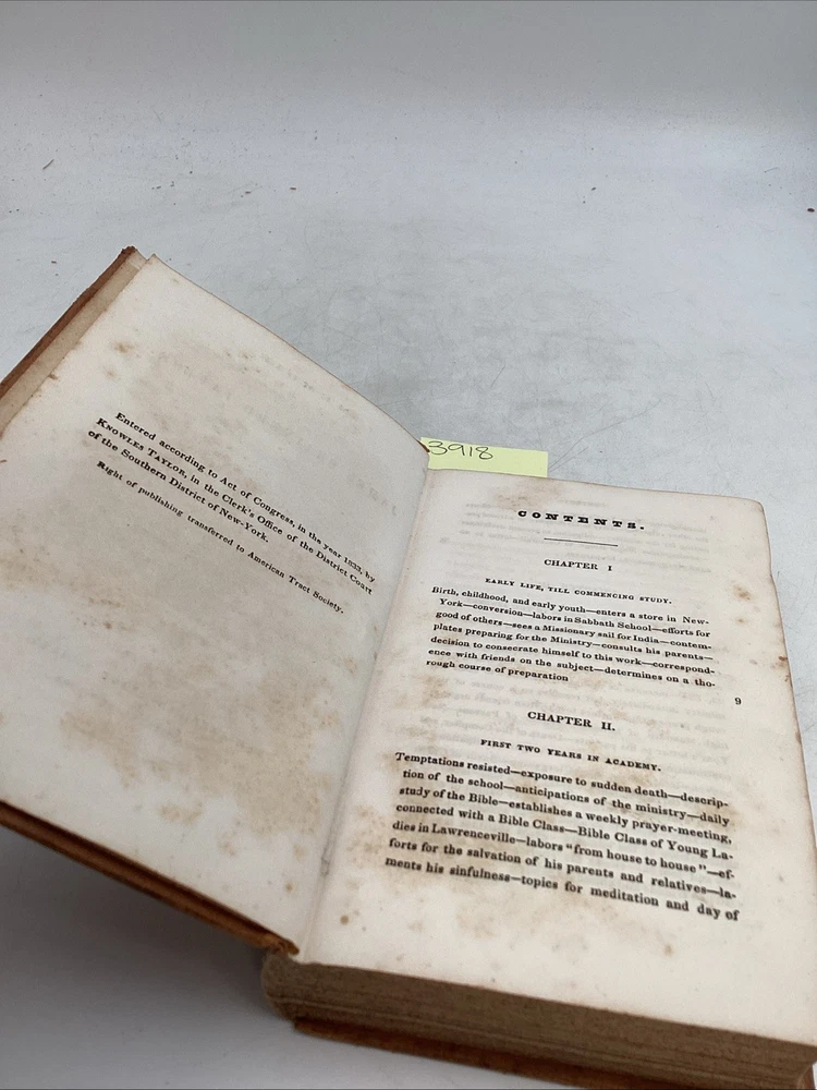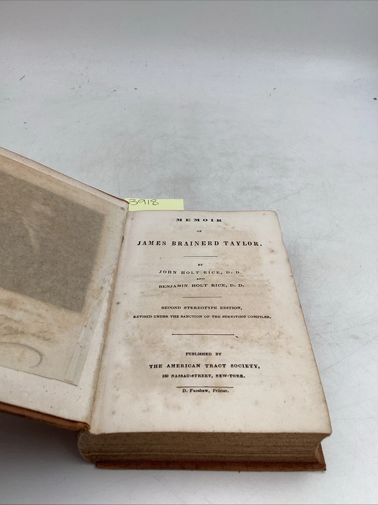 1833 Memoir Of James Brainerd Taylor John Benjamin Holt Rice Biography Leather. Shipped with USPS Media Mail.