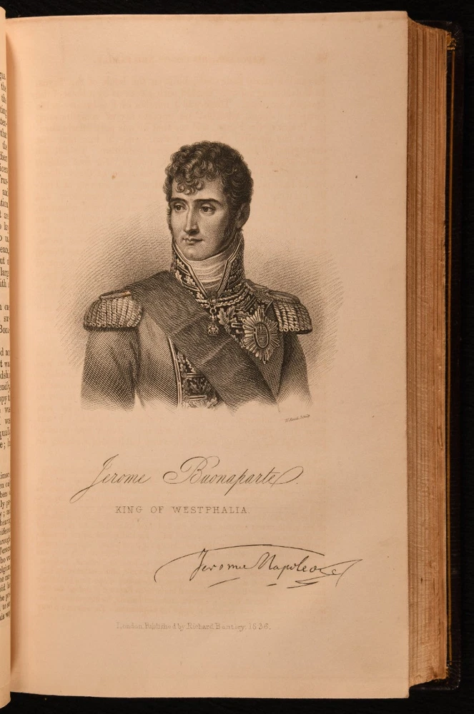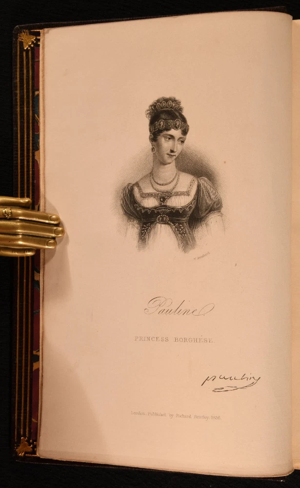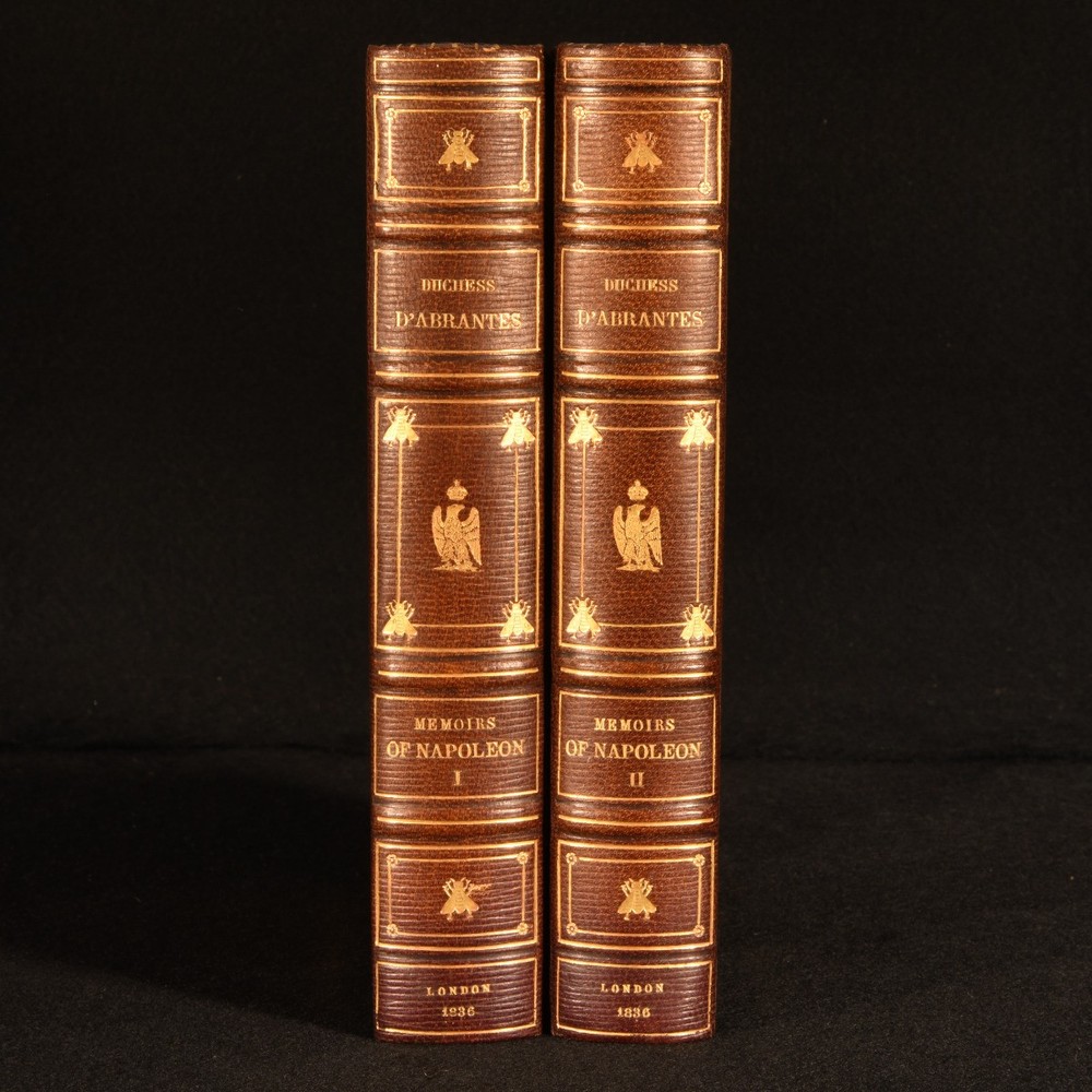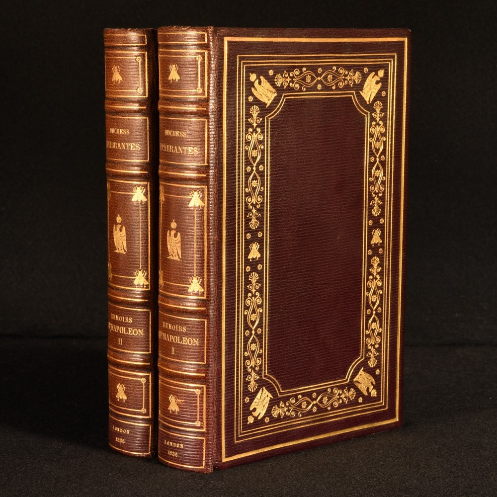Click here to see our other books! Memoirs of Napoleon, His Court and Family Duchess d'Abrantes; Madame Junot 1836 Richard Bentley : London 9" by 6" [4], 548; [4], 520pp SUMMARY The first English edition of this formidable and personal biography on the life and family of Napoleon Bonaparte, complete with plates throughout. Fine Binding,First Edition,Illustrated,Leather Binding,Signed Binding Overall Condition: Fine This book weighs 4 KG when packed UK Postage: £ 4.49 US Postage: £ 39.99 EU Postage : £ 26.99 European Postage: £ 36.99 Asia Postage: £ 65.99 Worldwide Postage: £ 99.99 DESCRIPTION The first edition of this work in English. Finely bound in a straight grain morocco binding with gilt decoration to the boards, bound by A. Taffin. Complete in two volumes. 'Memoirs of Napoleon' is a personal memoir about the formidable Napoleon Bonaparte, written by Laure Junot, who had a life long acquaintance with him. He had nicknamed her 'Little Pest', for her wit and extravagance after moving to Paris. Despite their earlier generous relationship, she portrayed a sarcastic view of him in her 'Memoirs'. Junot didn't side with Bonaparte during his Hundred Days, and had previously taken part in intrigues to bring the Bourbons back. Junot was a child during the French Revolution, and so grew up and lived in a tumultuous time in French history. She was extravagant in her spending, and spent a lot of her time around artistic society. She also had an affair with the fellow author Honore de Balzac, who supervised the writing of these memoirs. Volume I illustrated with a frontispiece, and six plates. Volume II illustrated with a frontispiece, and eight plates. Collated, complete. CONDITION In a straight grain morocco binding with gilt decoration to the boards, bound by A. Taffin. Externally, very smart. Spines are faded. One small mark to the rear board of Volume II. Bookseller's label to the front paste down of Volume I. Newspaper clipping to the recto of the front endpaper of Volume I, 'Tattle-tale Duchess', from 'The Daily Telegraph' on 28.6.49. Internally, firmly bound. Pages are lightly age-toned and clean, with the very occasional scattered spot. Overall Condition: Fine GLOSSARY OF TERMS Overall Condition (Dustwrapper condition rating is shown after that for the book itself, where a dustwrapper is present) Fine - Very well preserved copy showing very little wear Very Good Indeed - Only one or two minor faults, really a very attractive copy Very Good - Quite a wide term meaning no major faults but probably several smaller ones often expected given the age of the book, but still a respectable copy Good - Meaning not very good. Some more serious faults as will be described in the condition report under 'condition' Good Only - Meaning one or more faults that could really do with repair Fair - As with good only above but with other faults leaving a compromised copy even after repair Poor - Really bad and possibly seriously incomplete. We only sell books in this condition where their rarity or value makes them attractive none the less. Major defects will be described. GUARANTEE We offer a full money back guarantee on our descriptions. Please ask for details and conditions. We prefer PAYPAL. If you pay via PAYPAL we will post the item off the same or the next working day with the postage you have selected. Please note we cannot accept USD cheques