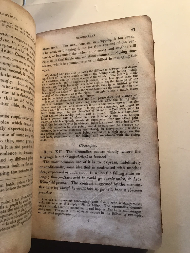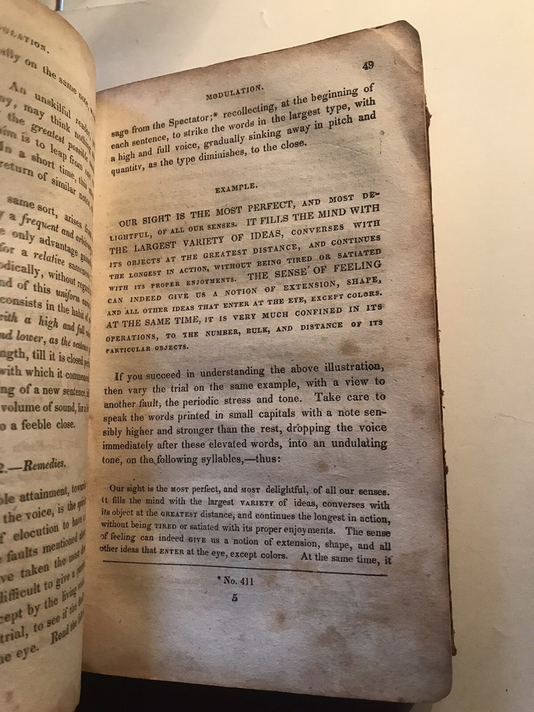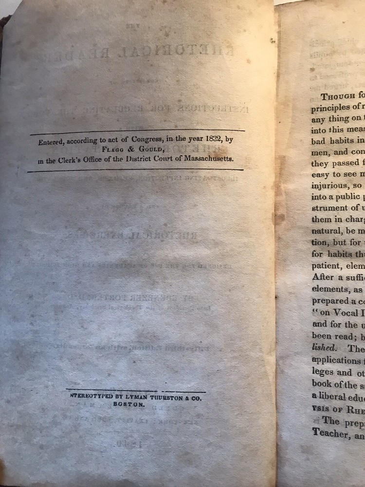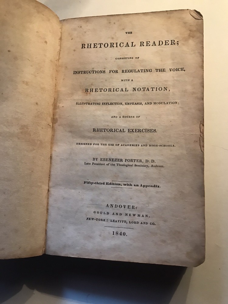 1840 The Rhetorical Reader instructions for regulating the voice, Ebenez. Porter.